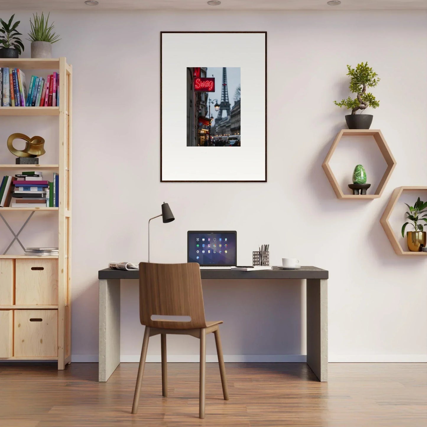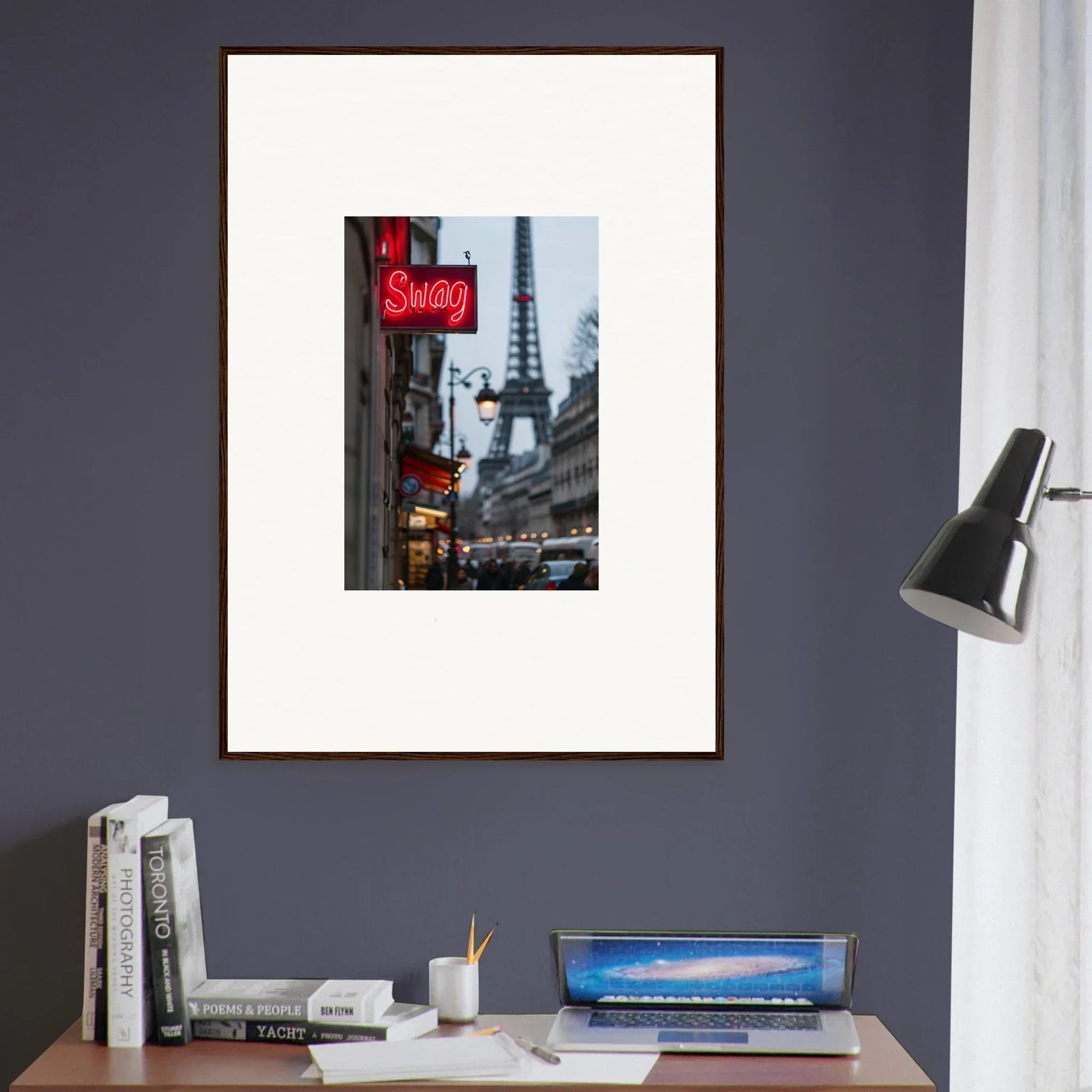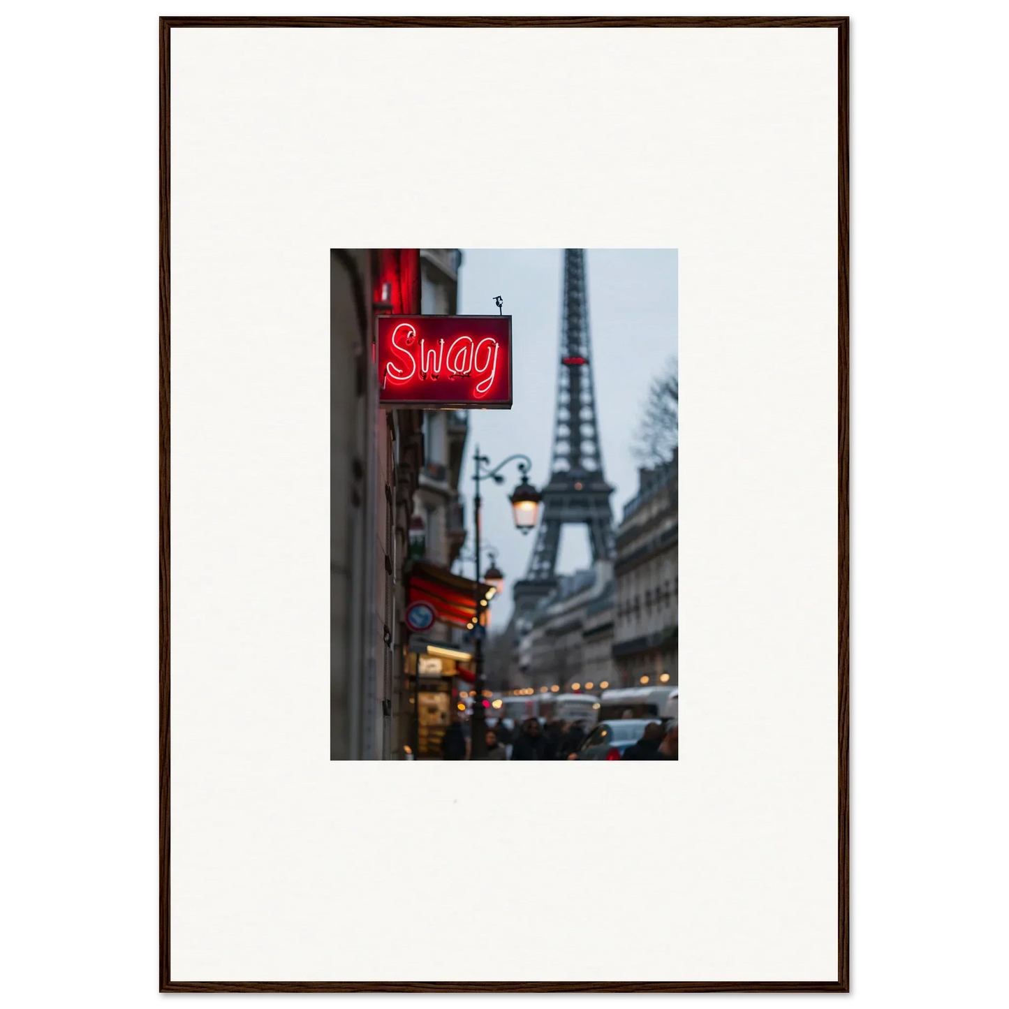 Immerse yourself in the urban allure of our 'La Tour Sentiments' framed wall art, where the iconic Eiffel Tower meets modern street aesthetics. Crafted to invigorate your living room or commercial space, this piece exudes a mood of adventure and exploration, happiness, and celebration, making it an excellent addition to vibrant environments.