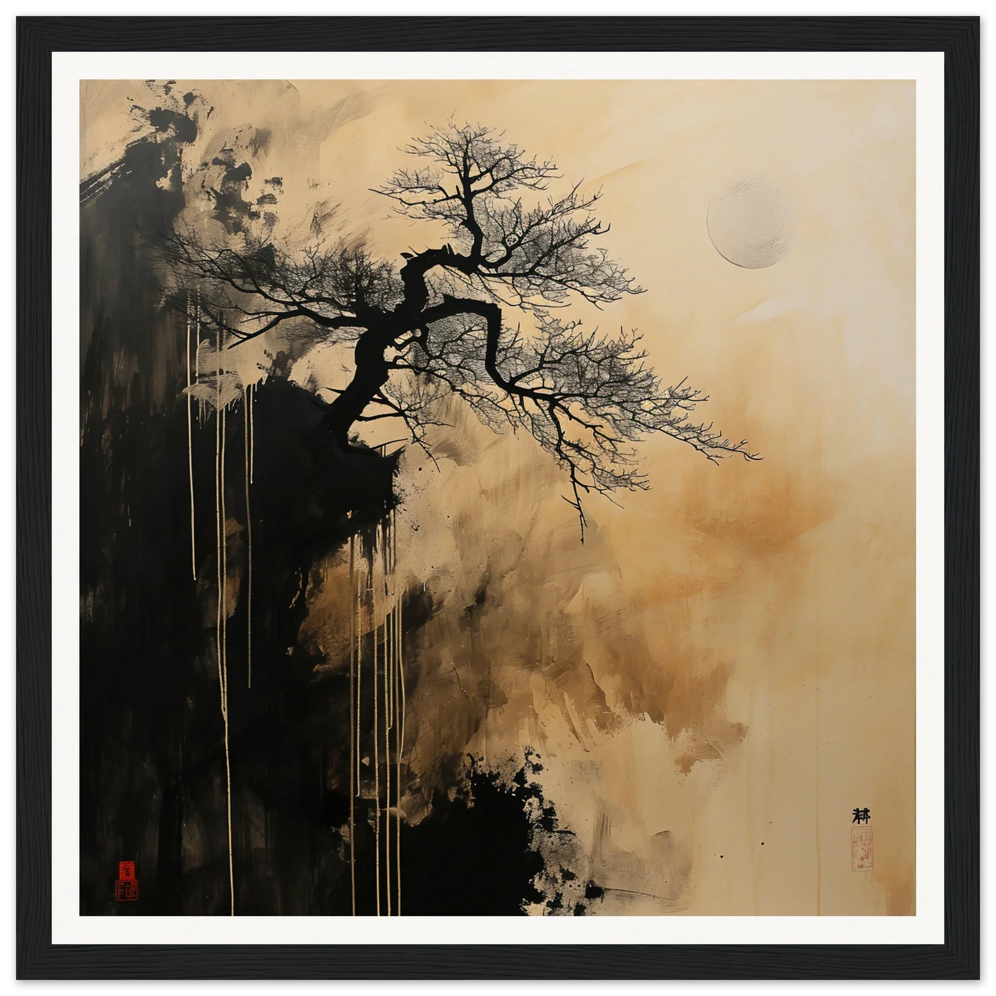 Welcome the tranquility and introspection of Leafless Echo Rabble into your home. This captivating AI-generated artwork merges traditional East Asian ink painting with modern minimalist sensibilities, featuring a solitary tree as a stark silhouette against an ethereal background. Enrich your space with a piece that reflects the beauty of enduring against life's challenges.