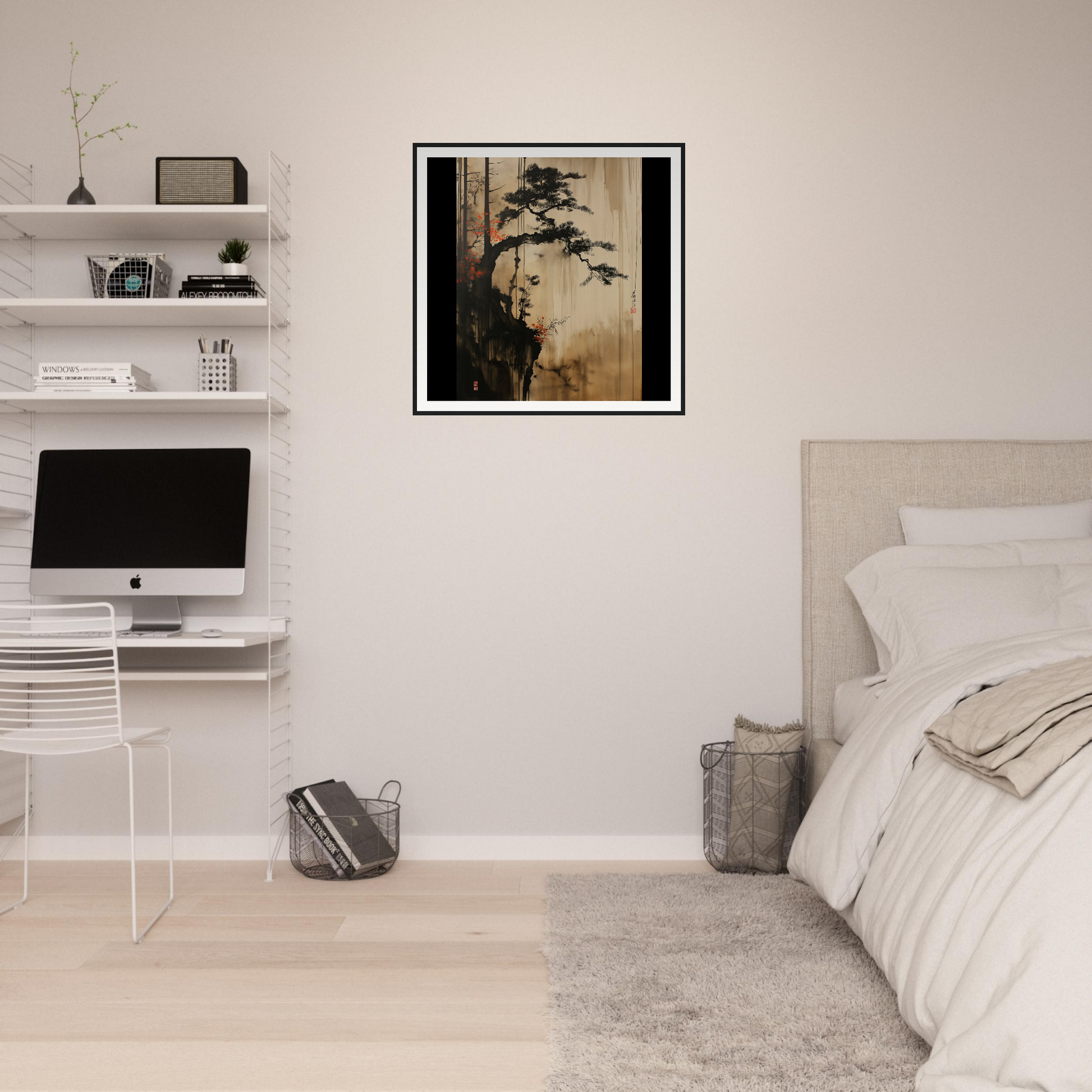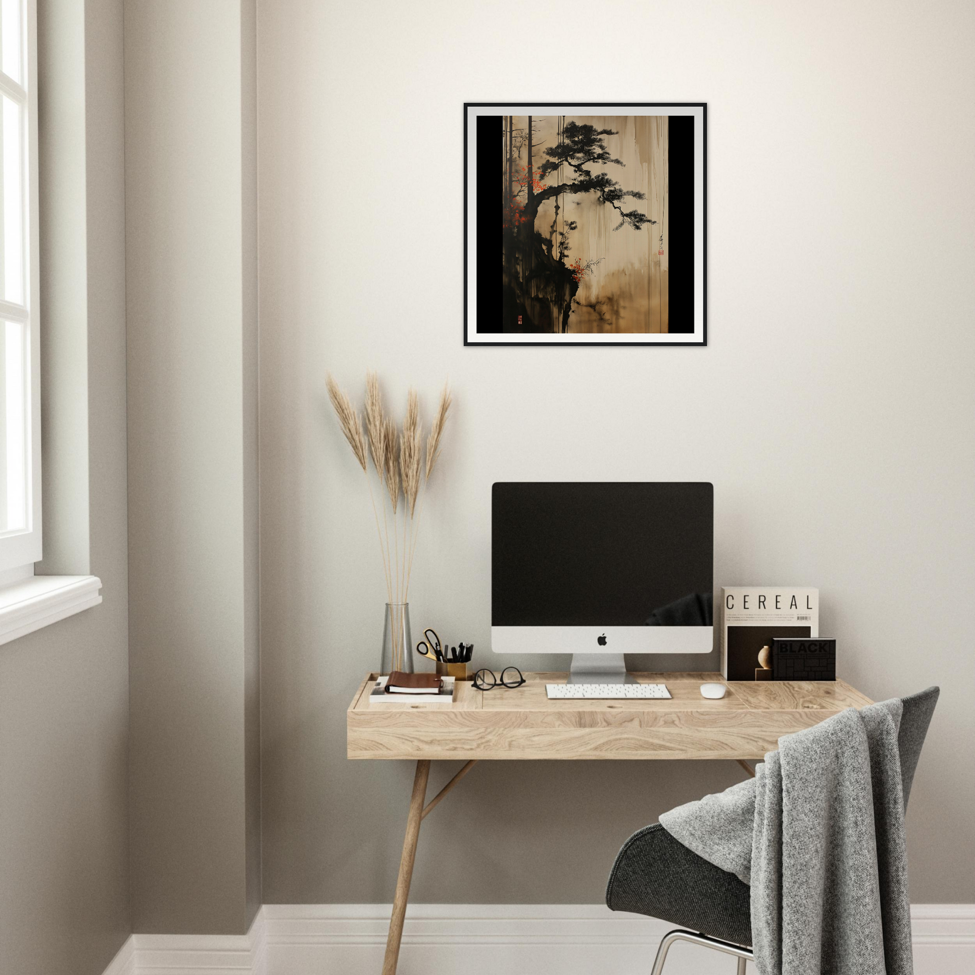 From the balanced beauty of Luminous Pine Solitude, let your living room, bedroom retreat, or office become havens of zen. The muted tones harmonize with diverse color schemes and contemporary, minimalist, or traditional settings.