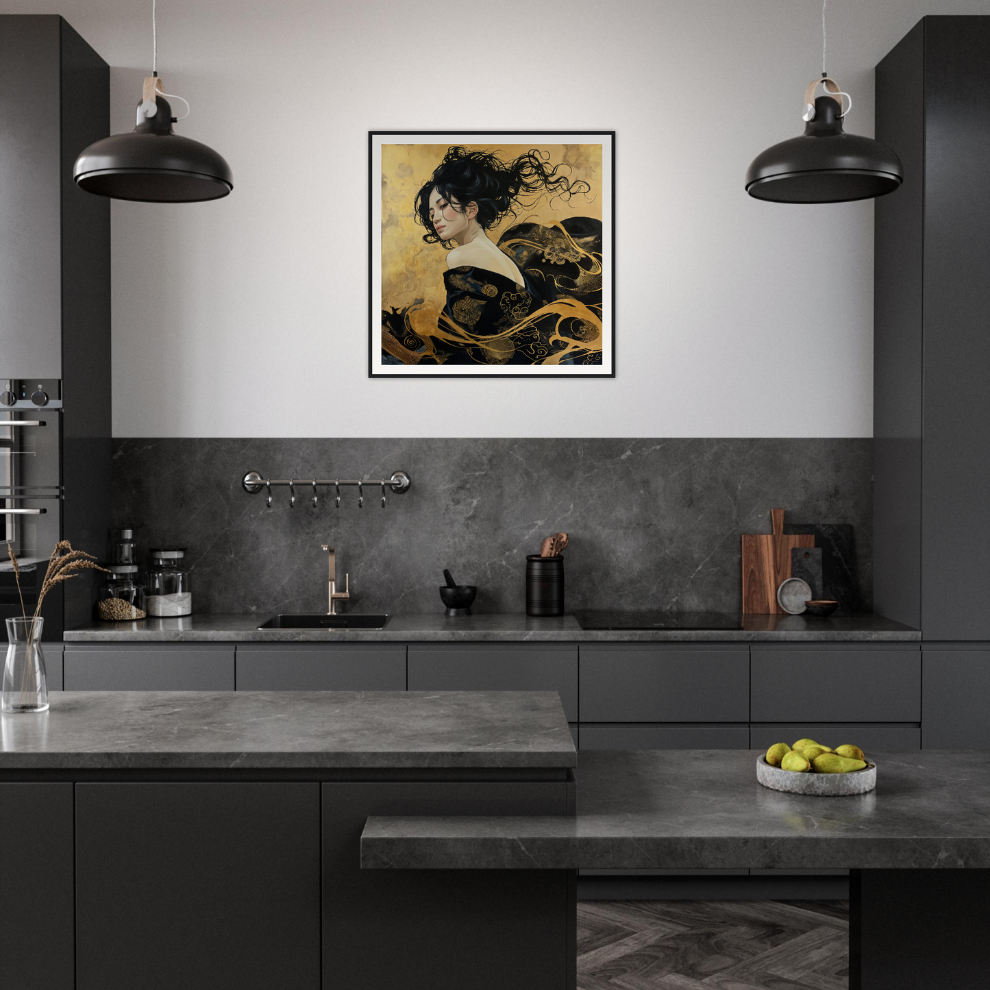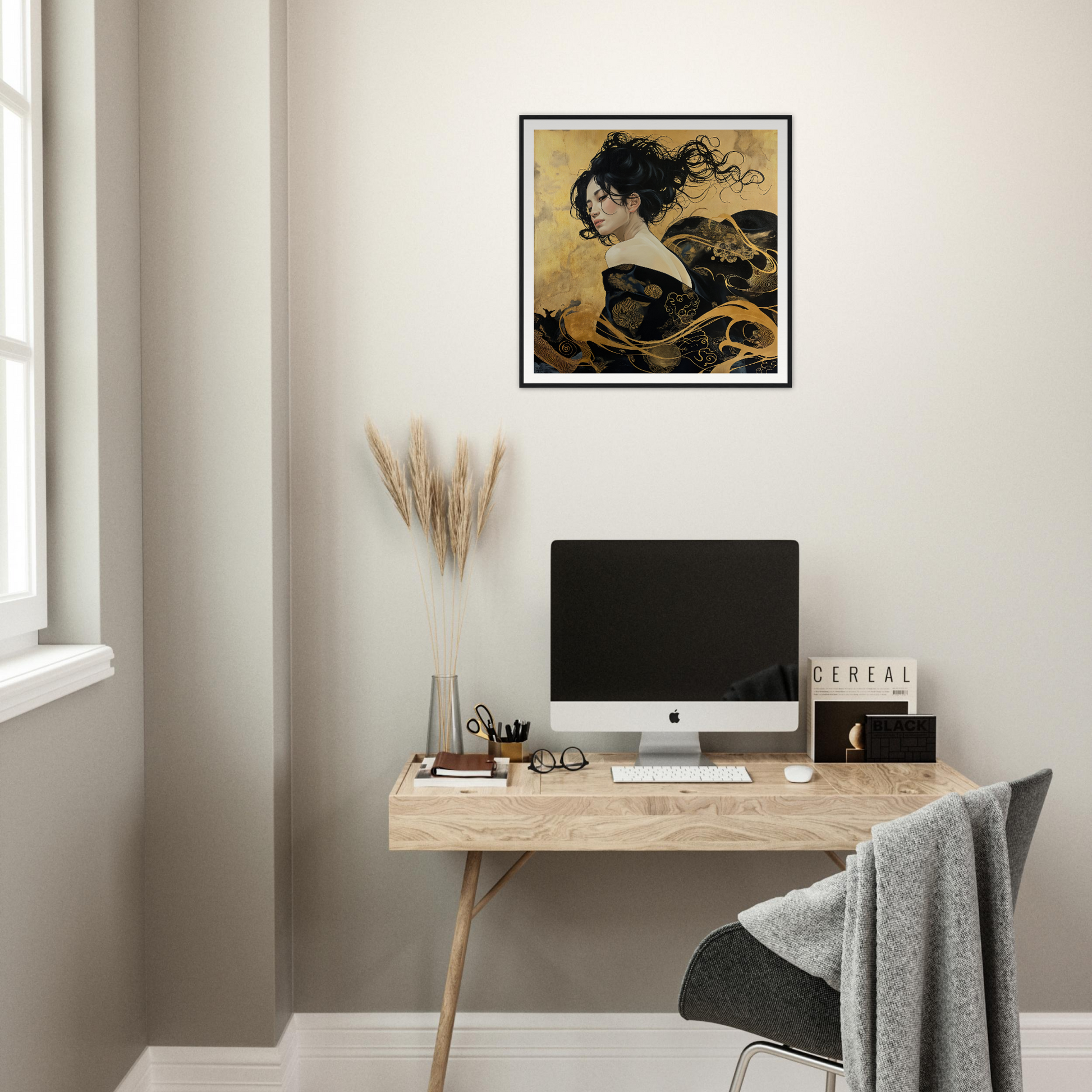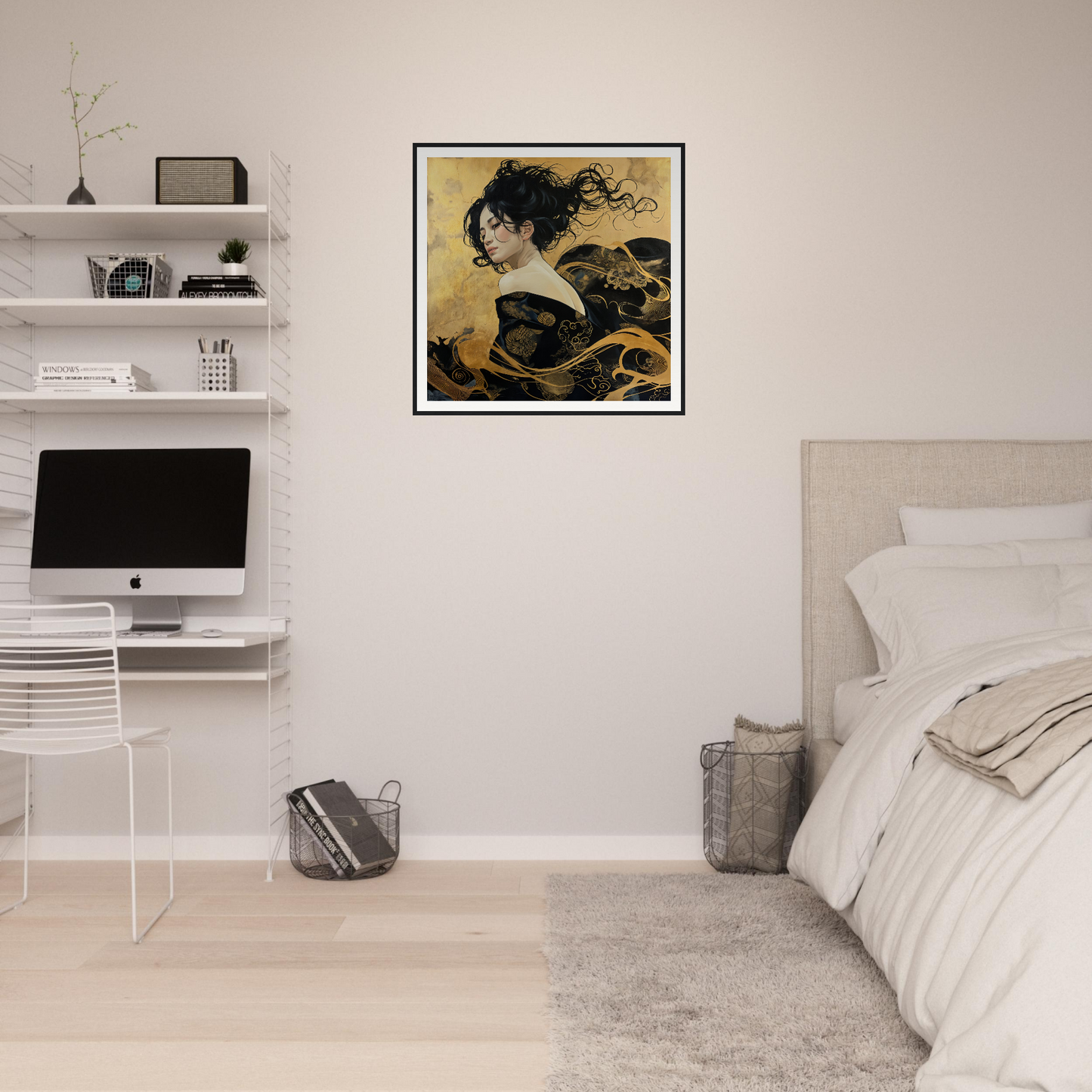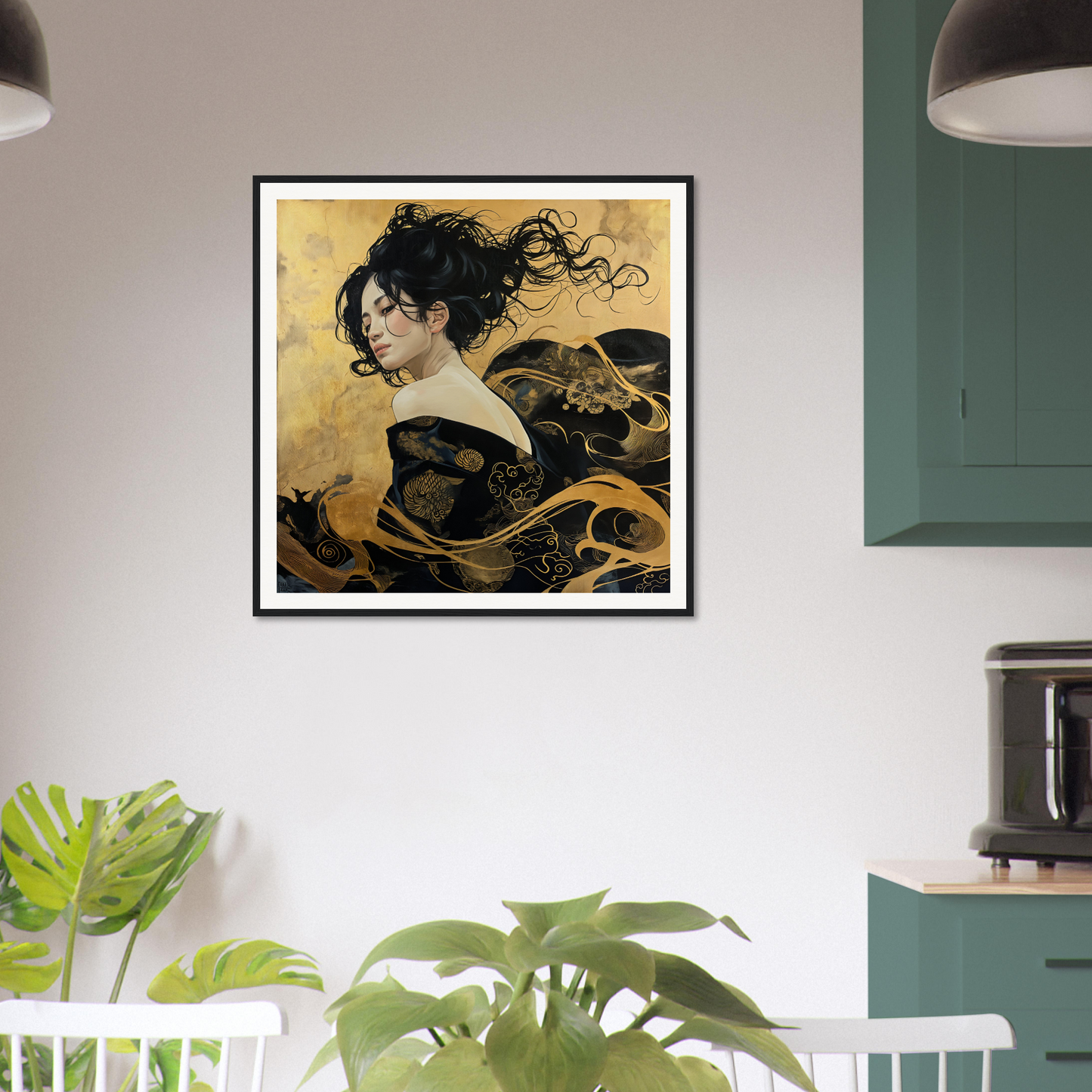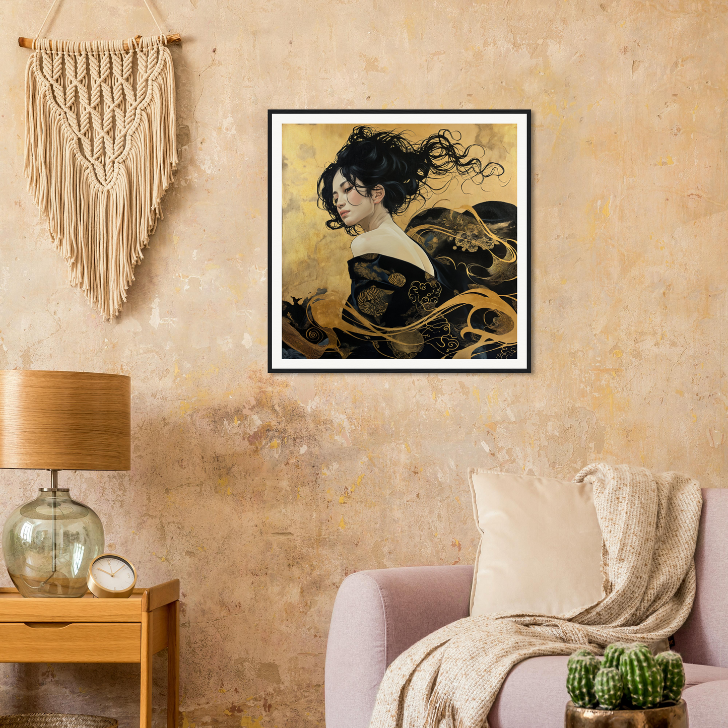 Luminous Silk Whisper is ideal for infusing any room—be it your living room, bedroom, or office—with an aura of sophistication and cultural charm. The detailed black and gold hues pair seamlessly with both contemporary and classic decor styles, highlighting the warm aura and inviting appeal of your spaces.