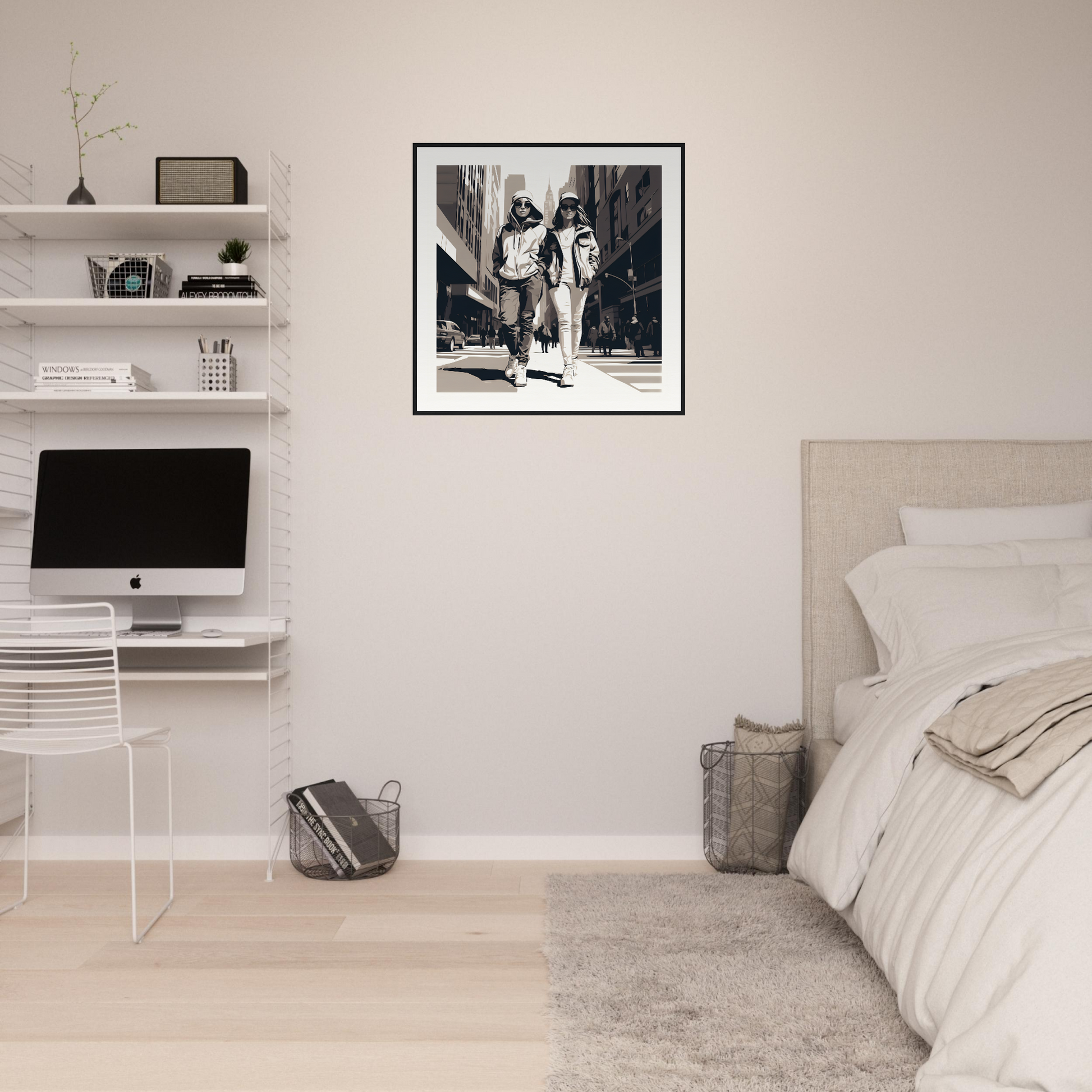 Dive into the heart of urban life with "Metropolis Footprints Drifting." This Premium Framed Wall Art encapsulates a moment where modernity and artistry converge. Featuring the latest AI-generated imagery, it captures youthful vigor and the enchanting chaos of cityscapes, perfect for adding dynamic energy to your living space.