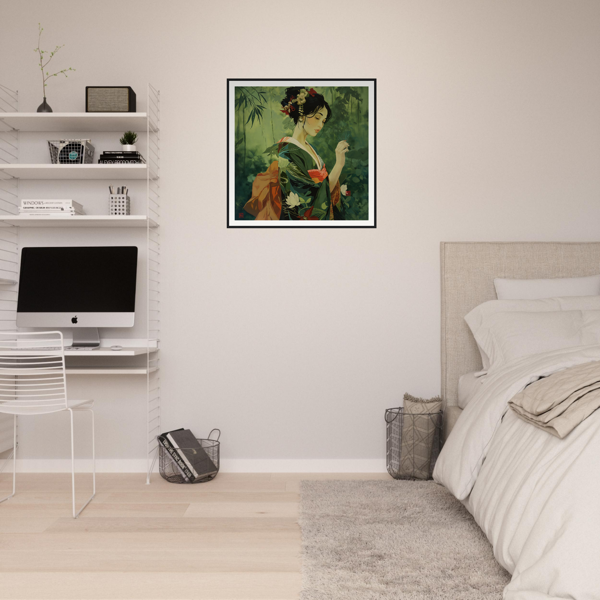 Welcome tranquility into your home with our exquisite "Minimal Zen Elegance" framed wall art. This piece encapsulates the serene introspection of a woman in traditional kimono, embracing her peaceful garden setting with grace and reflection. A fusion of AI innovation and traditional artistry, this masterpiece invites you to pause and revel in its calm beauty.