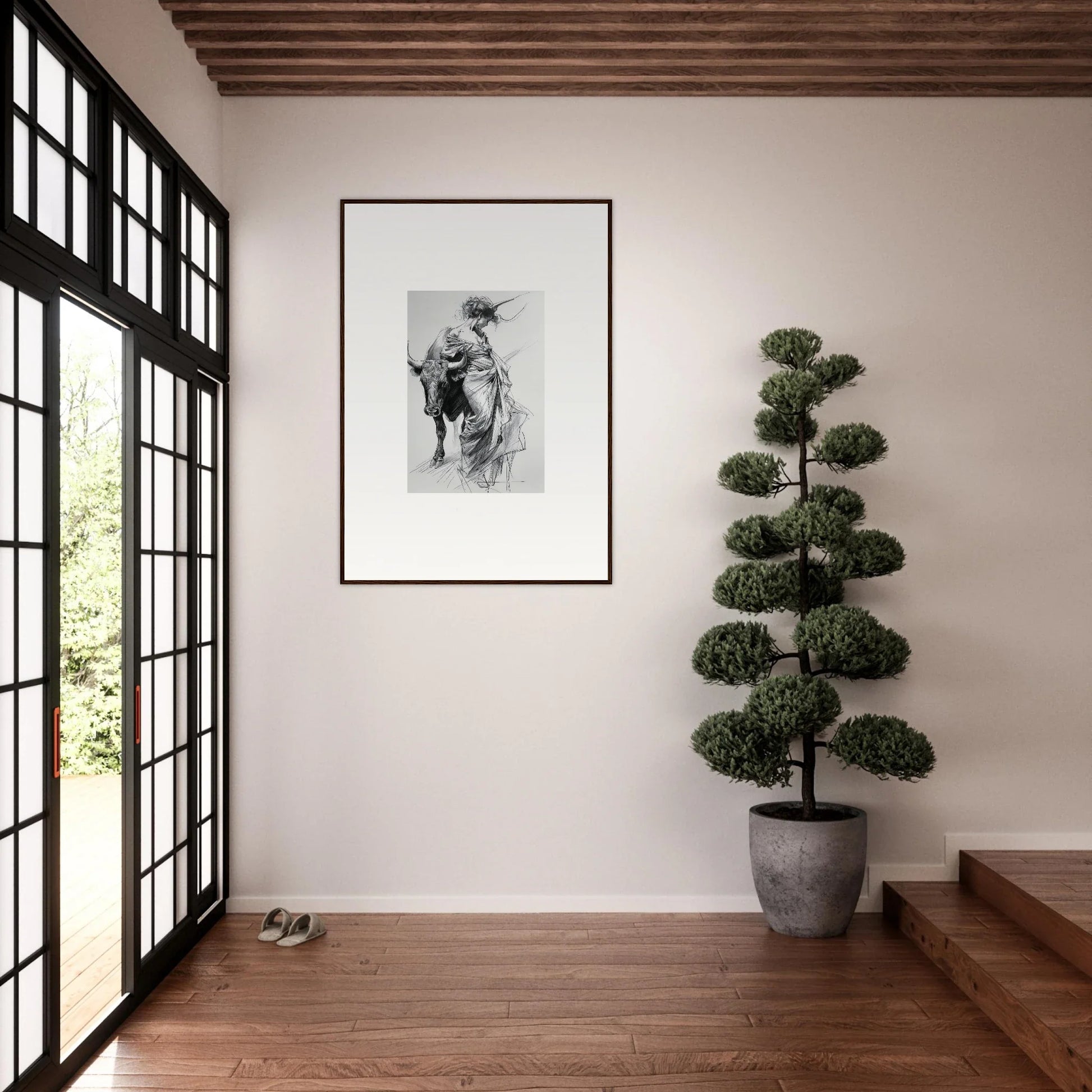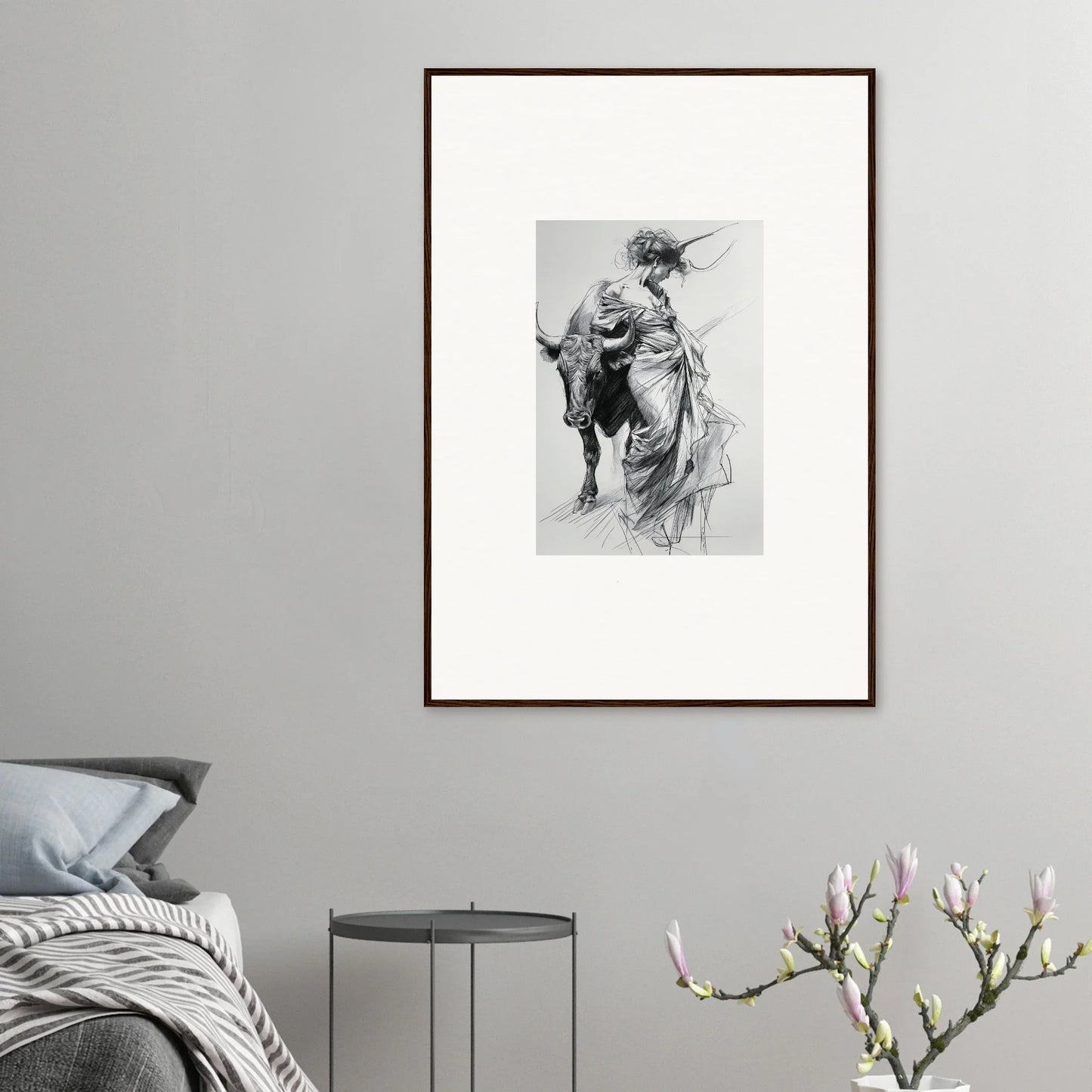 Our Minotaur's Melodic Siesta Framed Wall Art is more than a decoration; it's an experience. Transform your home into a sanctuary of art and elegance with this piece. Remember, the size refers to the frame size; the print size might be smaller if the margins exist, adding to its unique charm and allure.