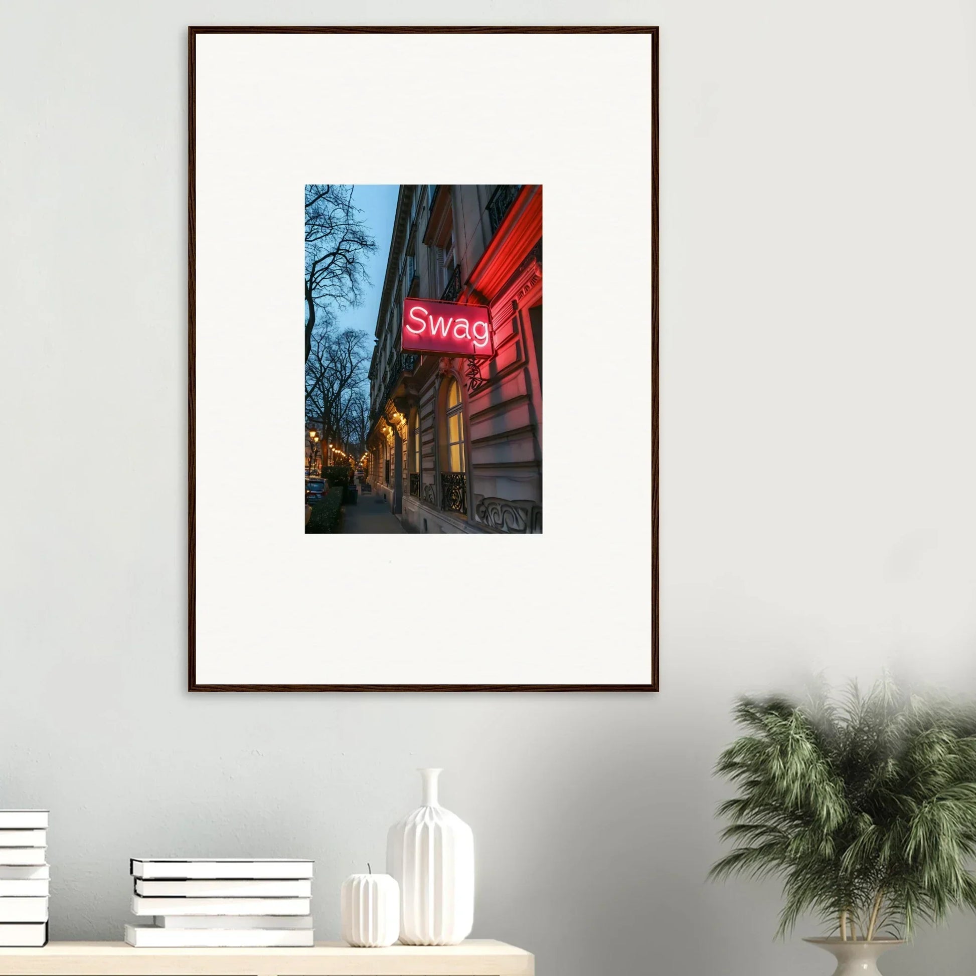 The energy of the city, the allure of architecture, and the thrill of street style. The "Neon Eternal Whispers" captures this mood perfectly, making it an ideal piece for any commercial space or living room. This photography art is soaked in adventure and exploration while creatively inspiring those who behold it. The vibrant red neon sign is beautifully complemented by the serene blue backdrop, showcasing complementary color palettes that bring harmony and visual intrigue to any room.