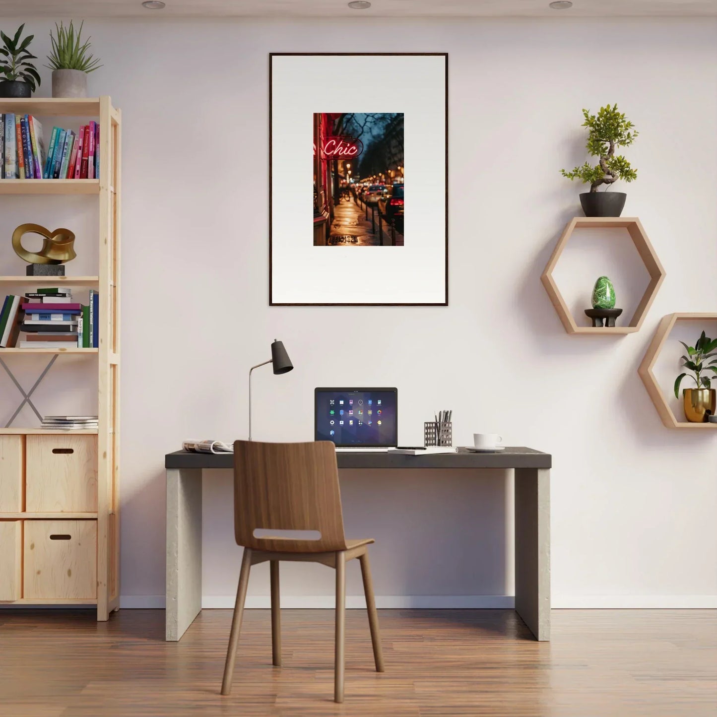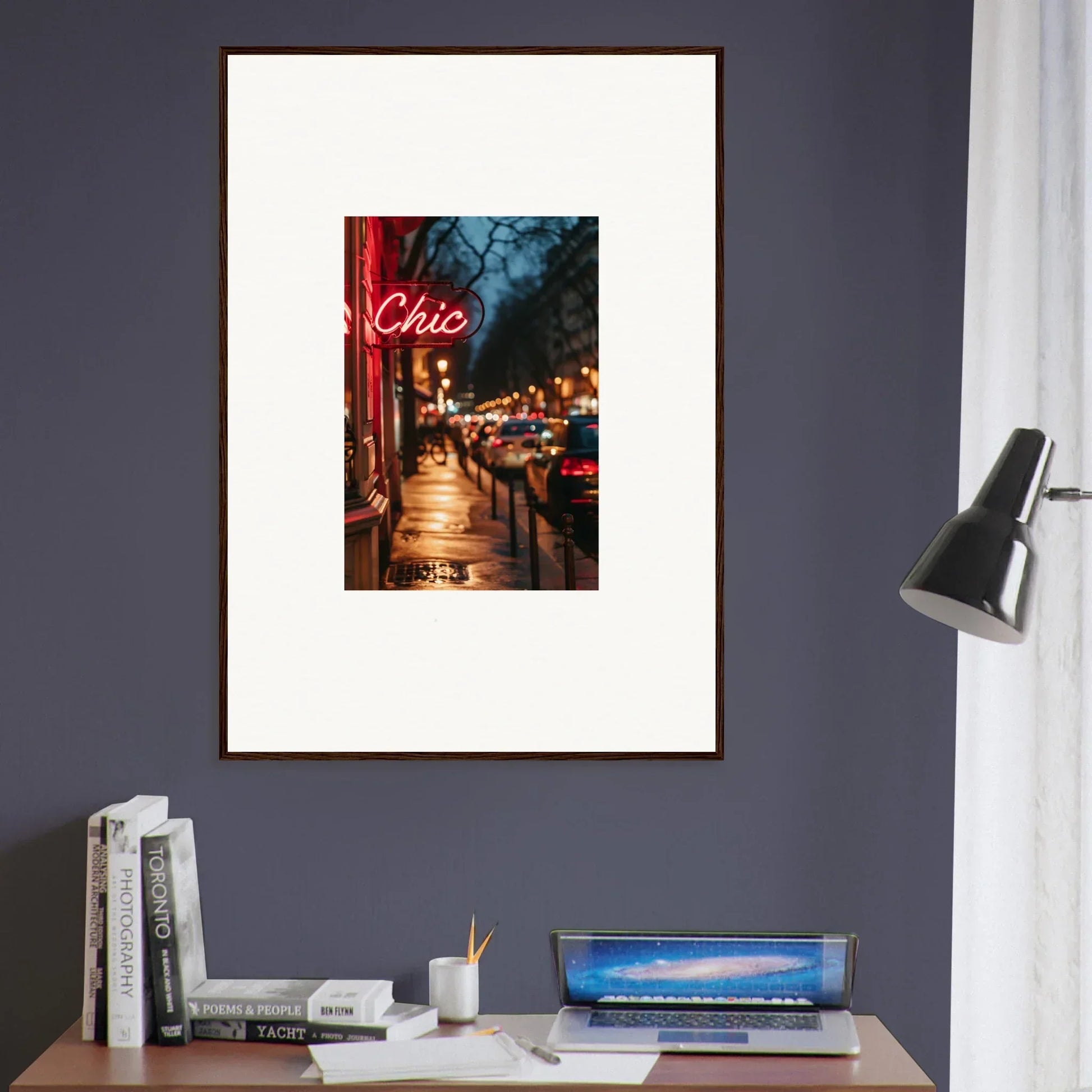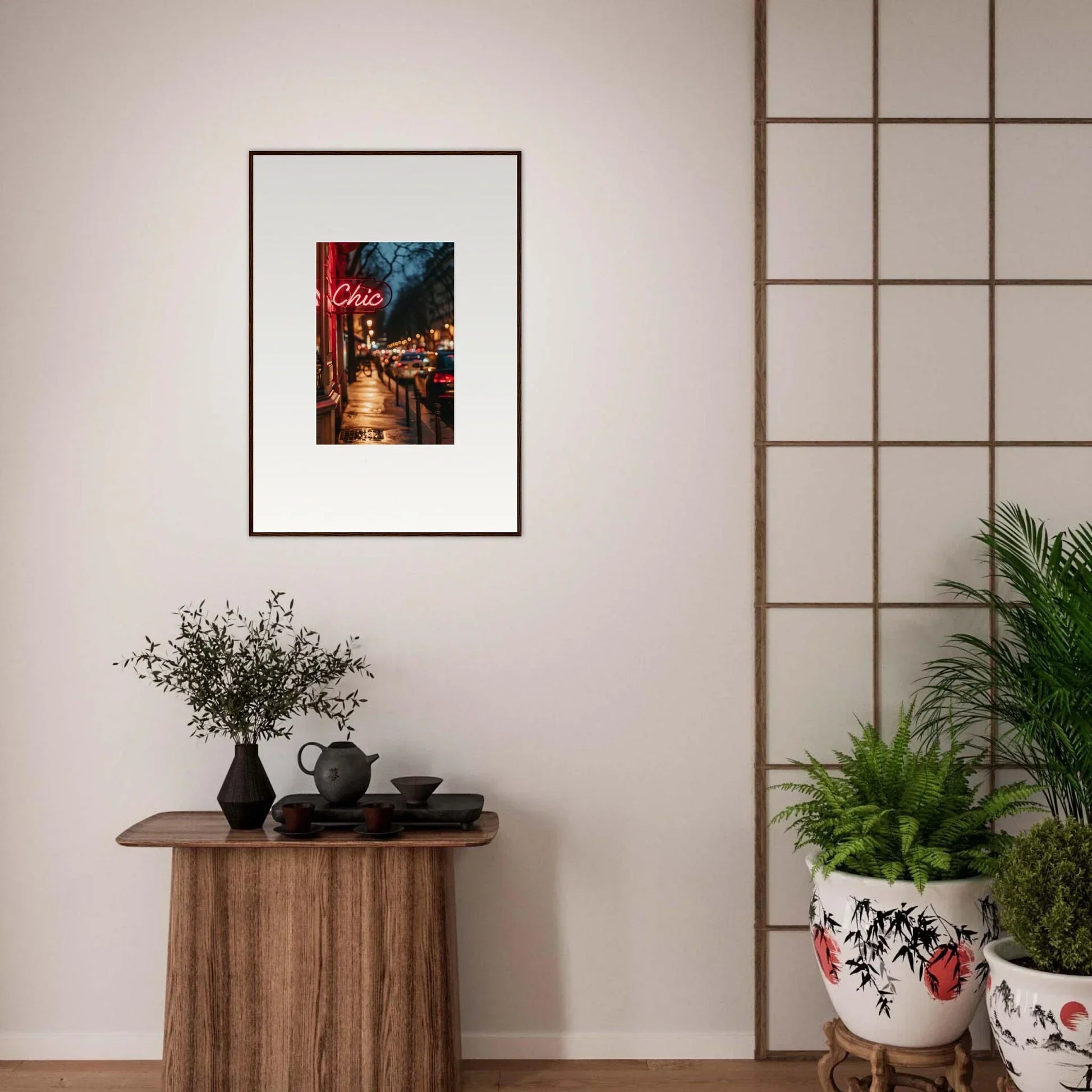 Picture a world where the sophistication of cityscapes intertwines with intricate craftsmanship, bringing style and exploration into your space. Our Neon Reverie framed wall art, created with the latest AI image generation technology, encapsulates this essence, transforming any commercial space or living room into a haven of luxury and adventure.