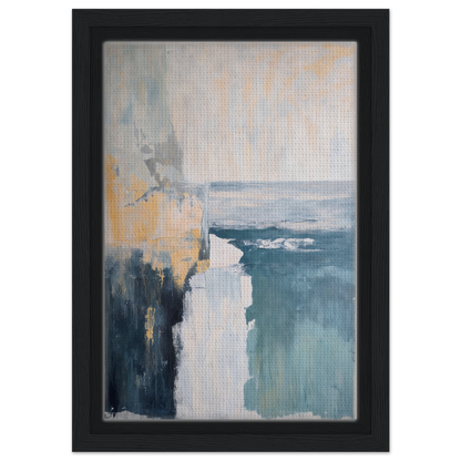 Our framed canvas is carefully created from FSC-certified wood, including your choice of Black, Natural Wood, or Dark Brown finishes. The rich, luxurious texture and various shades of blue and teal, along with hints of muted yellow, conjure the soothing rhythm of waves meeting sunny shores.