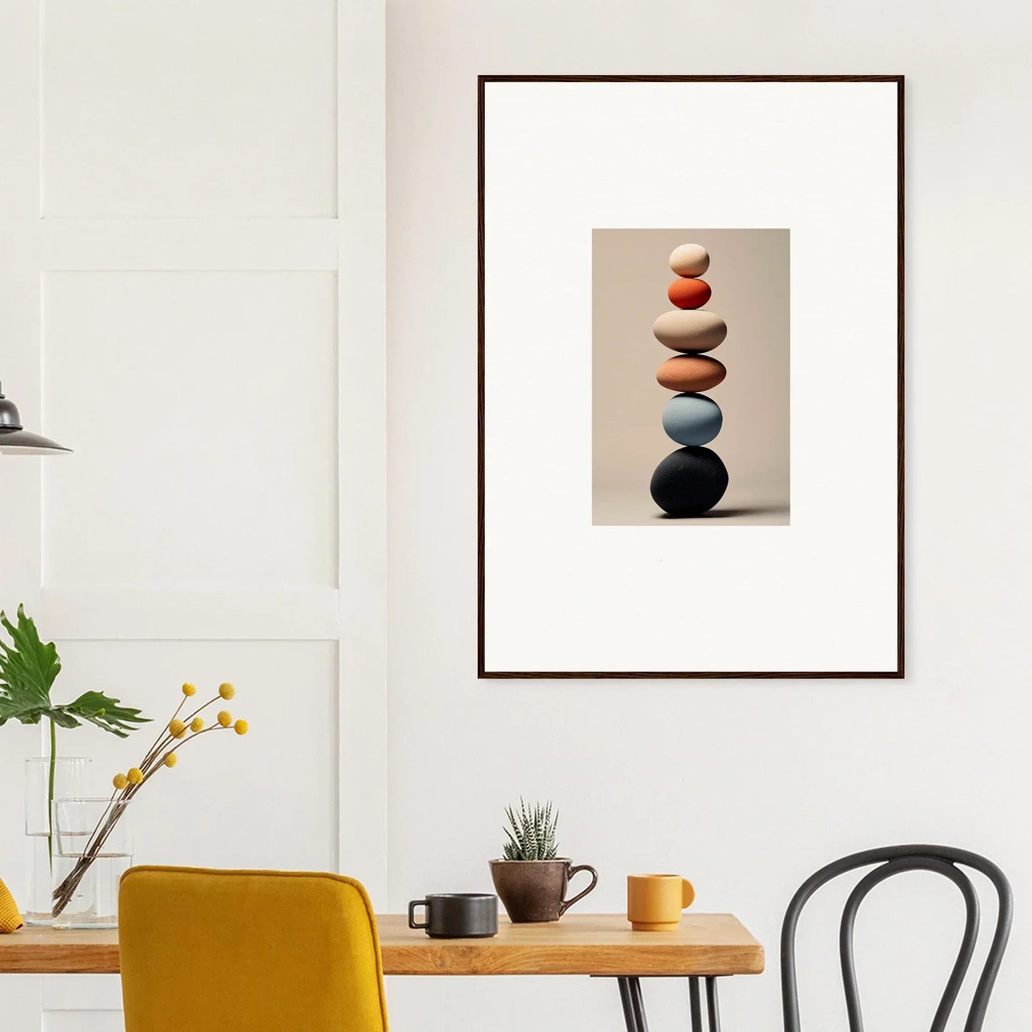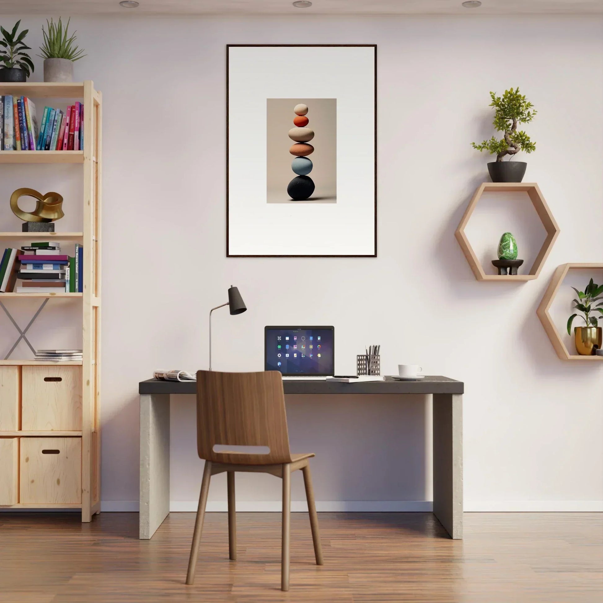 Imagine a moment where art and craftsmanship meet, creating a timeless piece that transforms your living space into a gallery of elegance. Introducing the Orb Reverie, our latest framed wall art that captures the very essence of serene minimalism and abstract art. Featuring the latest AI-generated imagery, this masterpiece paints a picture of tranquility and focus, turning any room into a sanctuary of style.