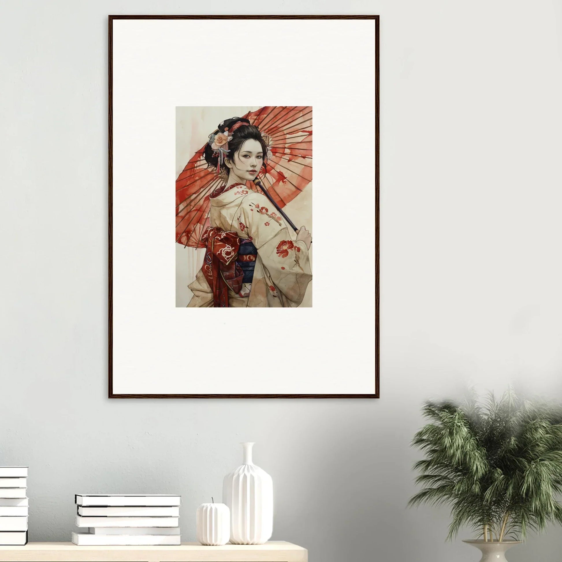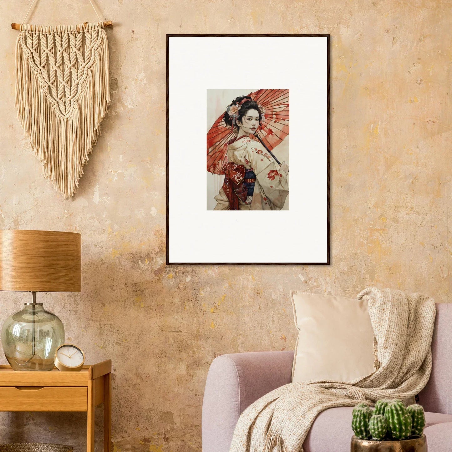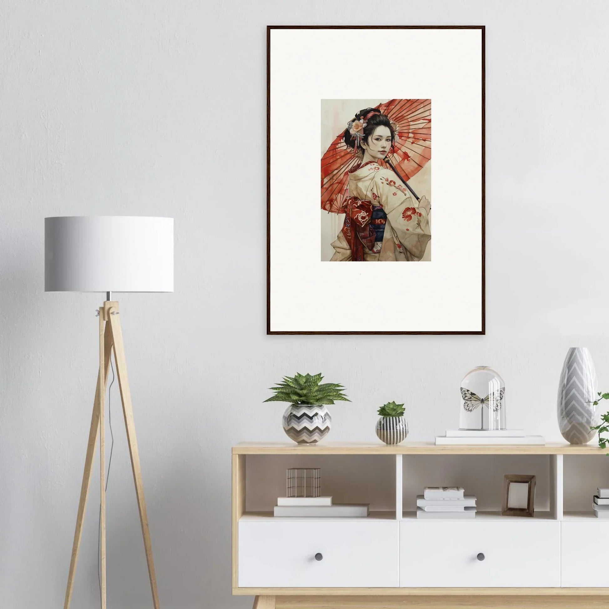 This captivating piece blends colors in a harmonious palette, dominated by ethereal creams and vibrant reds, promising to breathe life into your bedroom or living room. Its big margins accentuate the artwork’s elegance, making it a statement piece that brings serenity and inspiration into any space.