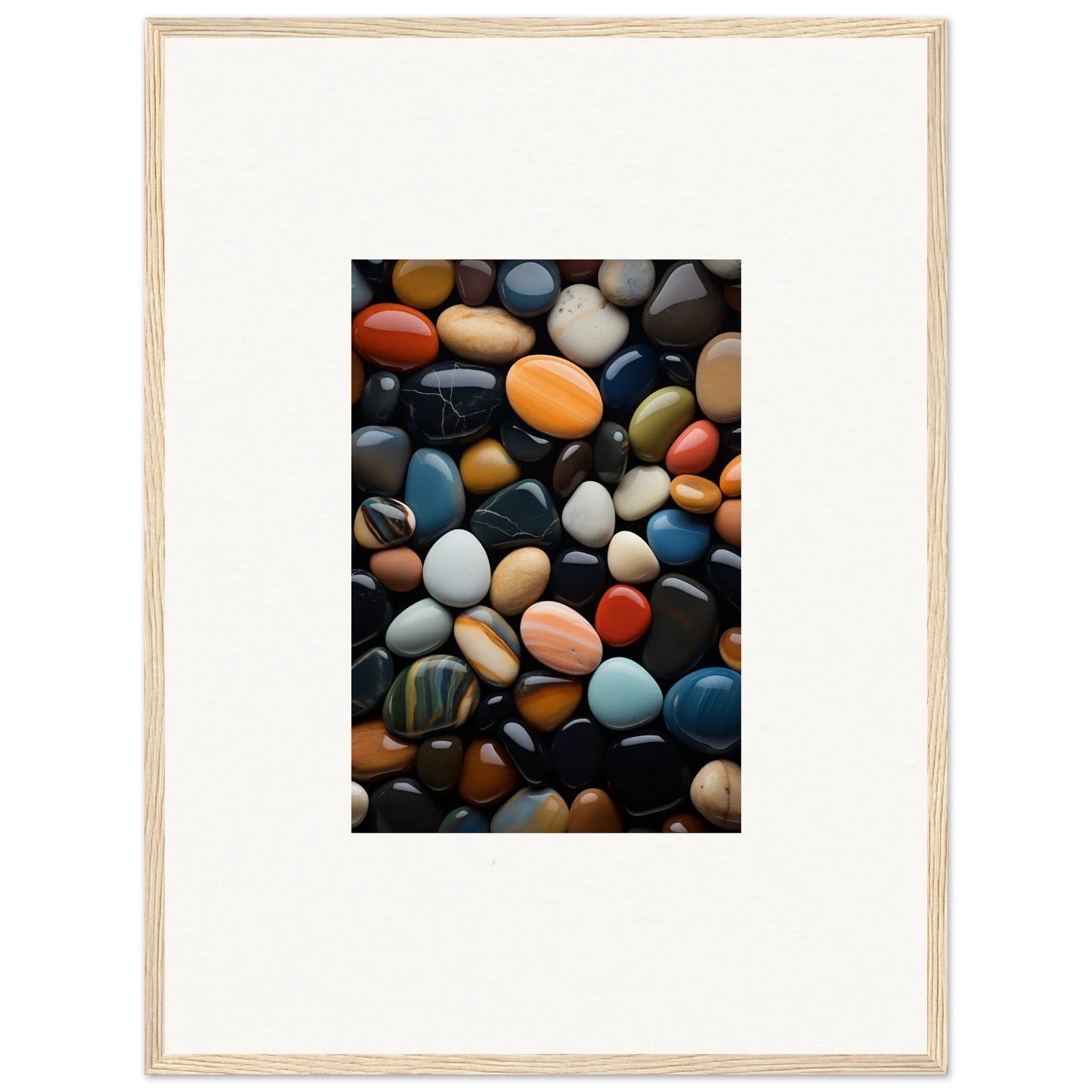 Introducing the "Pebble Pandemie Paris," a striking piece that speaks to the beauty found in nature’s simplest forms. The abstract and textured pattern, created using the latest AI image generation technology, brings a medley of colors into harmony. Perfect for the living room or home office, this wall art bursts with warm colors and complementary hues that inspire a mood of joy and celebration.
