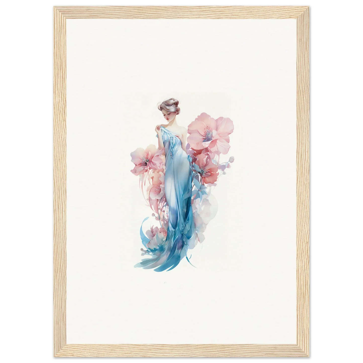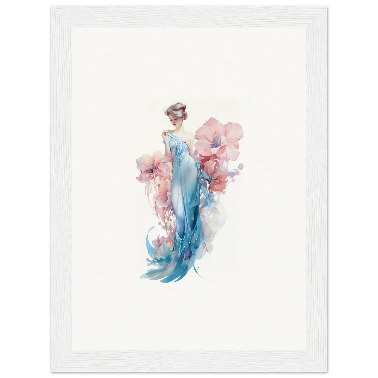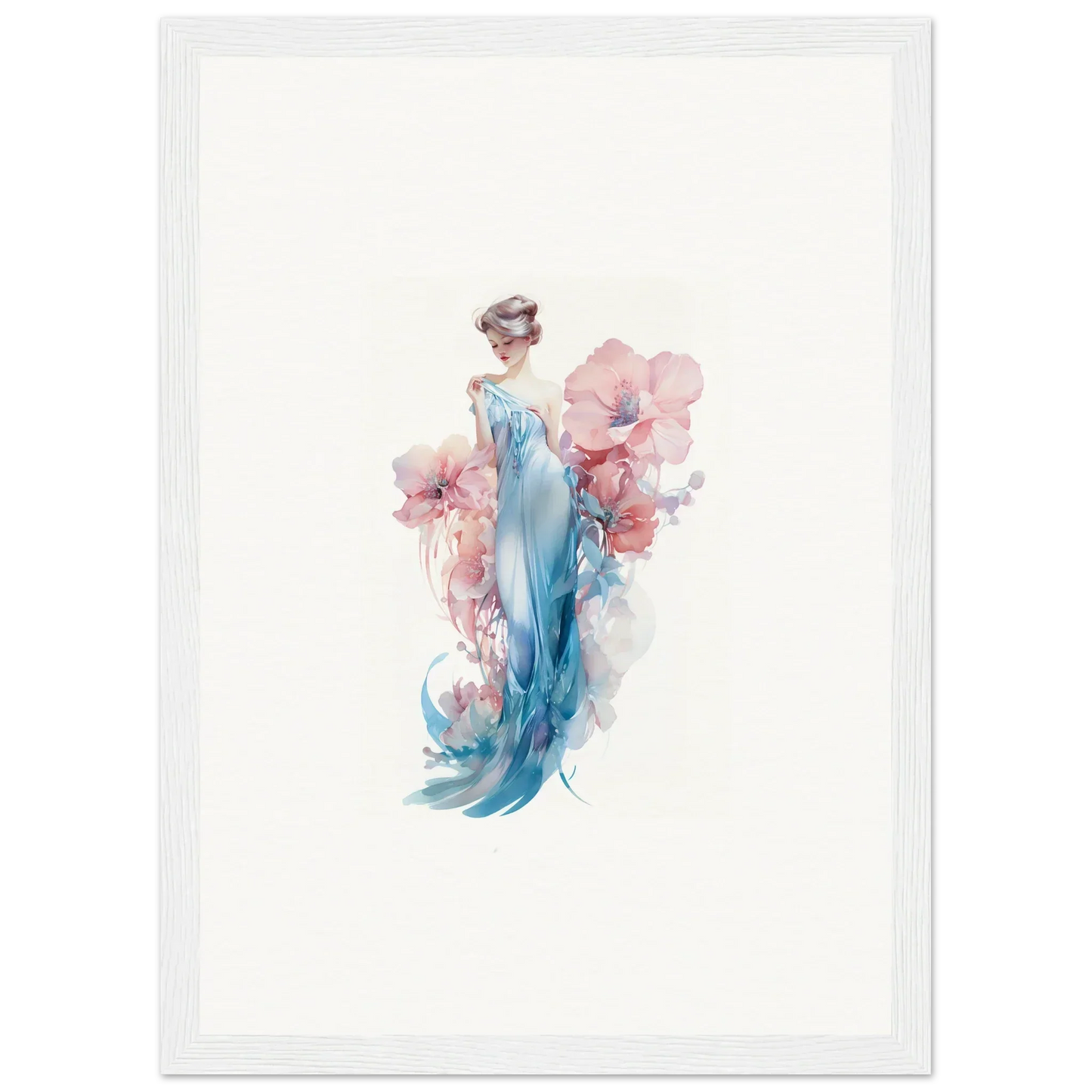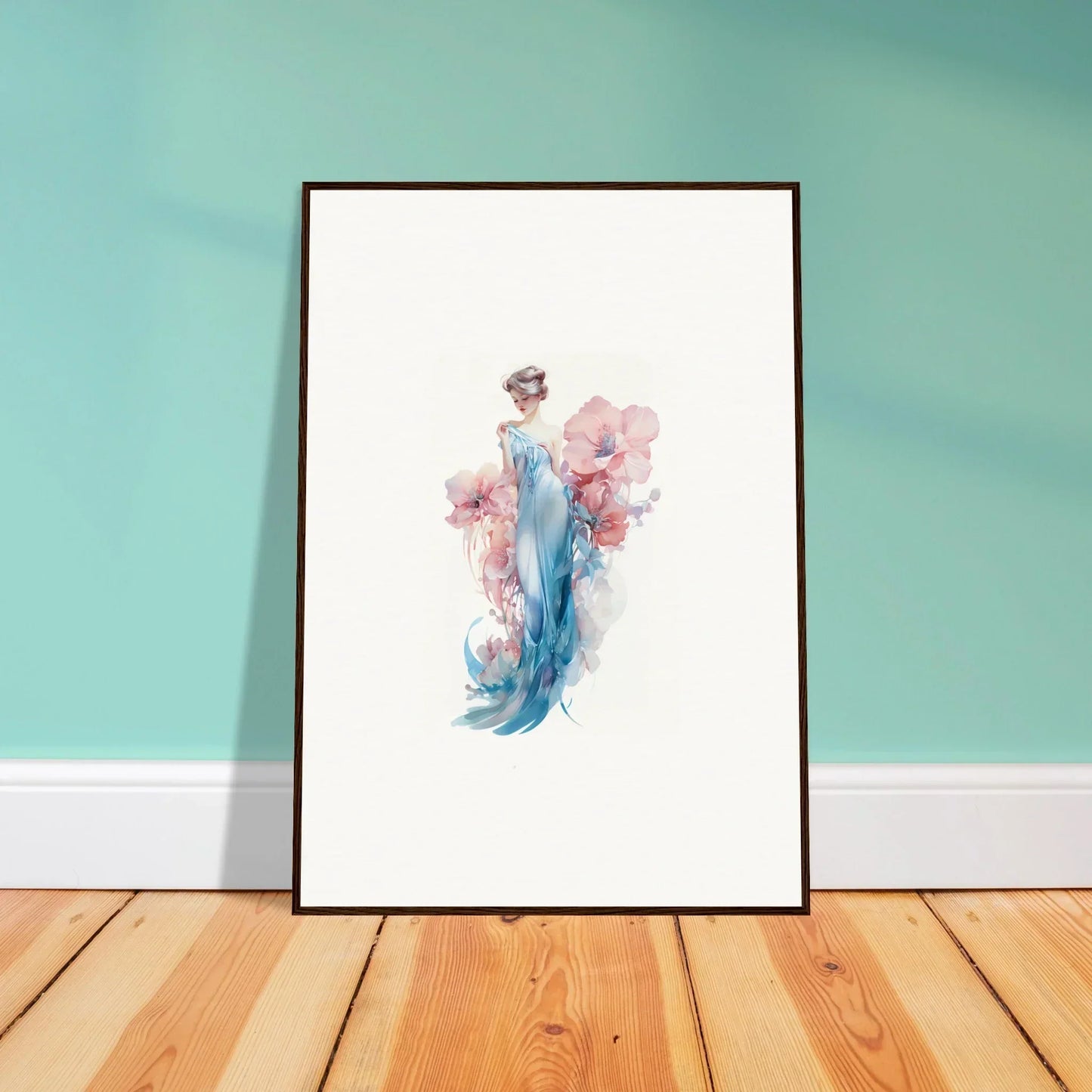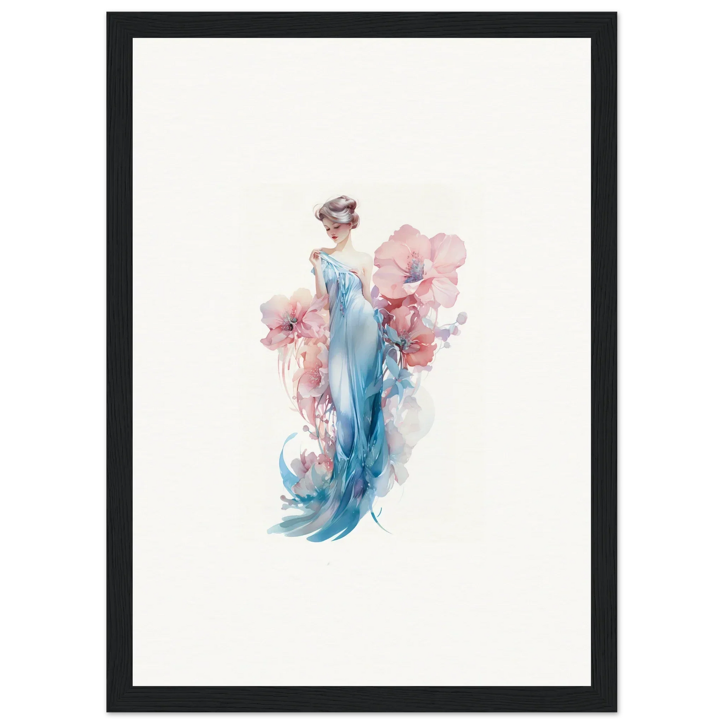 The Petal Mirage framed art stands out with its soothing color palette of blues and pinks, making it an ideal addition to your bedroom or any women's space striving for a mood of luxurious style and serenity. The complementary colors and the delicate watercolor style made easy by the advanced AI image generation technology serve to enhance any room's decor.