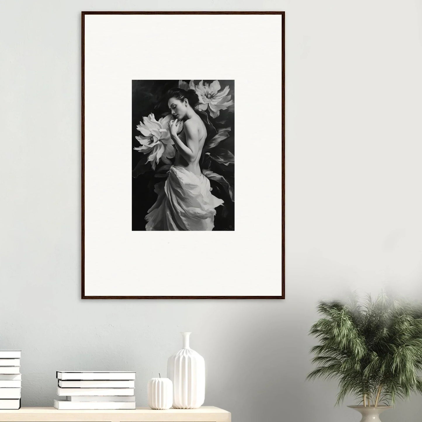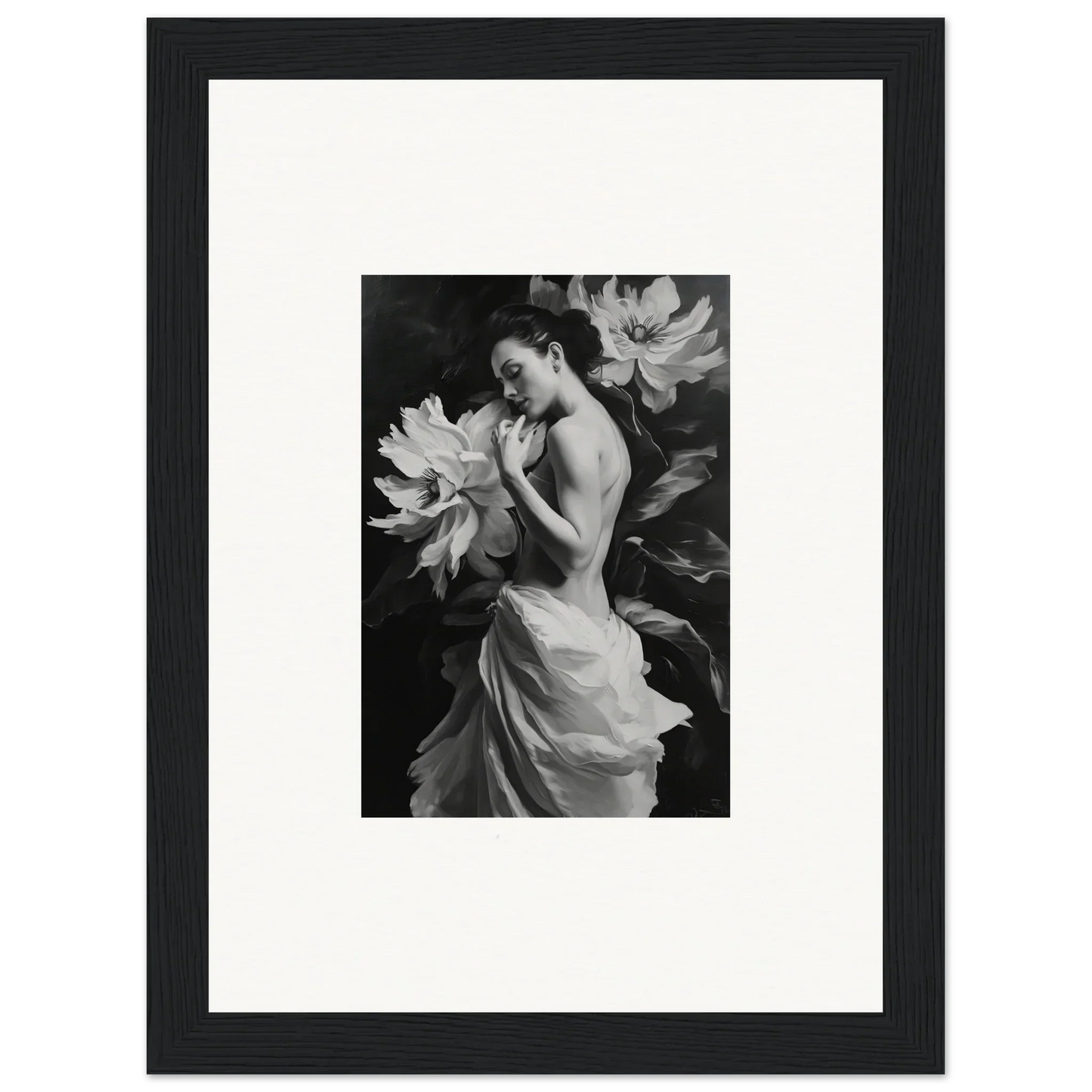 Our featured piece, "Petal Mond Apparition," is a stunning black and white, AI-generated artwork that seamlessly merges the figurative with the floral. This monochrome masterpiece emanates a mood of compassion and love, evoking serenity and peace in any space it inhabits. Perfect for the bedroom or living room, this art fits superbly with classic and modern decor styles.