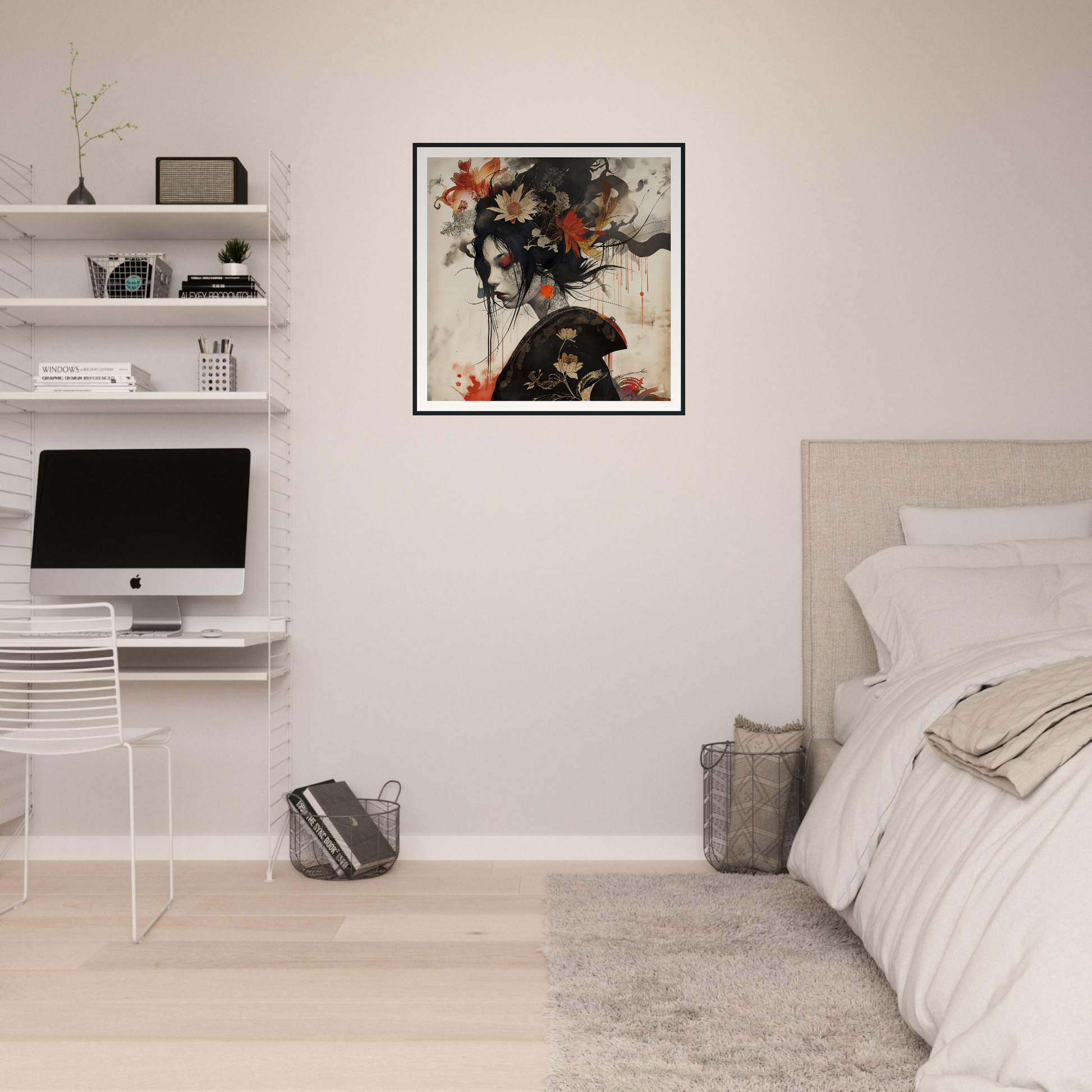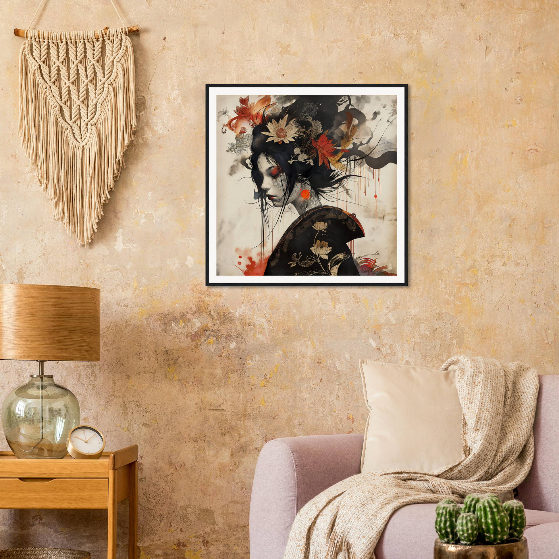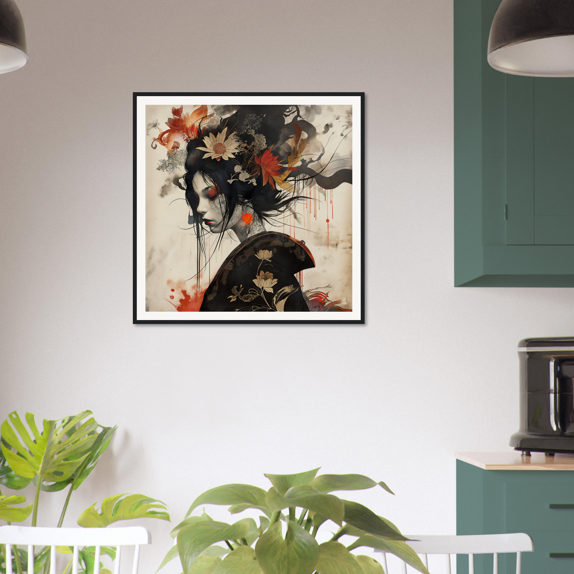 Envision your room transformed by the blend of traditional Japanese aesthetics and modern abstraction presented in our Petals Afloat Muse Framed Wall Art. This exquisite piece, born from the latest AI image generation technology, captures a serene portrait of a woman adorned with vibrant floral motifs, seamlessly merging cultural beauty with contemporary allure.