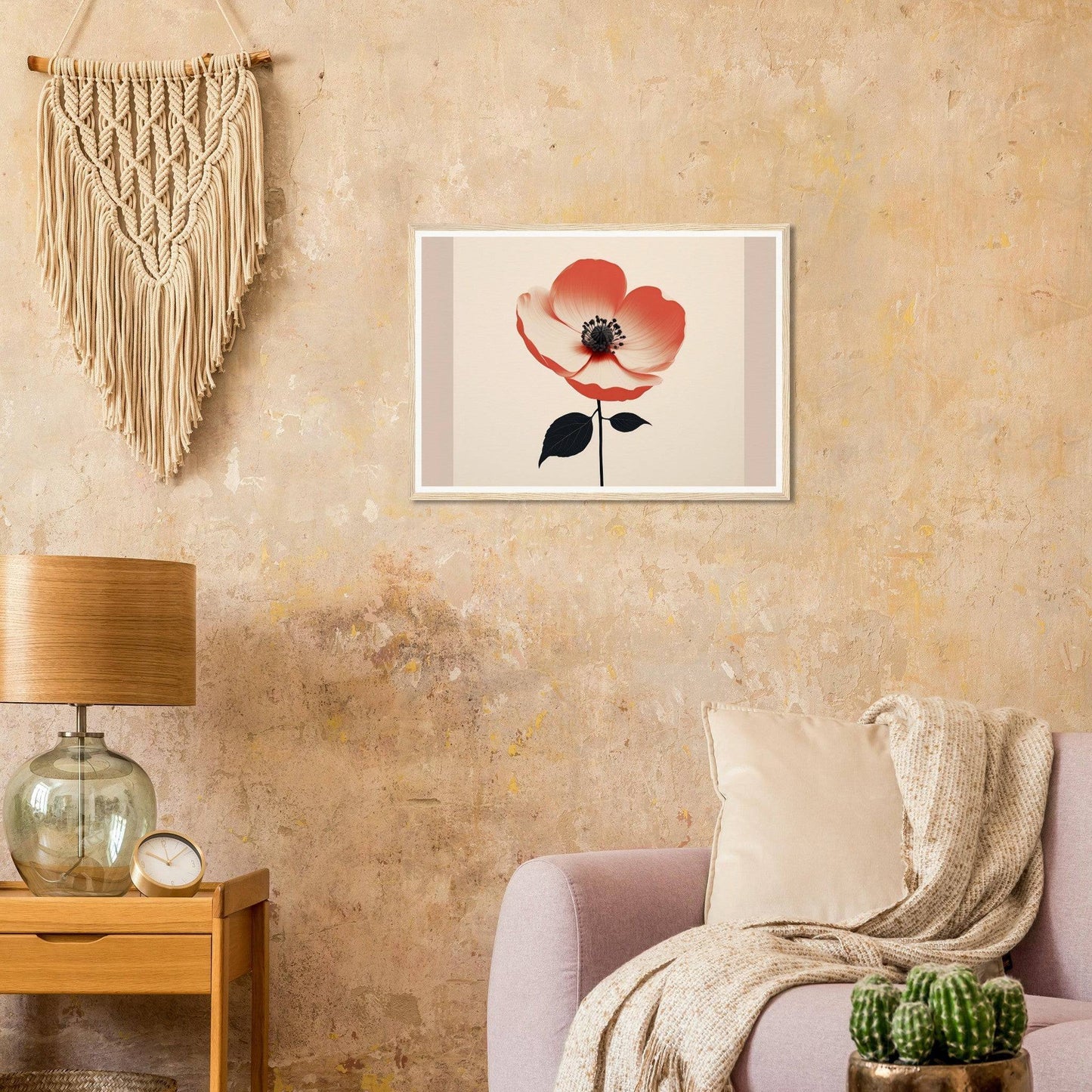 With Poppy the Oracle, you are not just buying a piece of art; you're adopting a piece of elegance, a harmonious blend of technology and nature. Imagine this minimalist floral beauty bringing serenity and inspiration to your bedroom or living room, wrapped in the calming hues of red and natural tones.