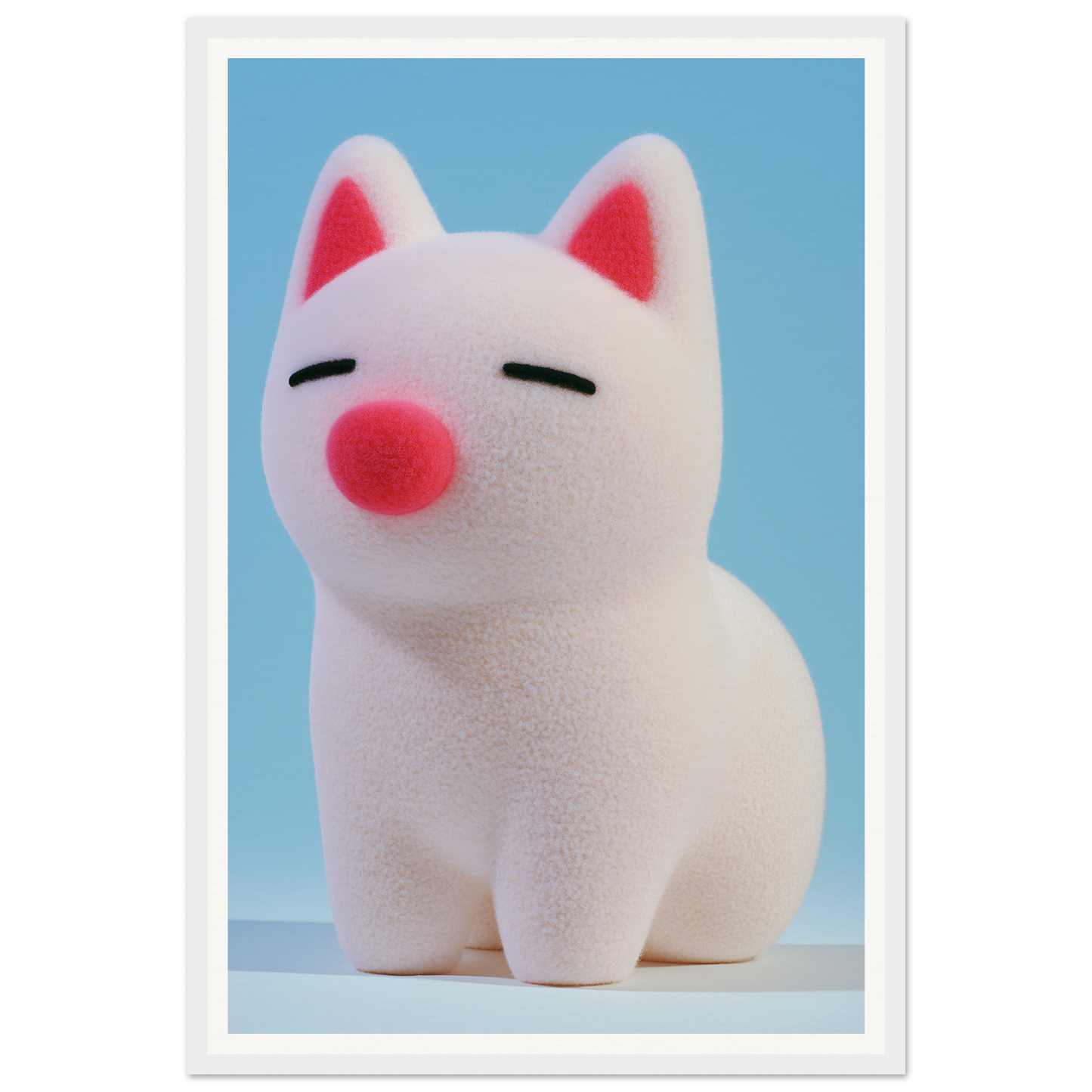 Dominated by a soft pastel pink and serene sky blue, this artwork employs gentle hues that create a calming and inviting ambiance. The deeper pinks of the character's nose and ears, framed by delicate blacks for its eyes, add a touch of whimsical charm.