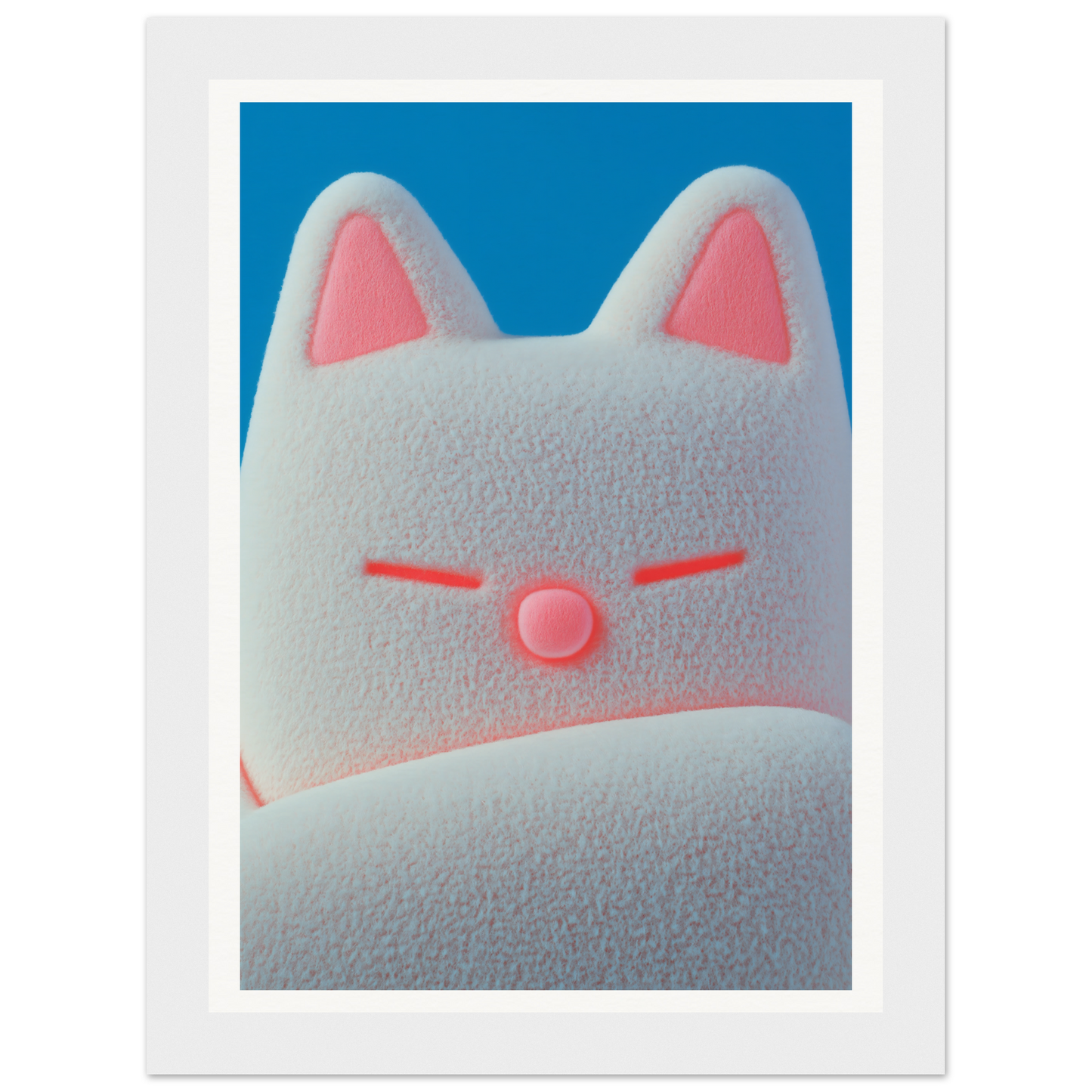 The artwork's soothing pastel color palette, featuring a soft white creature playfully accented with bubblegum pink within a vivid blue background, speaks to those seeking a slice of serene joy in their living rooms or bedrooms.