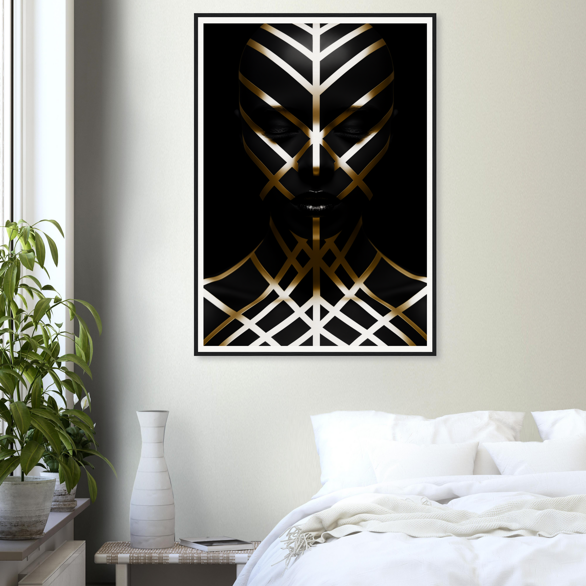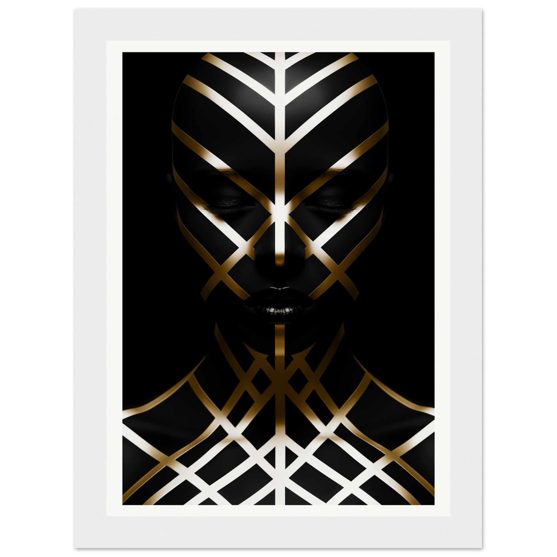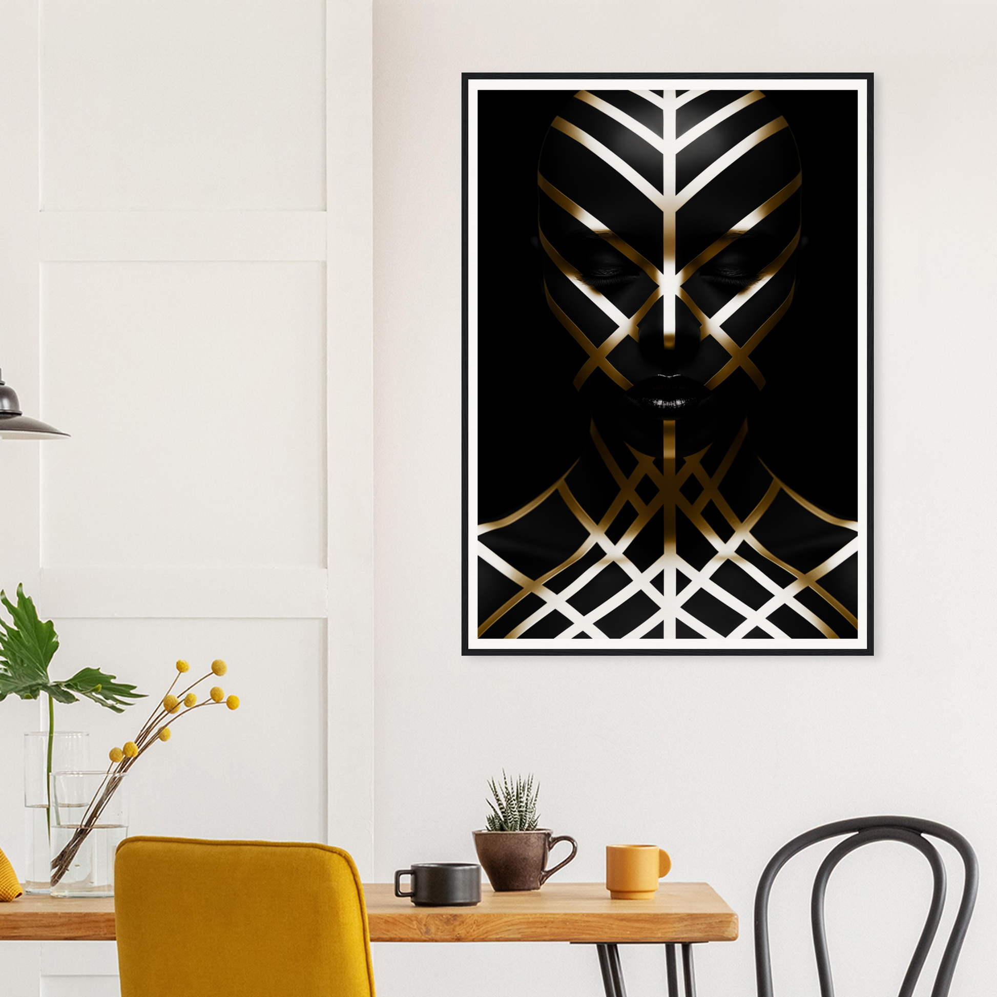 This artwork is printed on a premium framed canvas, with a quality that ensures vibrant colors and sharp details. Enhanced in a contrasting black and metallic gold palette, the piece combines depth and opulence, evoking a transcendental serenity. Ideal for living rooms, study walls, or any space aspiring to inspire.
