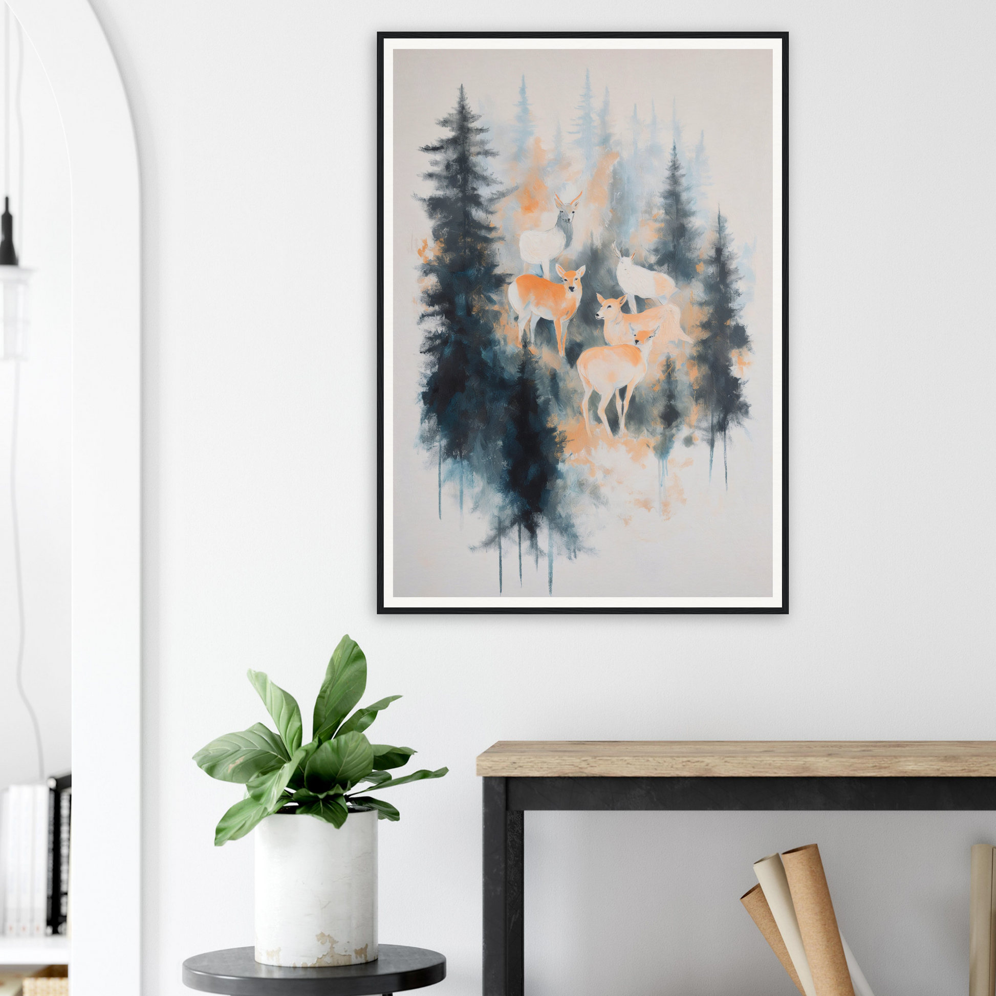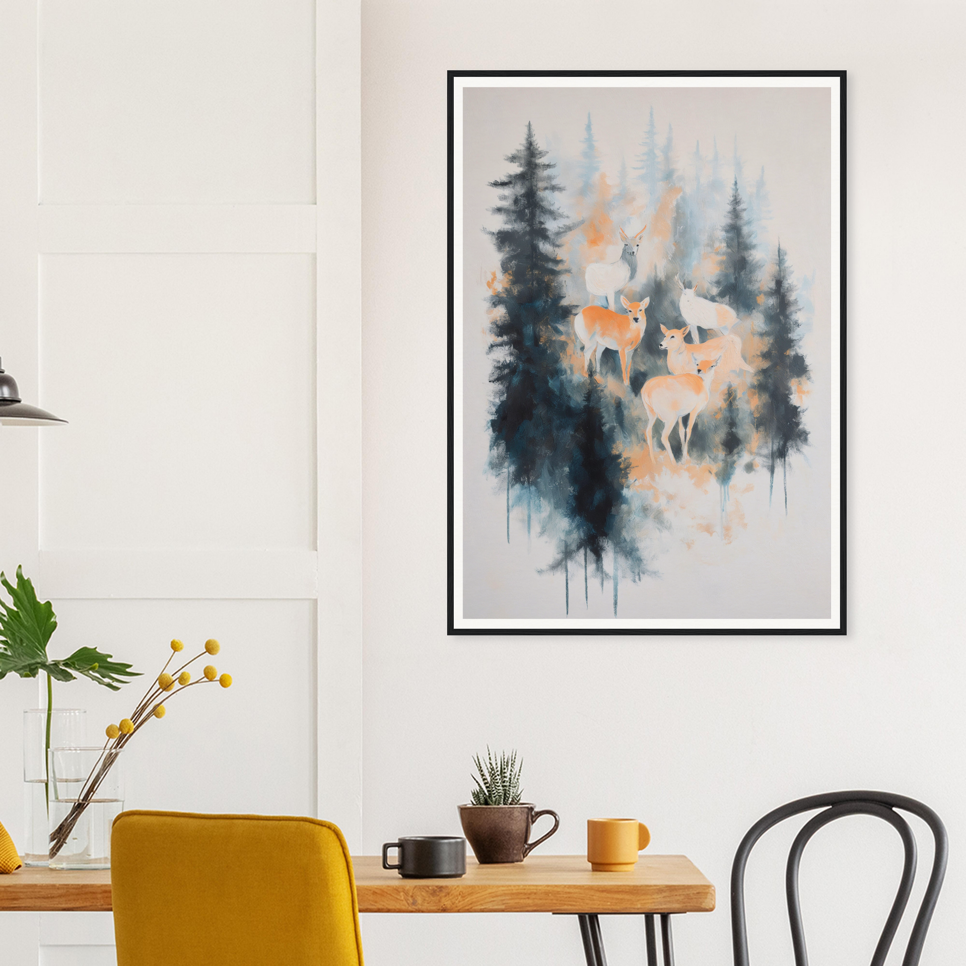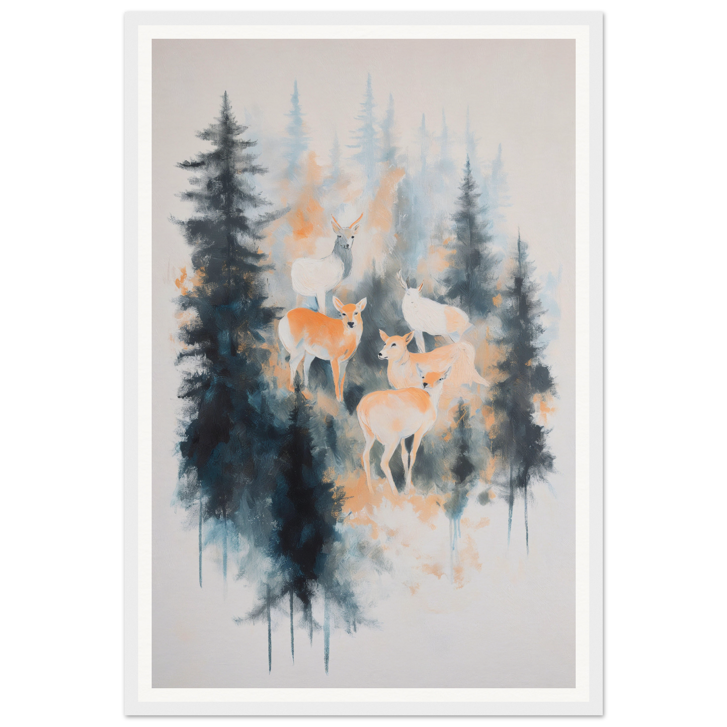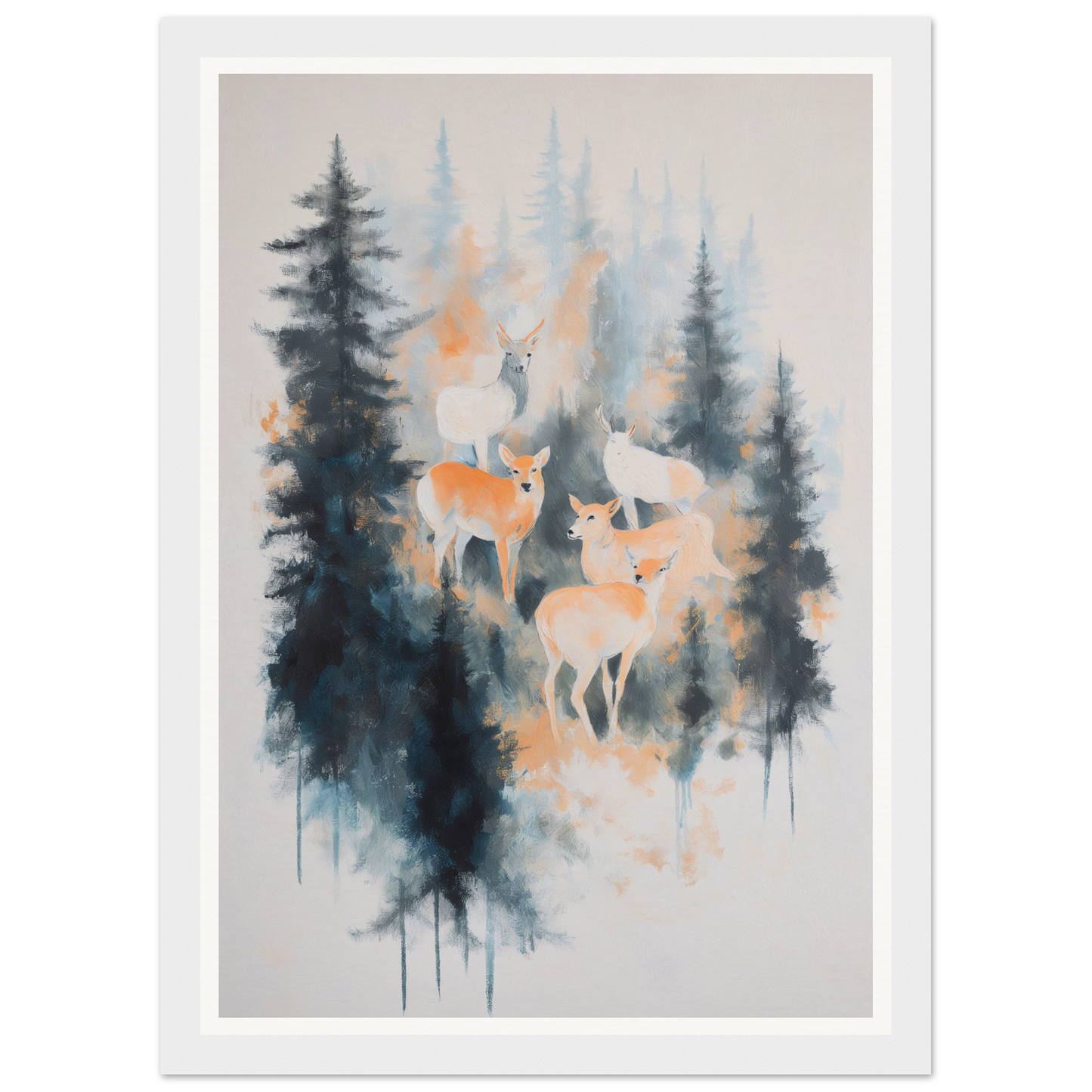 This masterpiece, generated using the latest AI image technology, brings a blend of modern impressionism to your home. Dominated by soft blues and greys, the background creates a mystic symphony of serenity, while warm earth tones enrich the presence of the elegant deer, illustrating the delicate balance of life and its surroundings.