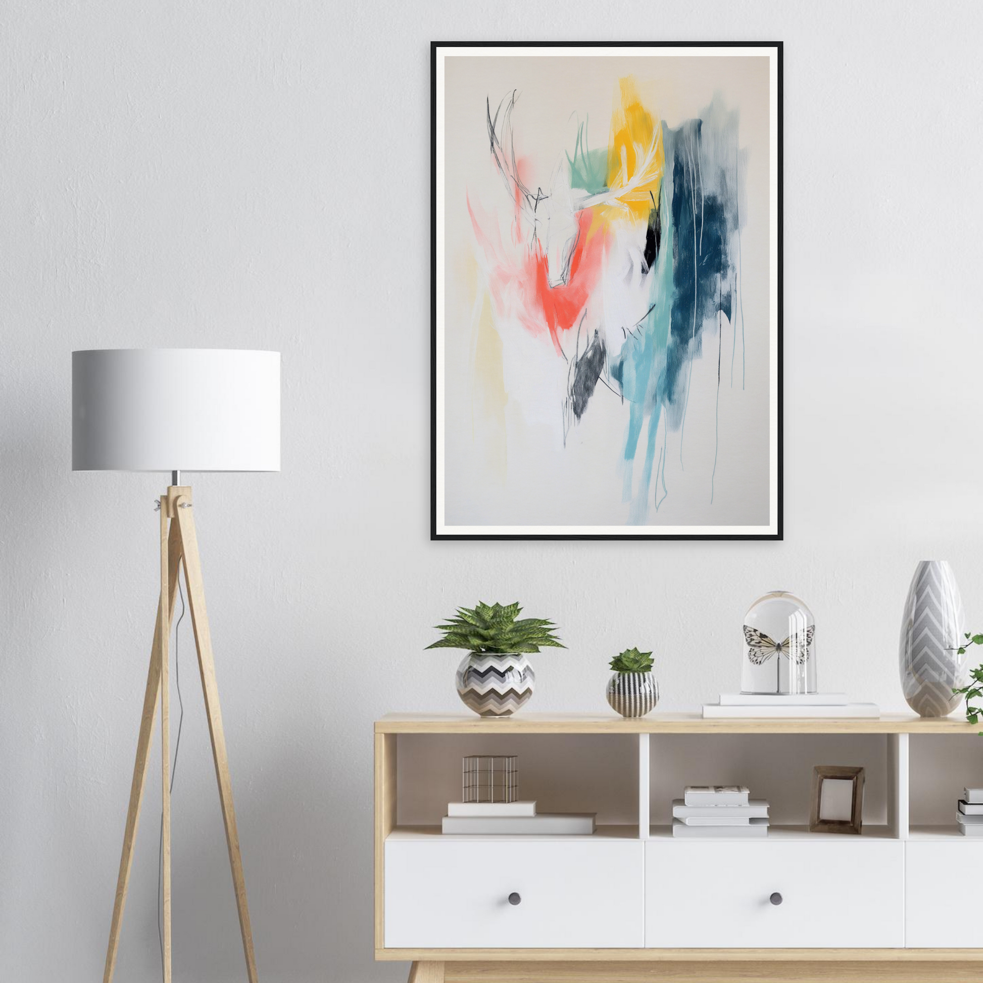 Step into a world where colors dance effortlessly. "Liquid Antler Elegy," our signature artwork, captures the imagination with its abstract expressionist style. Created with the latest AI-generation technology, this framed canvas art is more than just a picture; it's a cascade of creativity that invites contemplation and stirs the soul. Perfectly nestled in elegant framing, this masterpiece enriches every room with a unique blend of modern and organic beauty.