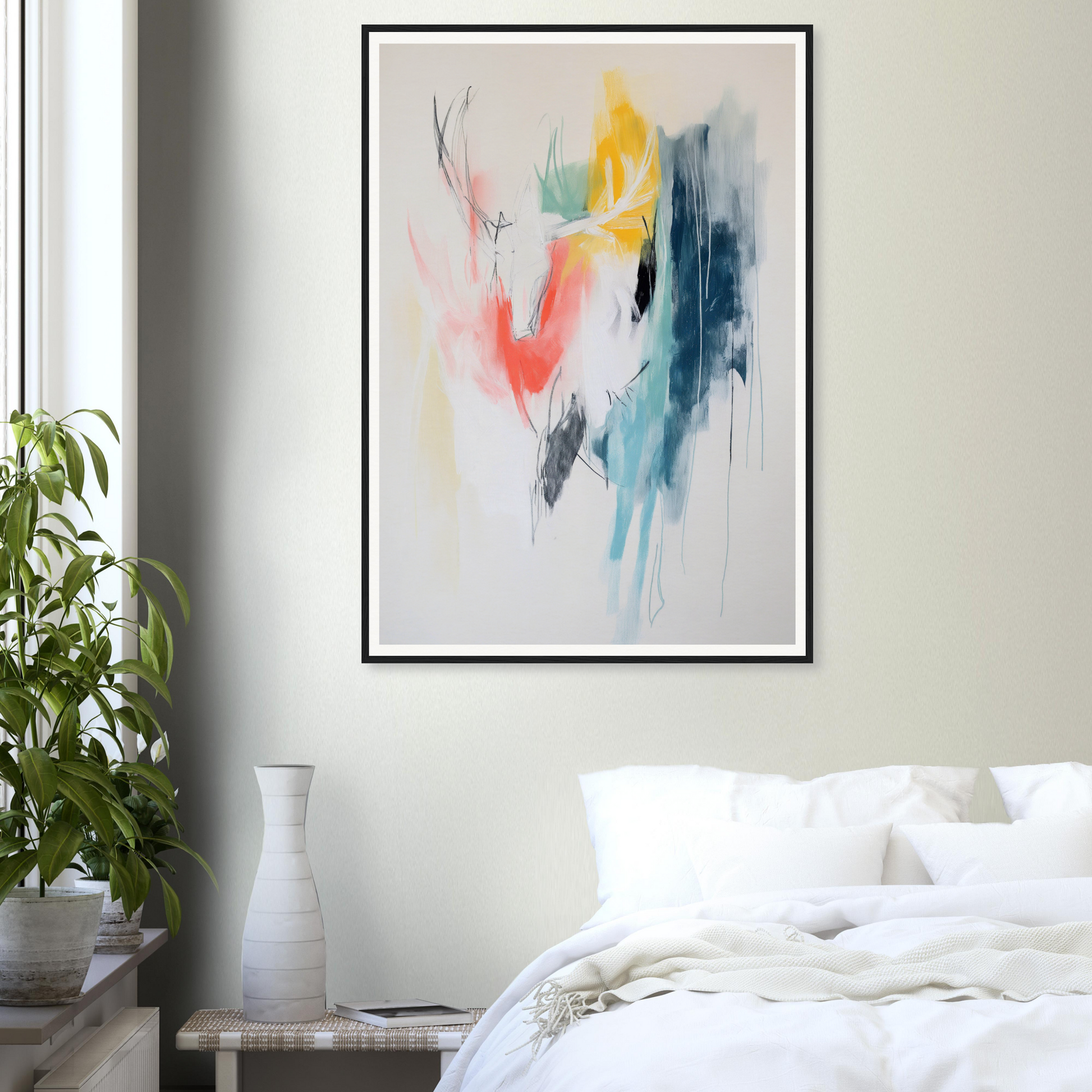 Our frames, crafted from the finest materials, showcase the art with grace. Choose from natural oak for an earthy feel or select black or white frames for contemporary minimalism. The frame draws a seamless boundary that complements the vivid hues of blues, corals, and yellows, allowing the art to breathe in any room it adorns.