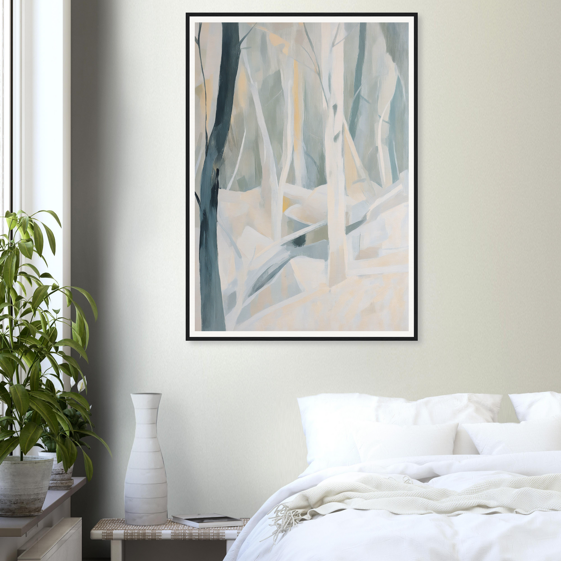With a sublime color palette of soft grays, off-whites, and gentle blues, this artwork perfectly captures the chill and charm of a serene winter landscape. It effortlessly complements spaces such as living rooms or bedrooms craving a touch of silent grace.