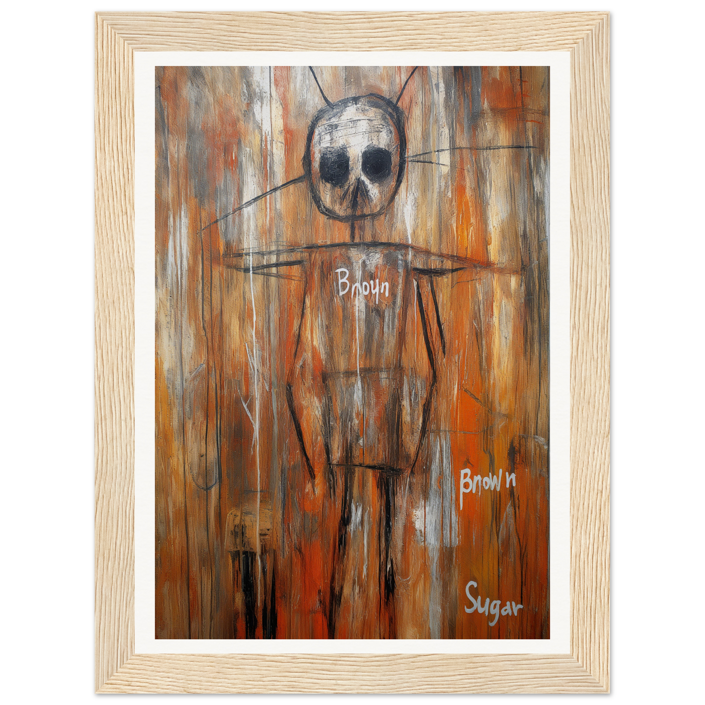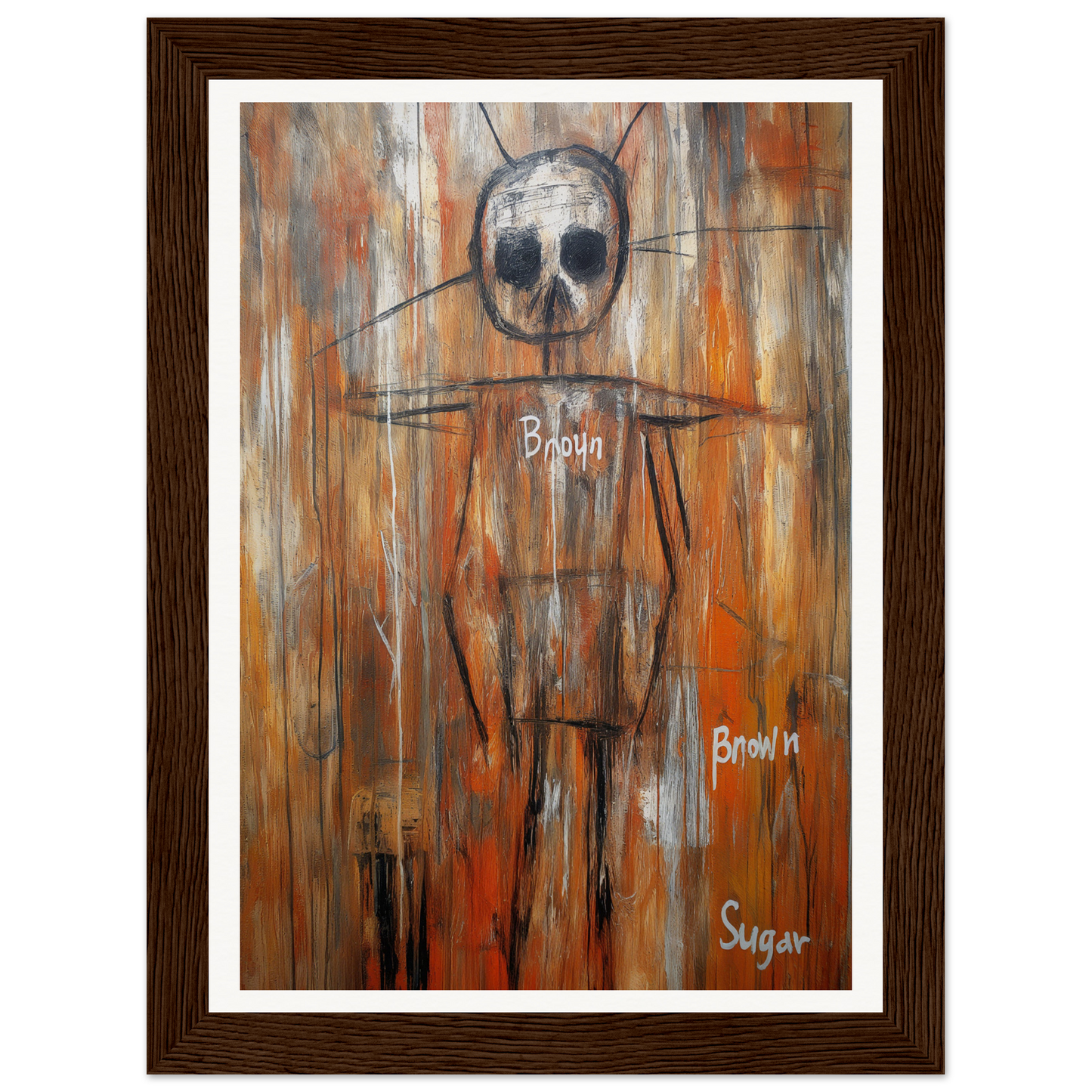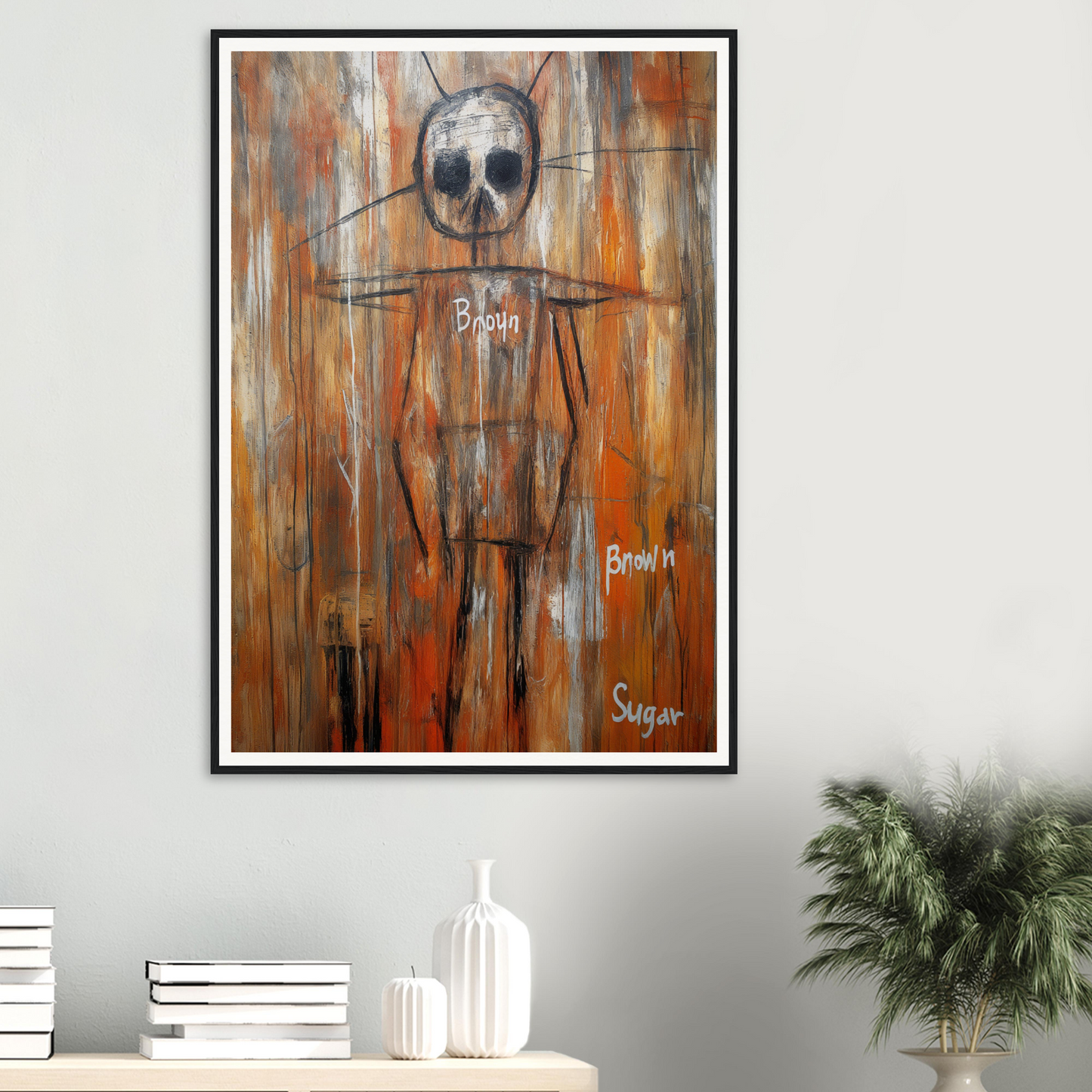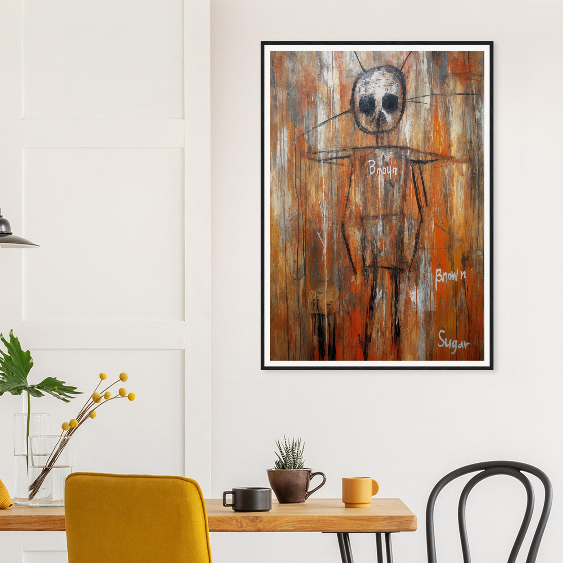 Drenched in earthy hues of warm browns and oranges, this piece evokes the rich palette of autumn. Black and white accents add sharp contrast, inviting you to contemplate its deeper meanings. Perfect for spaces like the living room or office, it offers a tasteful blend of introspective charm and modern aesthetics.