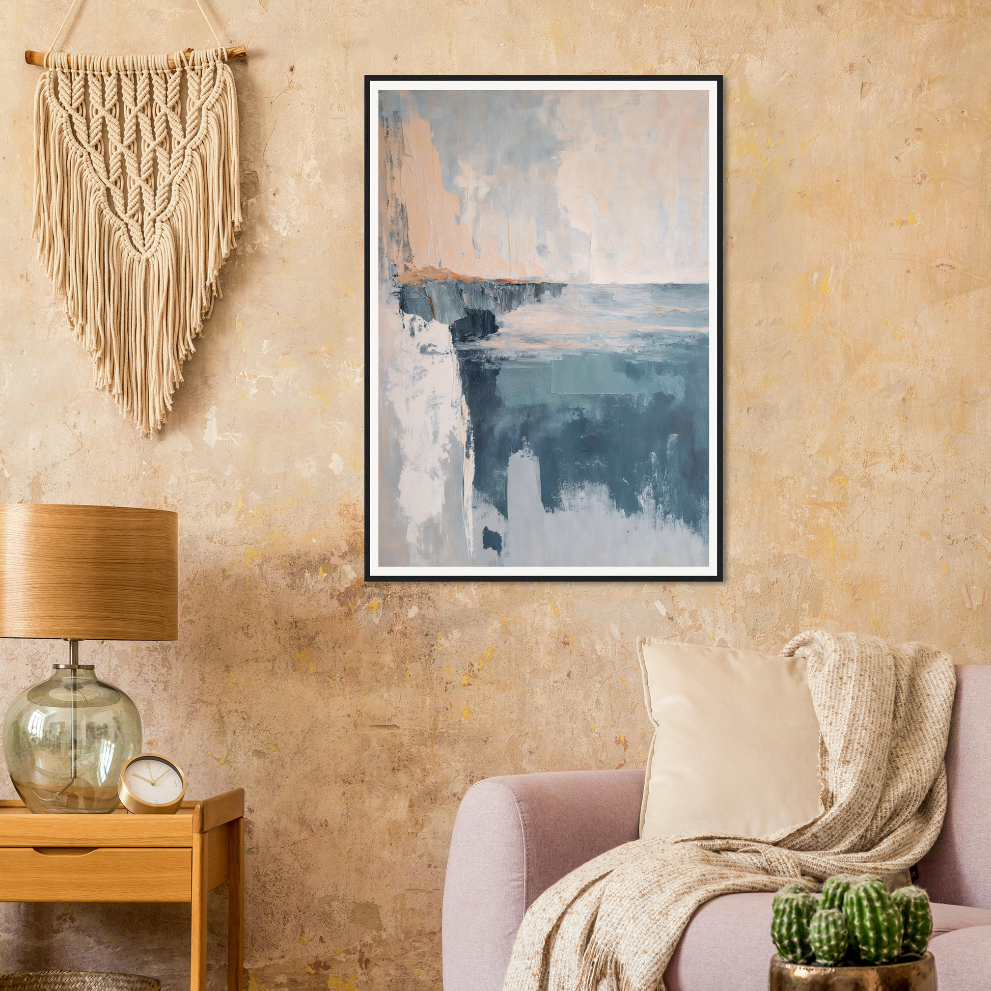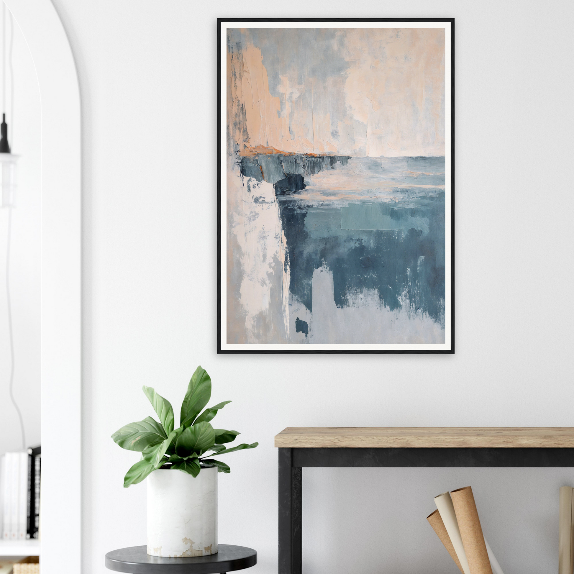 Our AI-created image is printed on premium canvas, immortalizing its colors and textures with unmatched clarity. Experience the calming interplay of muted teal, peachy beige, and soothing blues—ideal for cultivating a sense of limitless horizons and serene contemplation.
