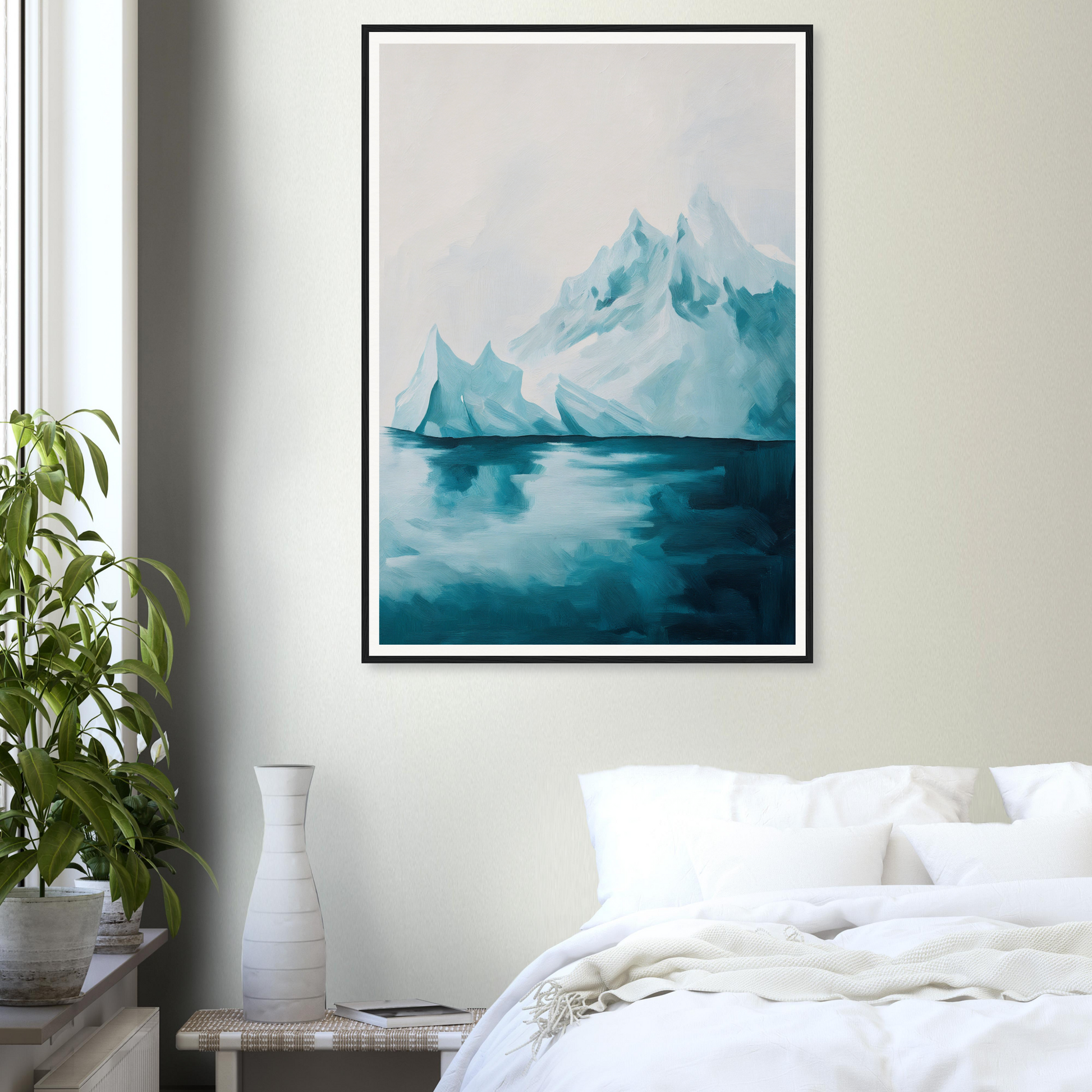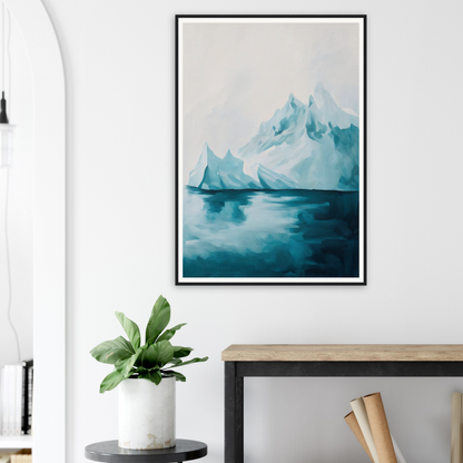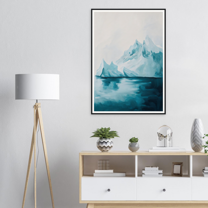 The tranquil blend of soothing blues and gentle grays creates an ethereal backdrop. These hues beautifully mirror the skies and glistening icebergs reflected on still waters, setting a contemplative mood perfect for immersing one's thoughts. Ideal for a modern, minimalist, or coastal-themed interior, this art thrives in serene settings like a bedroom, a study, or a zen-inspired living space.