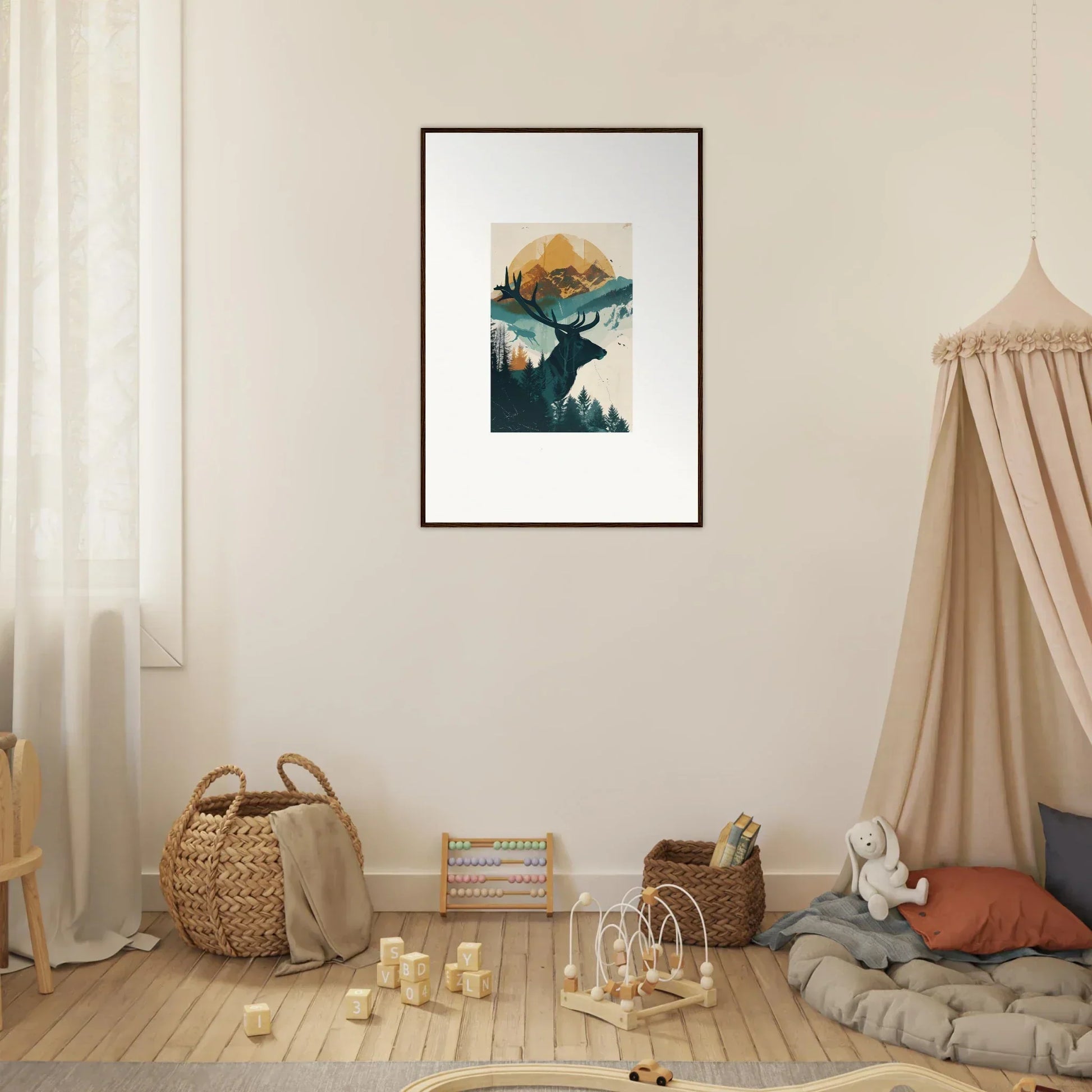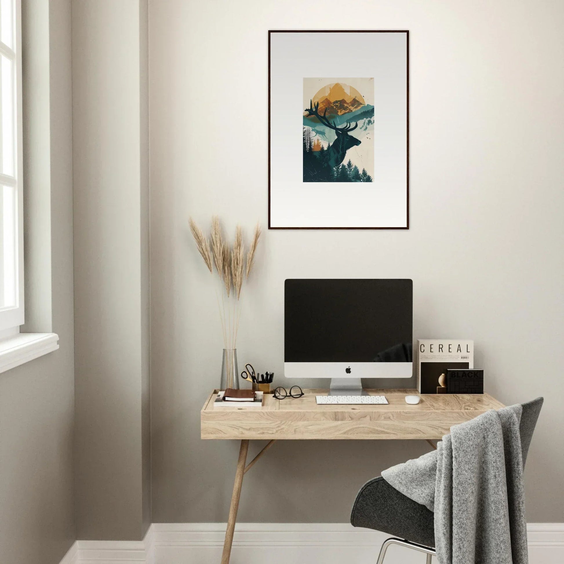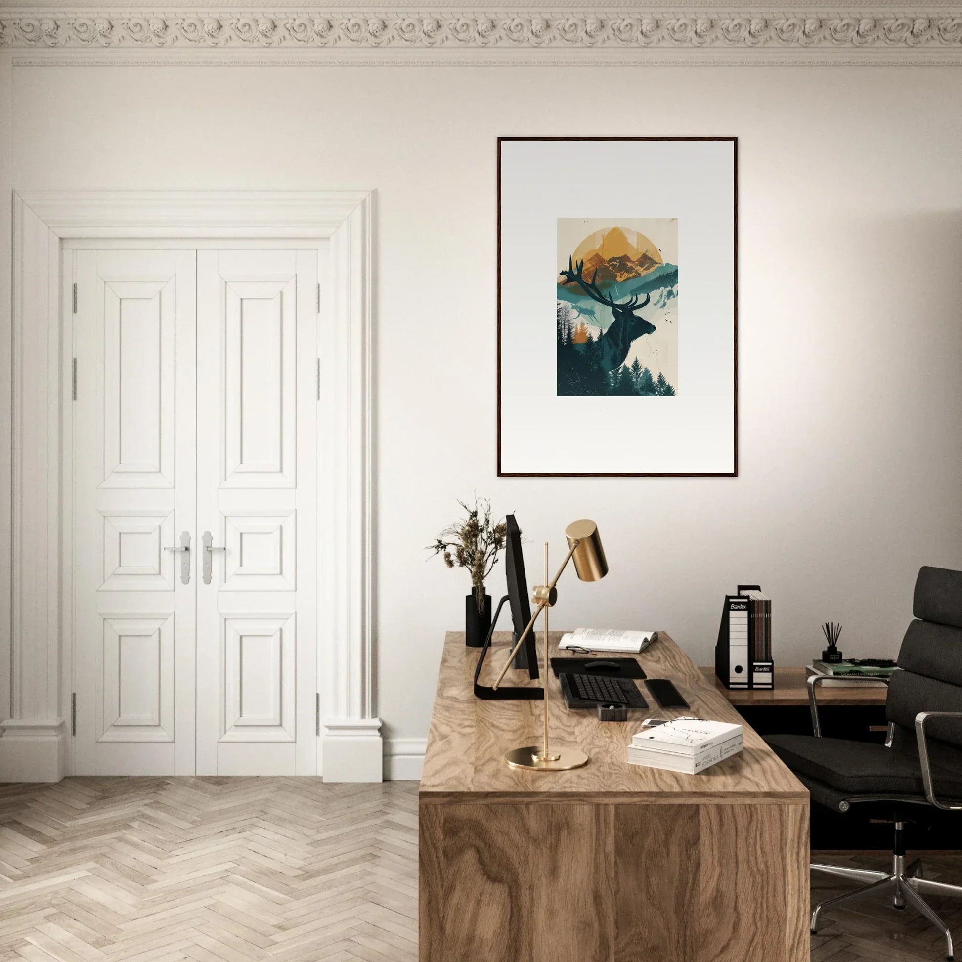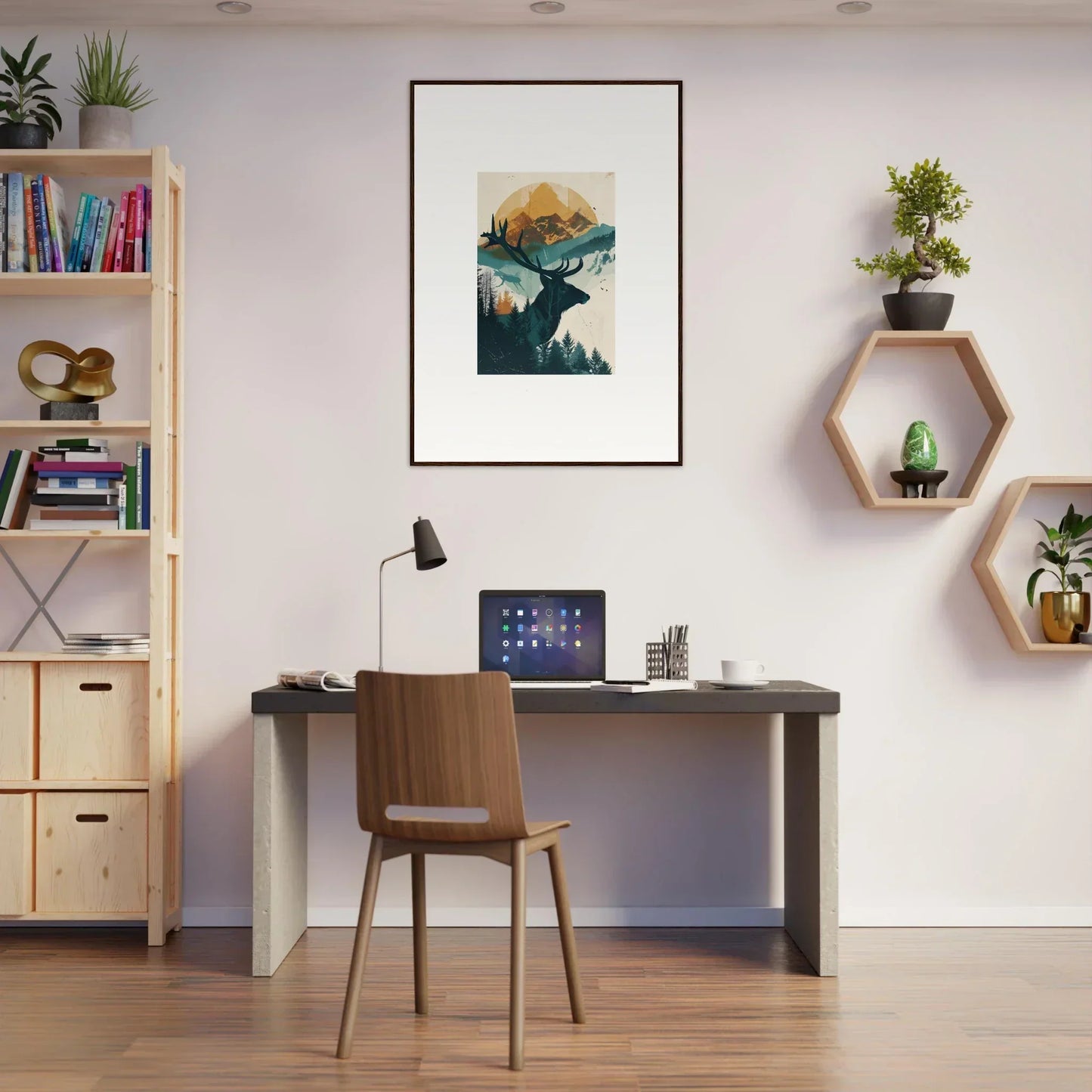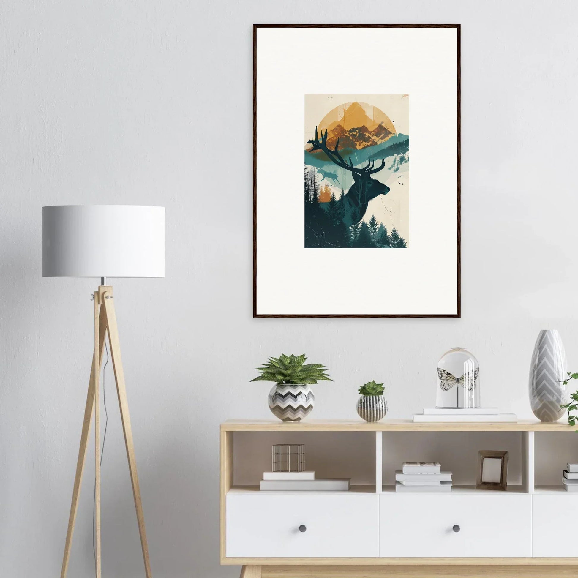 The striking contrast of main color teal and accents of complementary color orange makes this framed wall art an unparalleled centerpiece for your home office or living room. Its blend of adventure and serenity breathes life into contemporary art spaces, resonating with nature and animal enthusiasts alike.