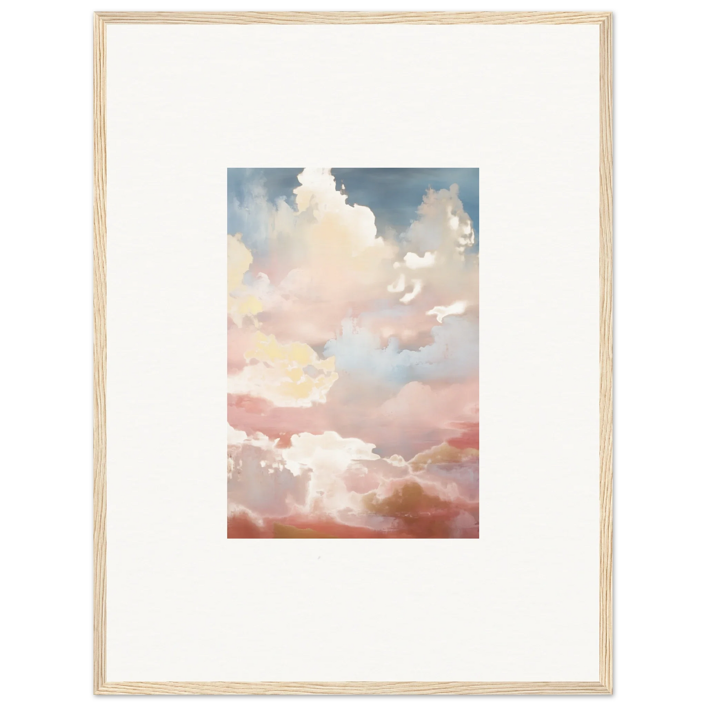 Our Resplendent Cloud Dance is more than a decoration; it's an experience. Ideal for bedrooms and living rooms, its muted pastel color palette and abstract nature design bring serenity and creative inspiration to any space. The size refers to the frame size; the print size might be smaller if the margins exist!