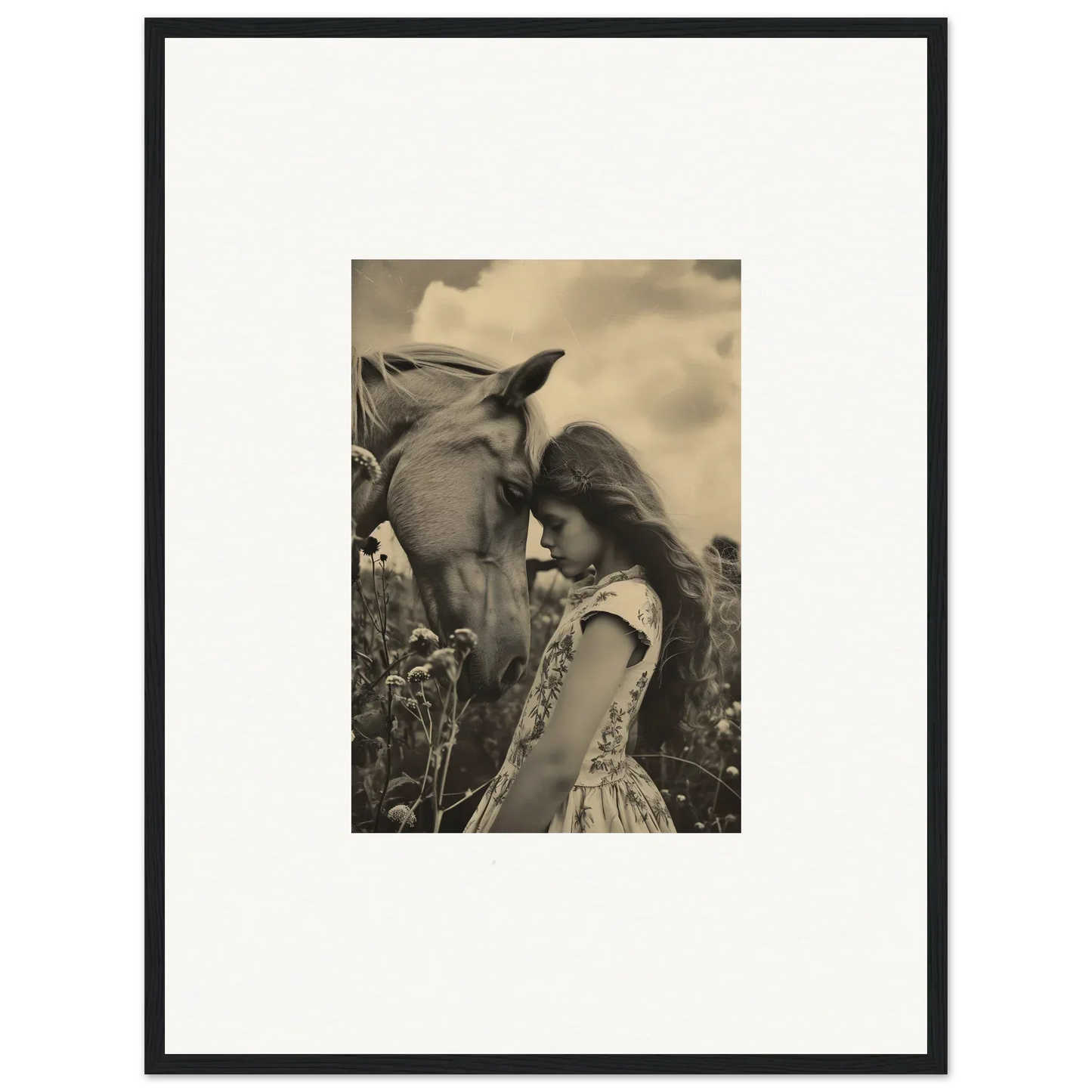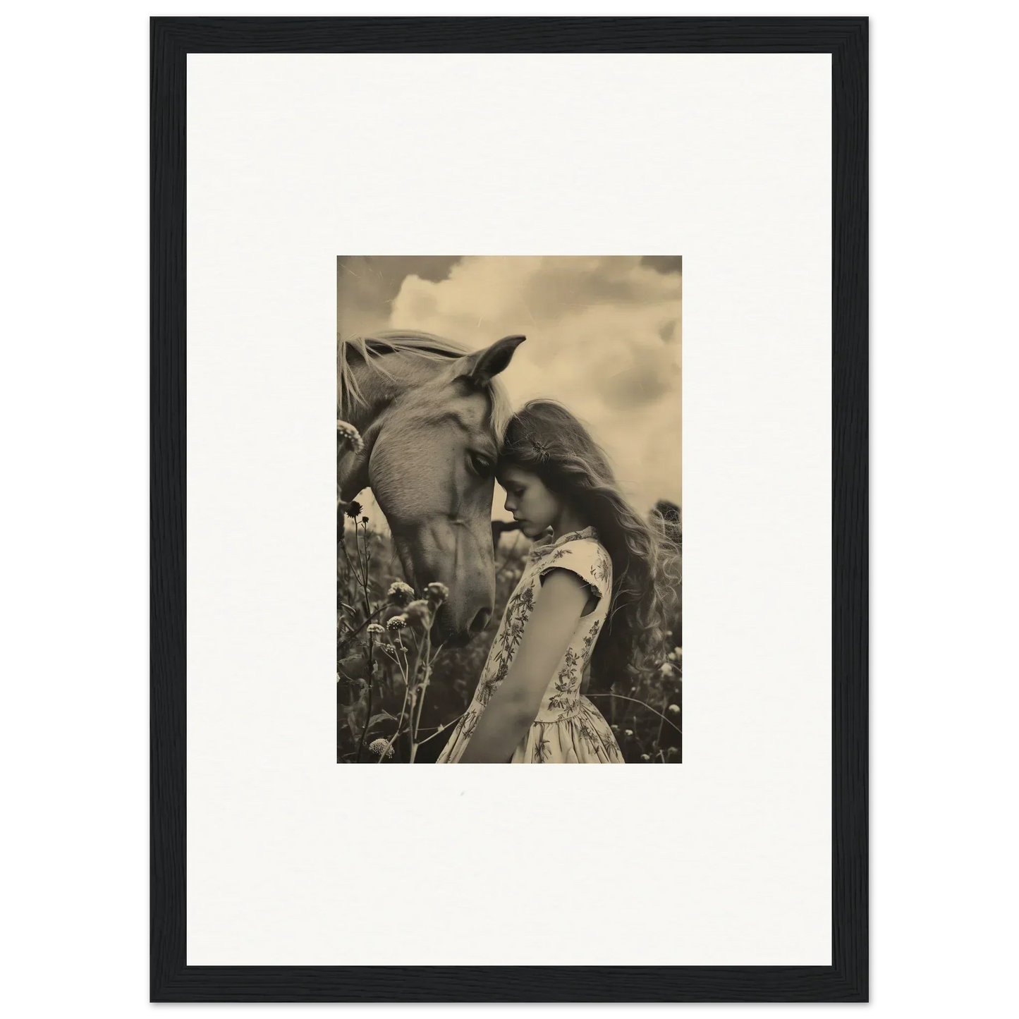 This serene piece, featuring a heartfelt interaction between a girl and a horse, radiates compassion, love, serenity, and peace. Ideal for your bedroom or living room, this monochromatic artwork fits seamlessly into natural and monochrome color palettes. Whether you're enhancing a cozy corner or making a statement on a big wall, "Serene Anthropologyviews" is perfect for any space.