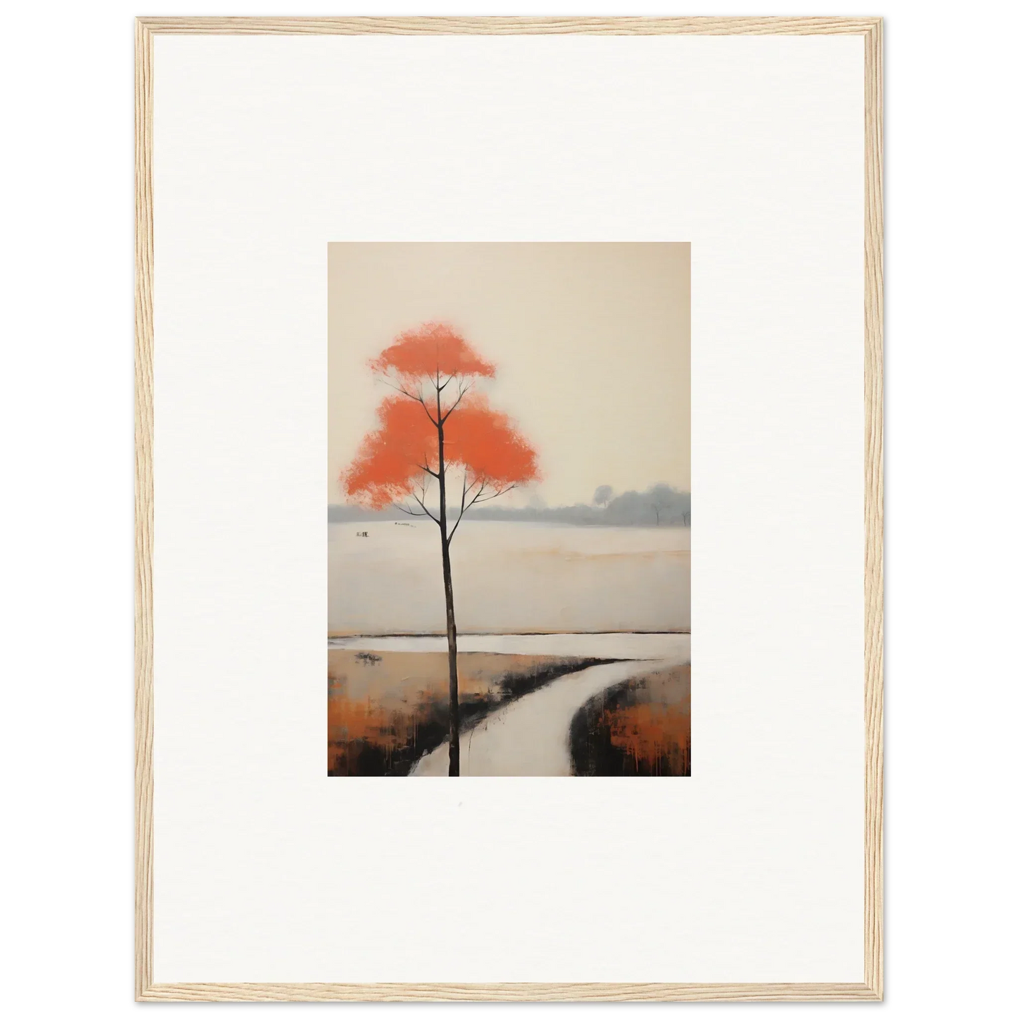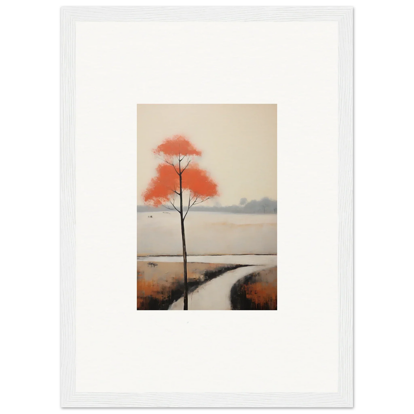 The bold orange hues and serene natural tones of Solitary Abyss Whispers find their perfect home in spaces like home offices and living rooms. This minimalist abstract art piece adds a creative and inspiring mood, transforming any room into a peaceful sanctuary.