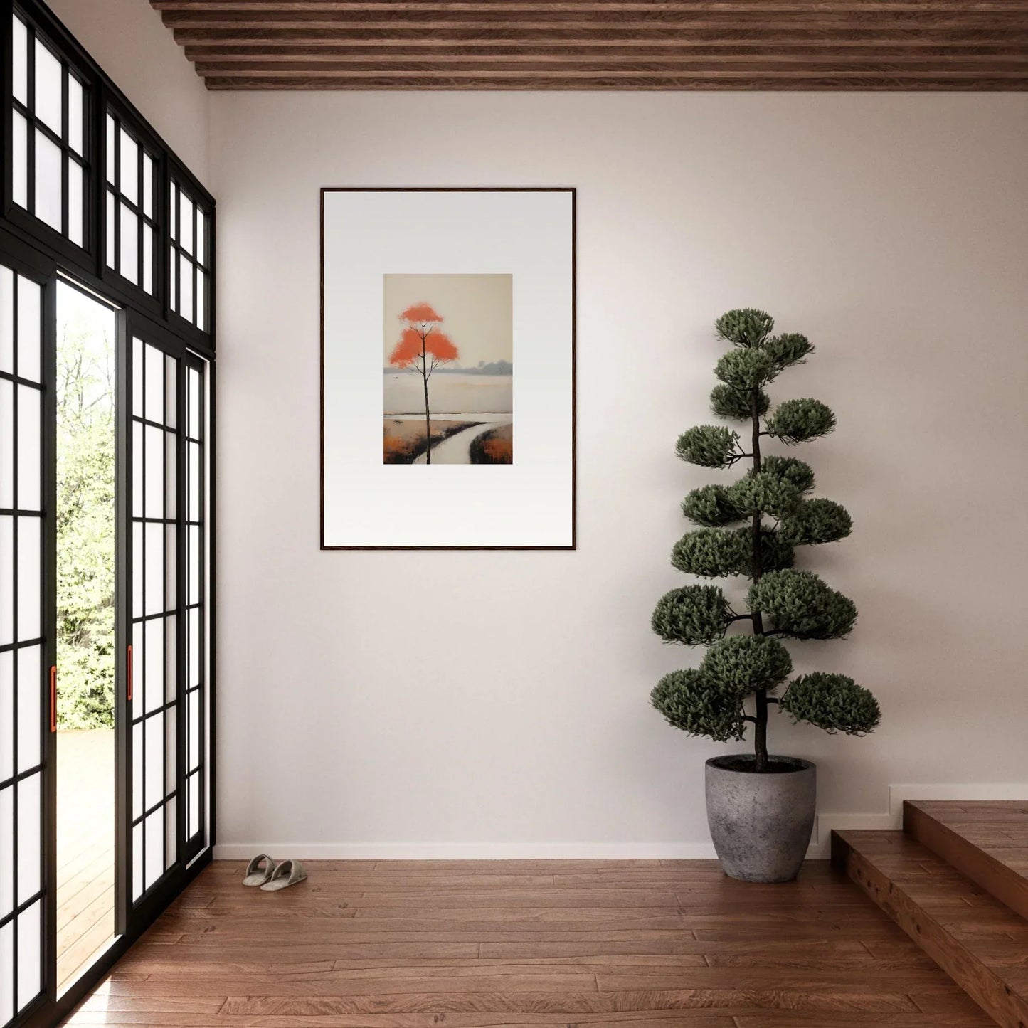 Imagine a moment where art and craftsmanship intertwine, unveiling a breathtaking piece that turns your living space into an elegant gallery of tranquility. Our Solitary Abyss Whispers framed wall art is designed to do just that. Featuring the latest AI-generated imagery, this piece captures the essence of modern creativity and serene sophistication. The striking orange hues blend harmoniously with natural tones, creating a masterpiece of minimalist art that brings peace and inspiration to any room.