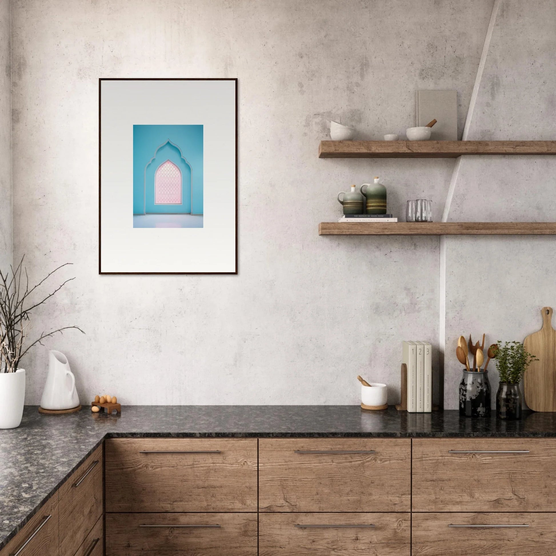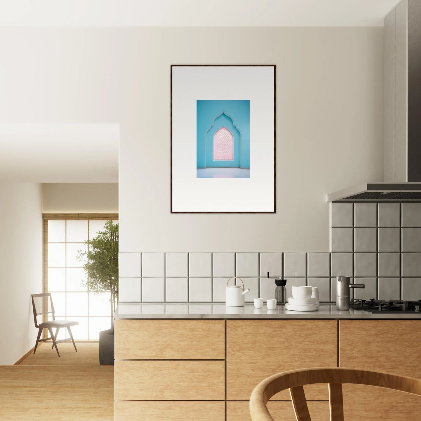 This Framed Wall Art elegantly suits a variety of spaces: whether it’s in your serene bedroom or a focused home office. Infused with a palette of complementary colors including pink and the main shade of blue, it fosters both moods of focus and serenity.