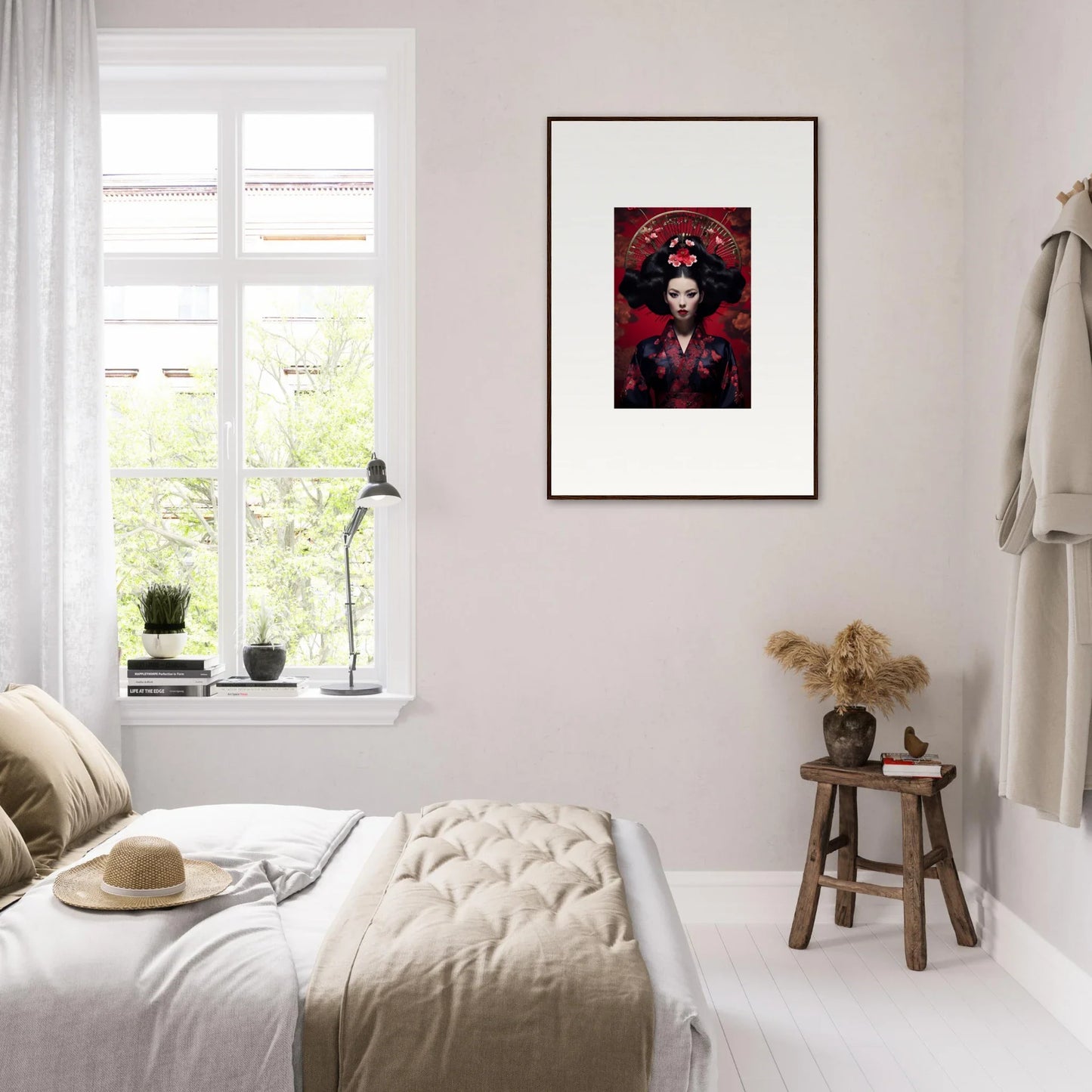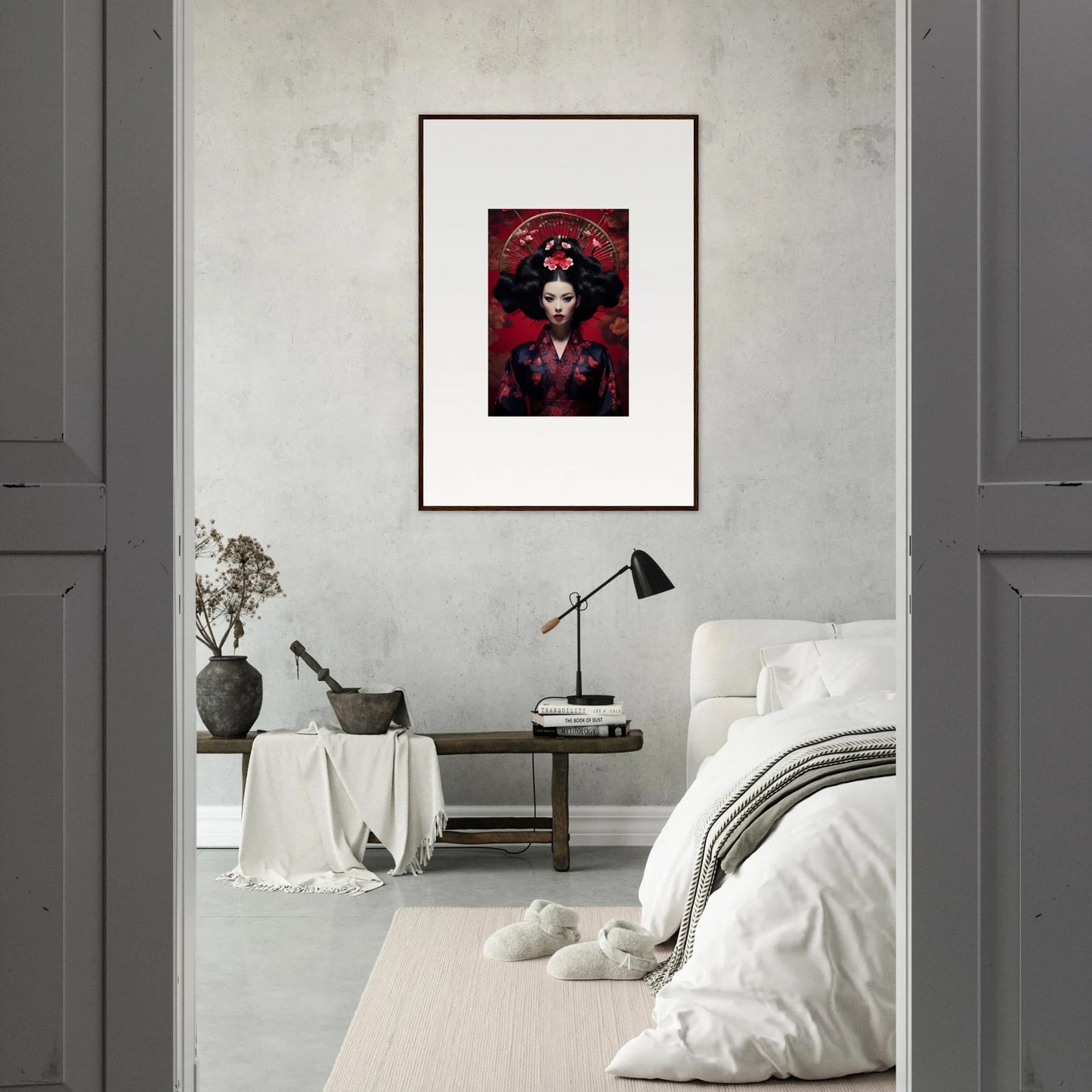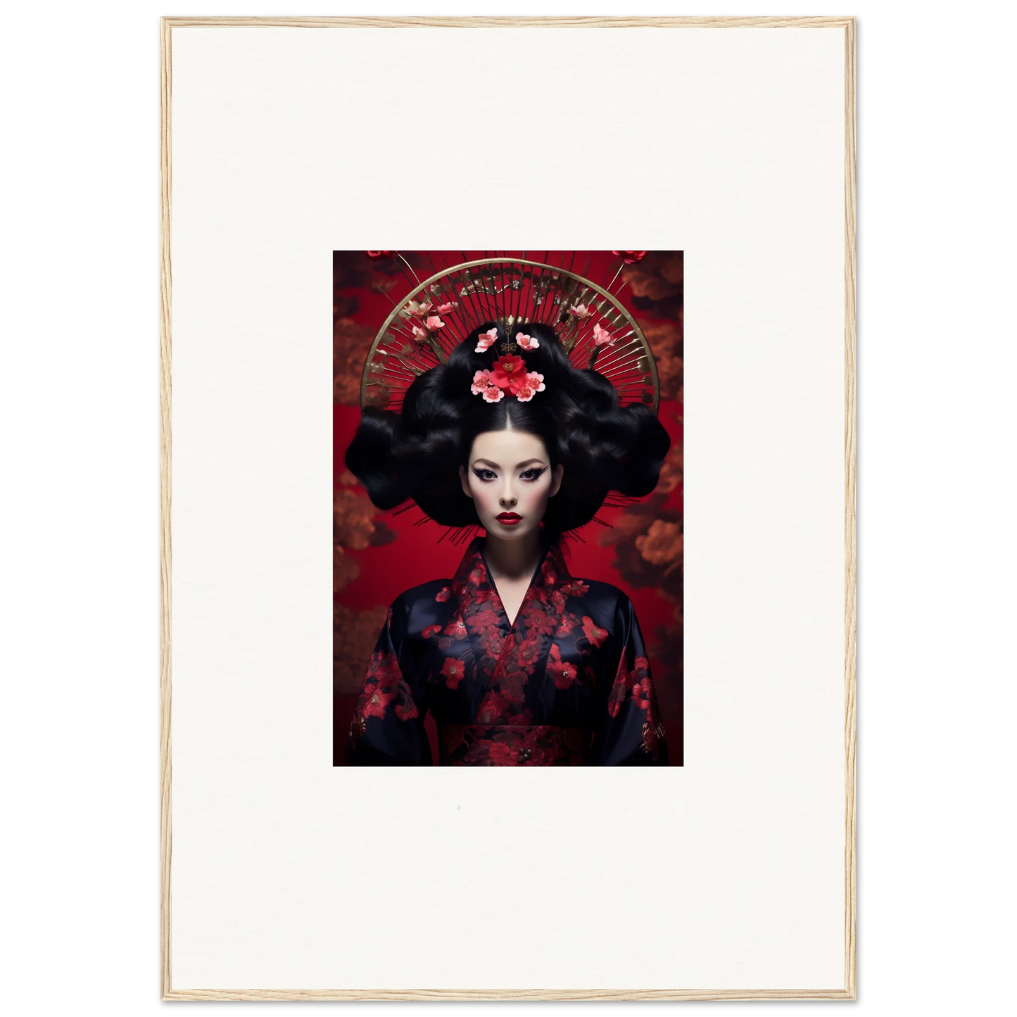 Adorn your walls with "Stranger Cerise Dreams," an exquisite portrait that embodies mystery and intrigue. Perfect for luxurious spaces, it brings an opulent splash of red complemented by the stark contrast of black, making it ideal for bedrooms and living rooms desiring a touch of sophisticated drama. This artwork's uncanny ability to draw eyes and spark conversations makes it a centerpiece in any room it graces.