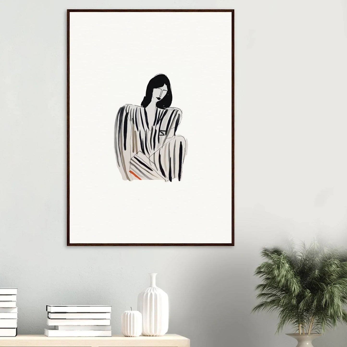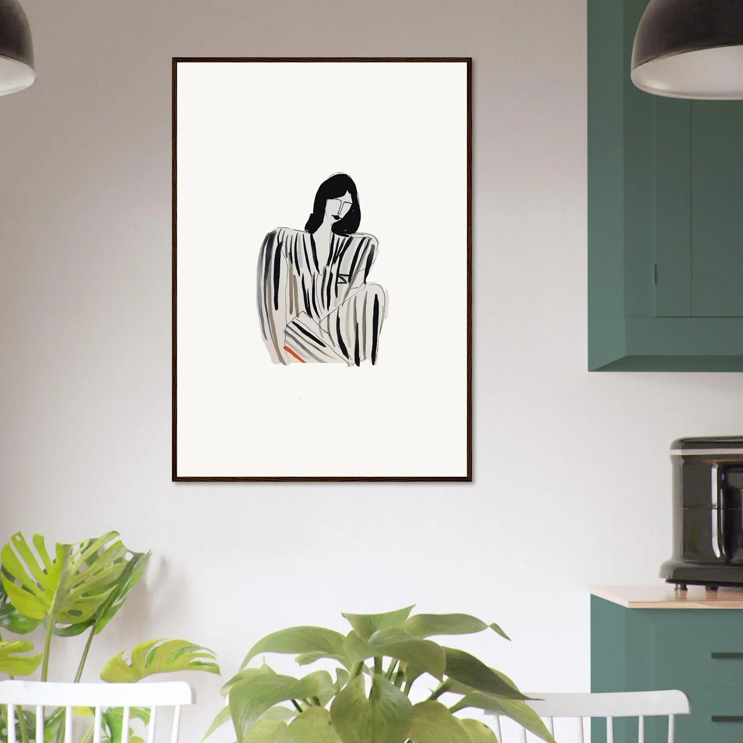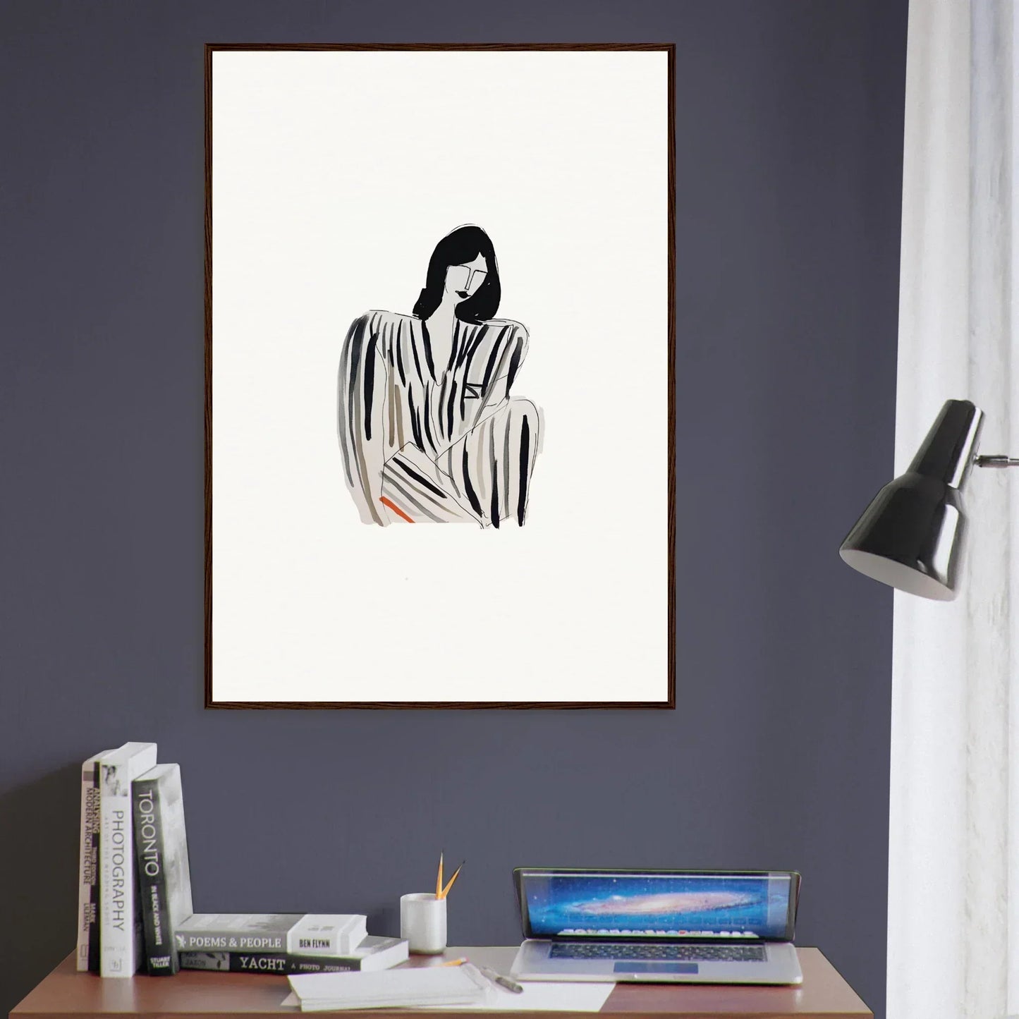 Our Striped Whispers Formals framed artwork, with its monochrome color palette and natural tones, is perfectly suited for creative and inspiring environments. Whether you choose to enhance your home office, living room, or another cherished space, it brings a focused and modern touch.