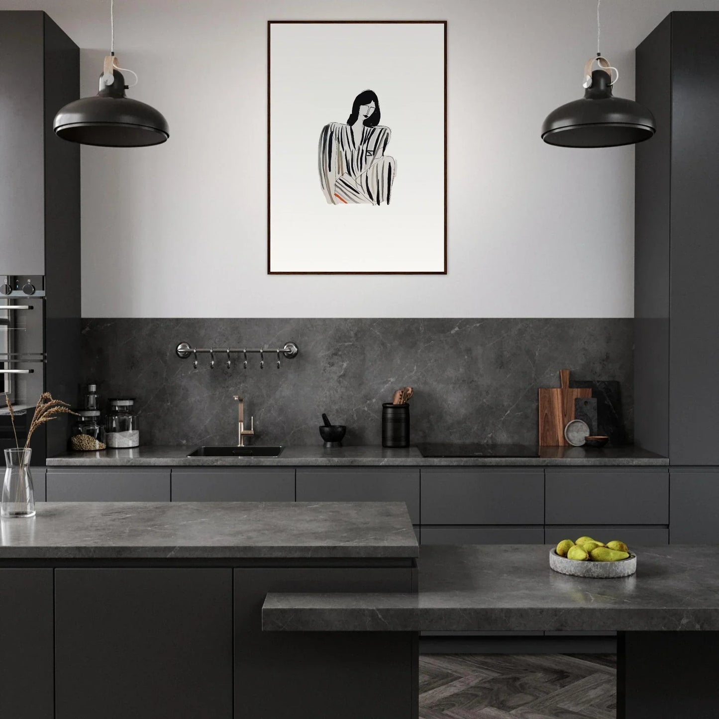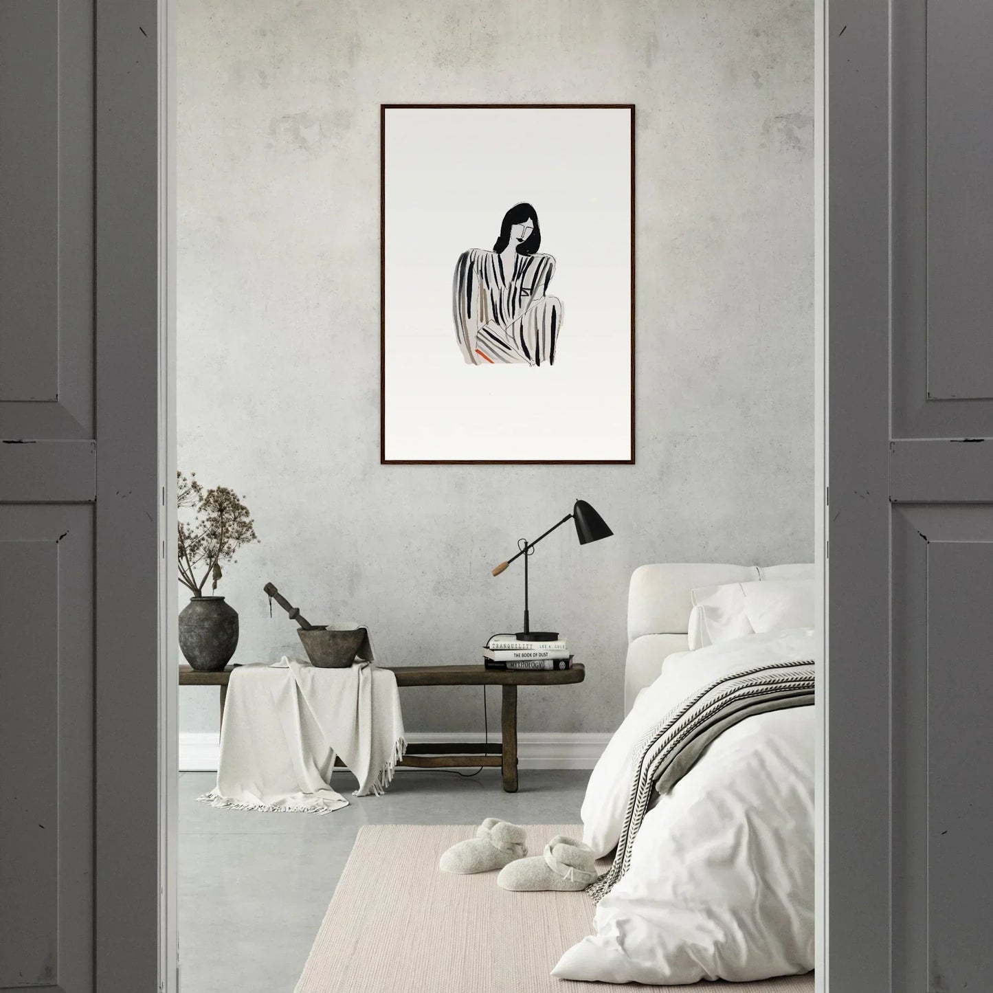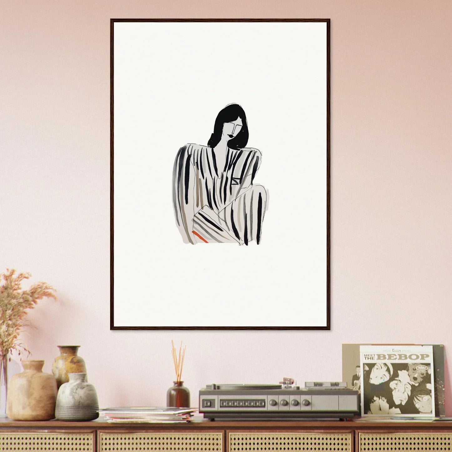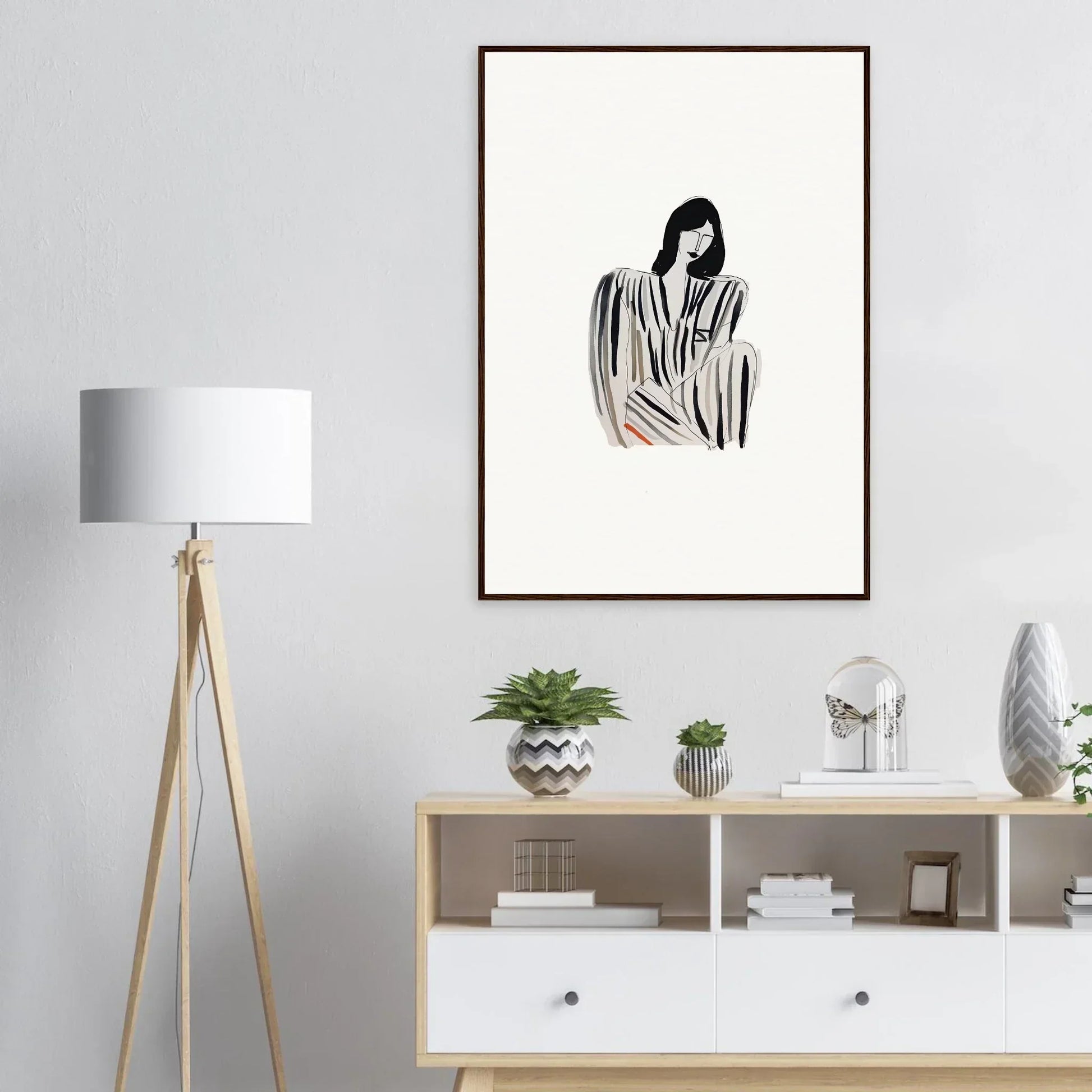 Our Striped Whispers Formals framed artwork, with its monochrome color palette and natural tones, is perfectly suited for creative and inspiring environments. Whether you choose to enhance your home office, living room, or another cherished space, it brings a focused and modern touch.