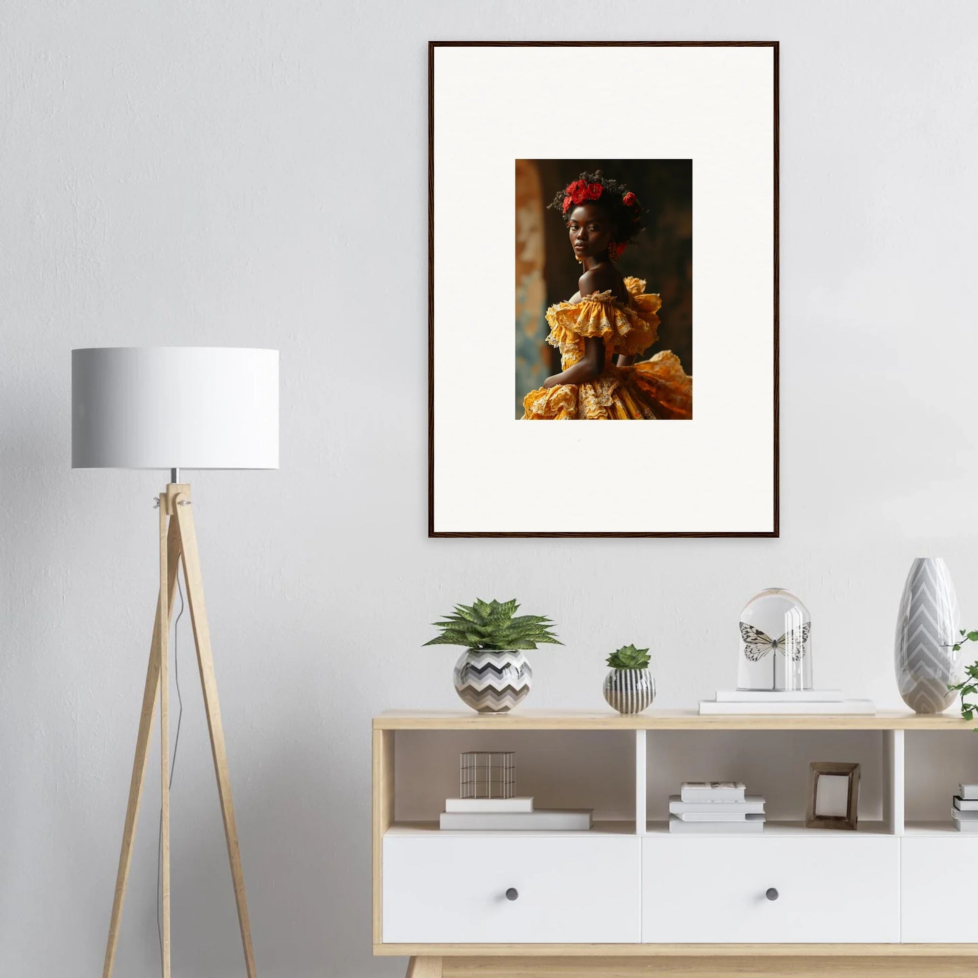 Imagine a moment where art and craftsmanship meet, creating a timeless piece that transforms your living space into a gallery of elegance. Our Premium Framed Wall Art - Sunlit Daydream Muse is designed to do just that. Featuring the latest AI-generated imagery, this masterpiece captures the essence of modern creativity and classic sophistication.