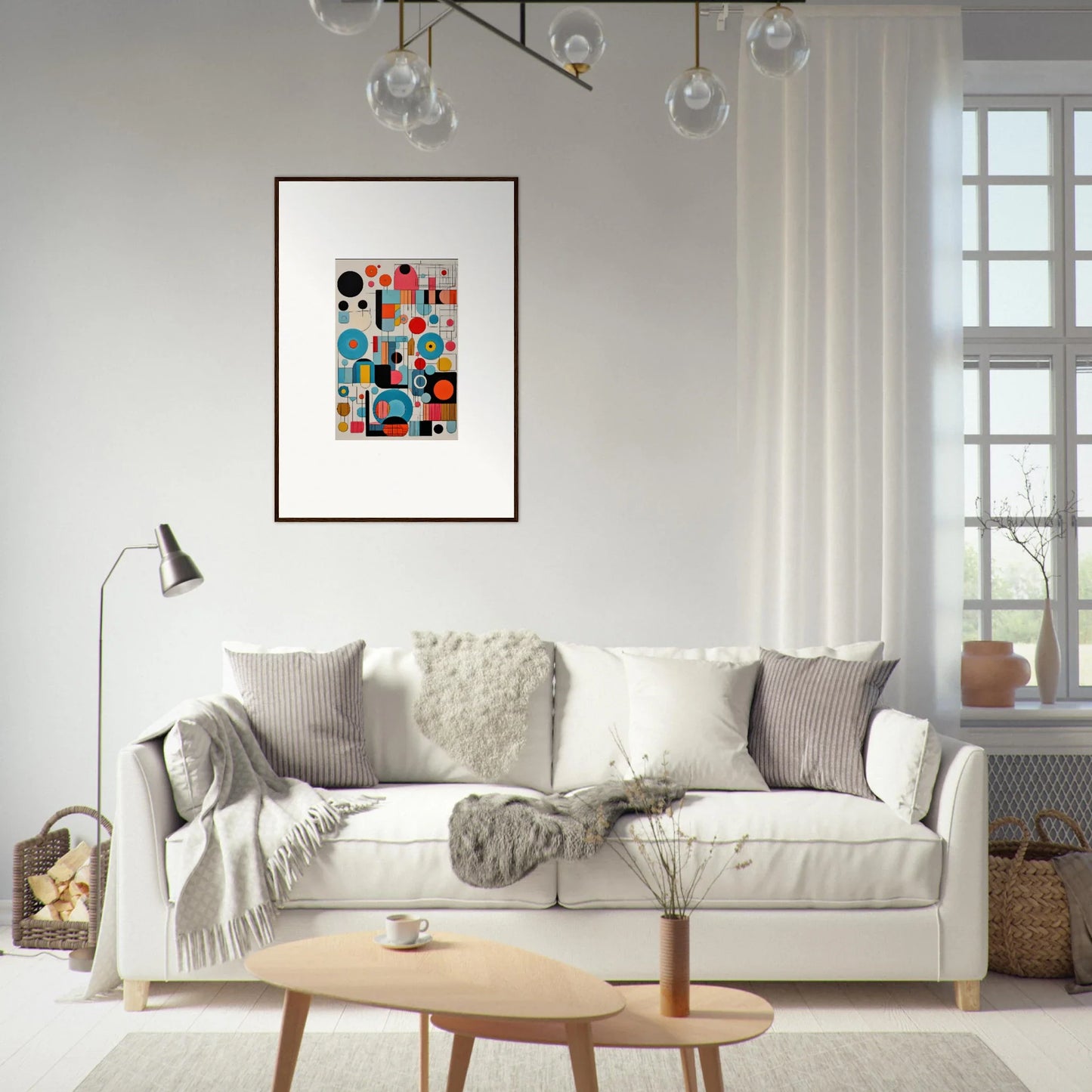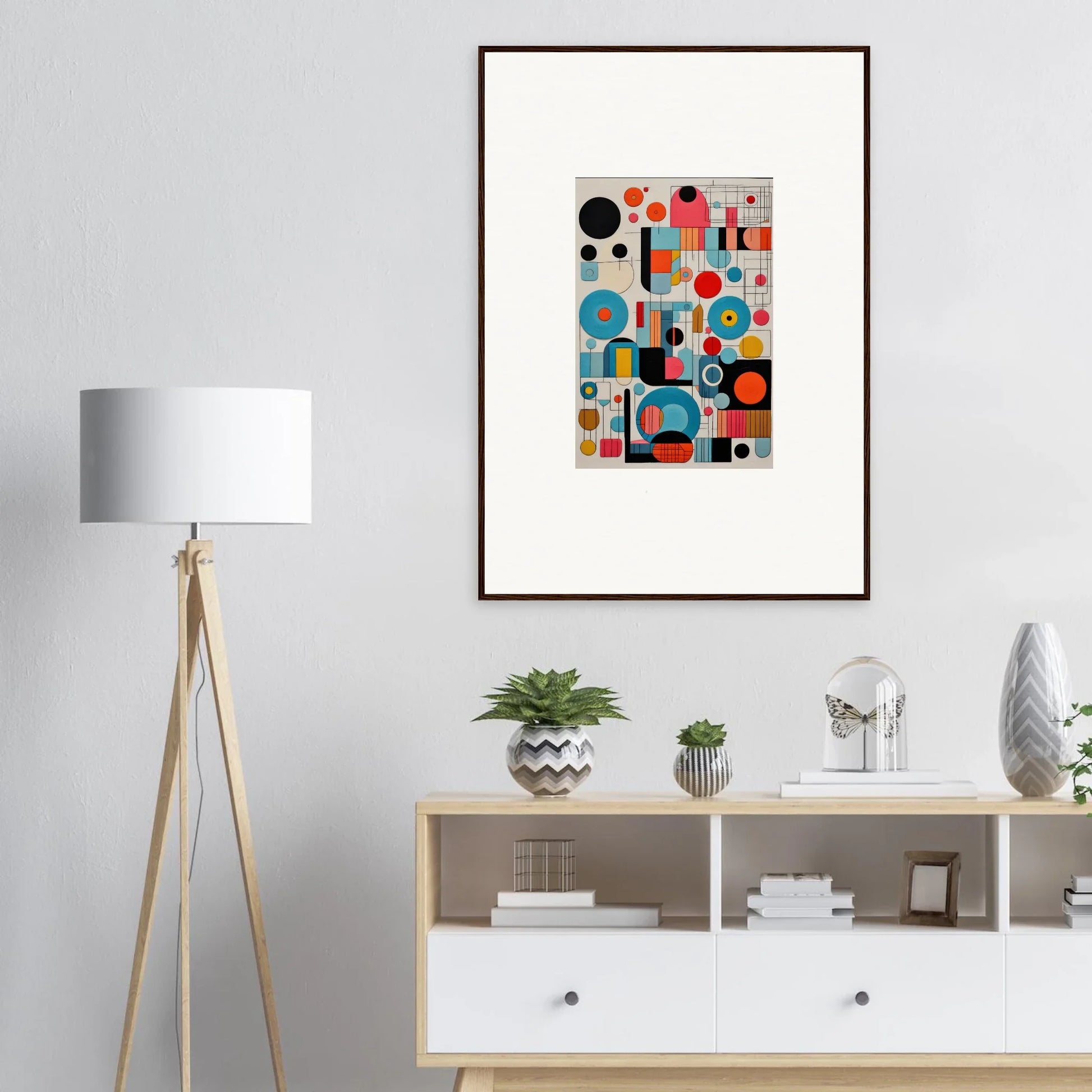 Our elegant framed wall art is a seamless fit for various rooms: be it the living room or the home office. The rich blend of colors—ranging from vibrant oranges to complementary blues—enhances any space, creating an atmosphere of happiness, joy, and inspiration. The abstract art style and dynamic patterns infuse a creative, celebratory mood, while the larger margins add a bold, defining look.