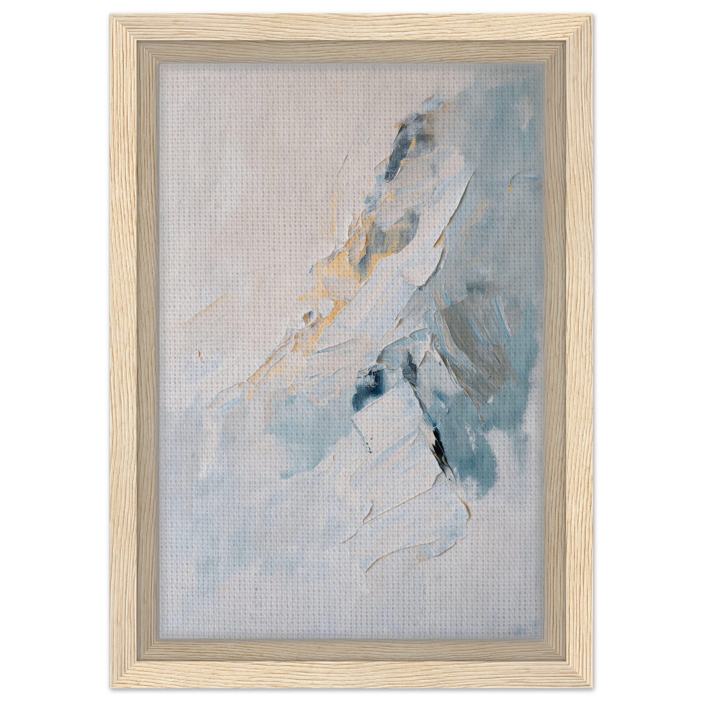 This piece of modern abstract art is perfect for any setting, whether it's your living room, office, or tranquil reading nook. The soft muted blue evokes a gentle sky or sea, merging into spaces filled with whites, grays, or pastel tones.