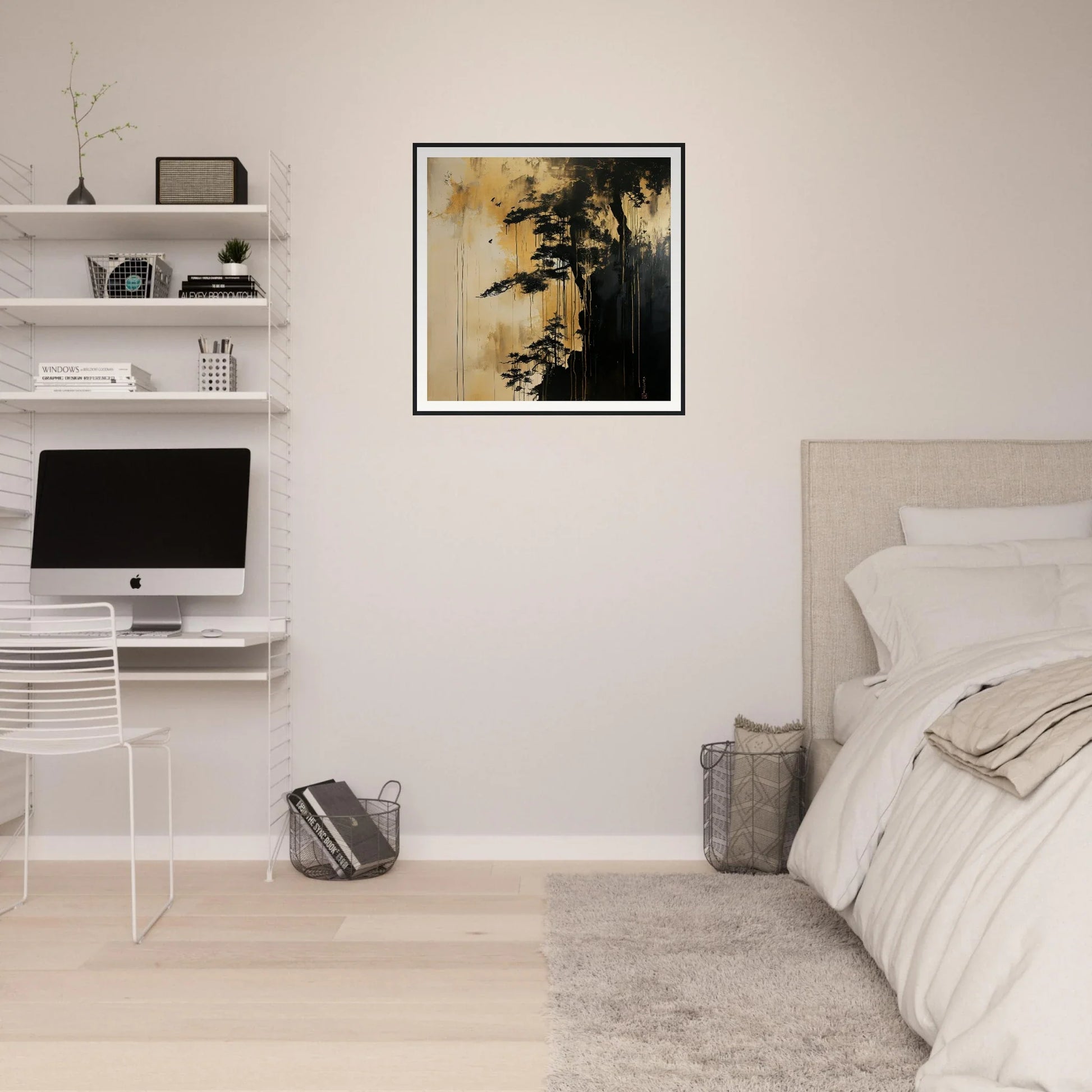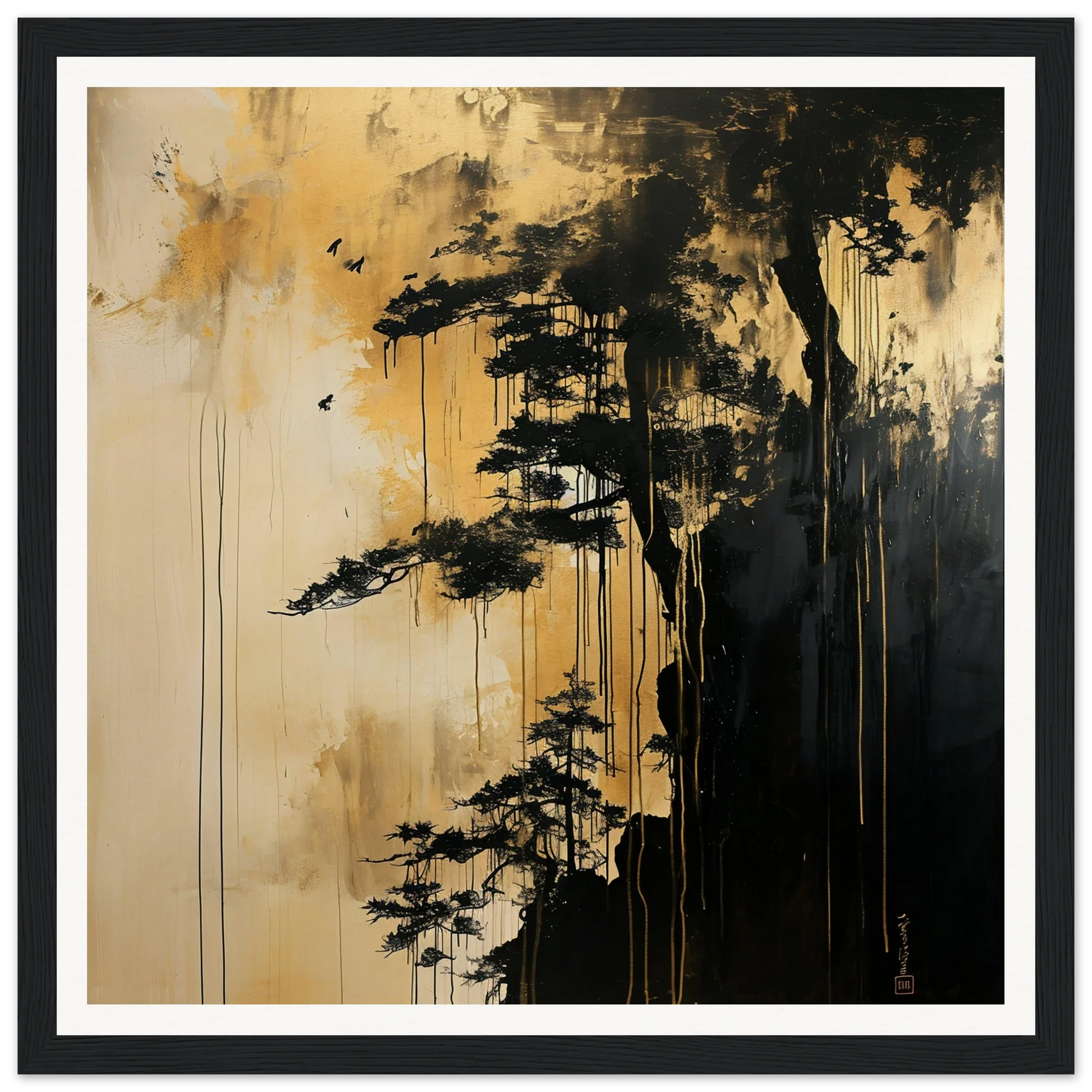 Fit for any room looking to strike a balance between modern and timeless allure, this artwork stands bold against walls in living rooms, bedrooms, or offices. Encounter a striking palette of blacks, golds, and creams as it transforms your atmosphere, inspiring those who engage with its poignant charm.