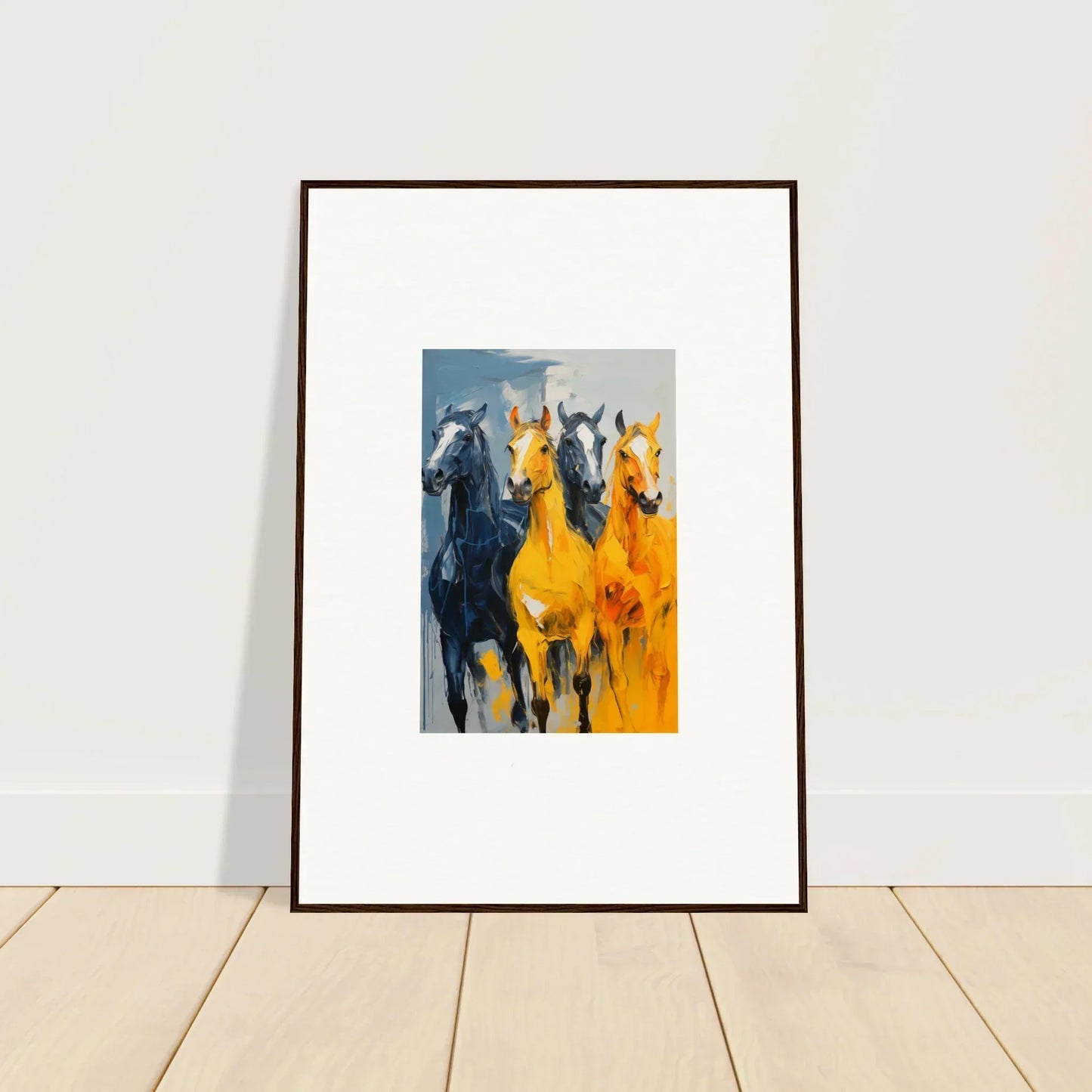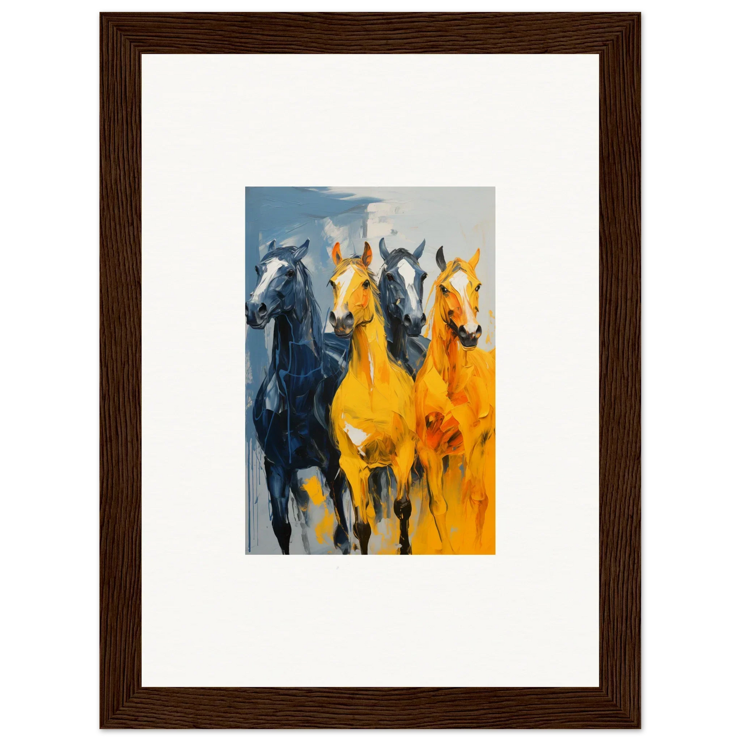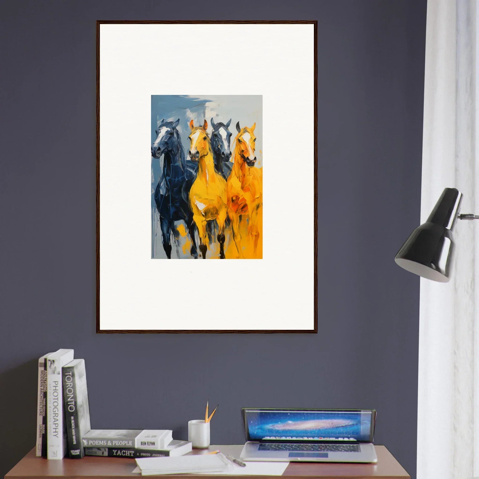 Imagine a moment where art and craftsmanship meet, creating a timeless piece that transforms your living space into a gallery of elegance. Our Premium Framed Wall Art featuring "Twilight Hued Mares" is designed to do just that. Featuring the latest AI-generated imagery, this masterpiece captures the essence of modern creativity and classic sophistication.