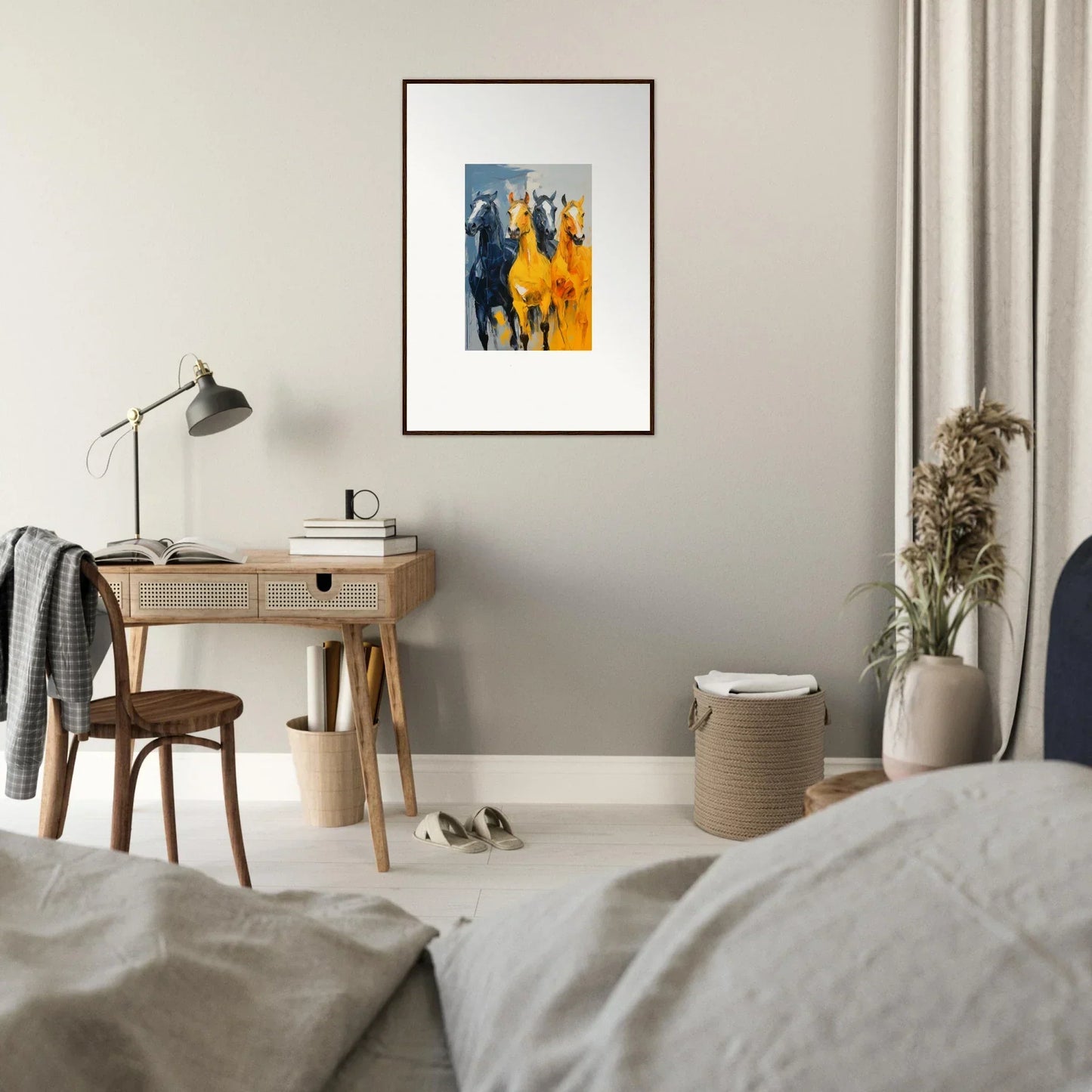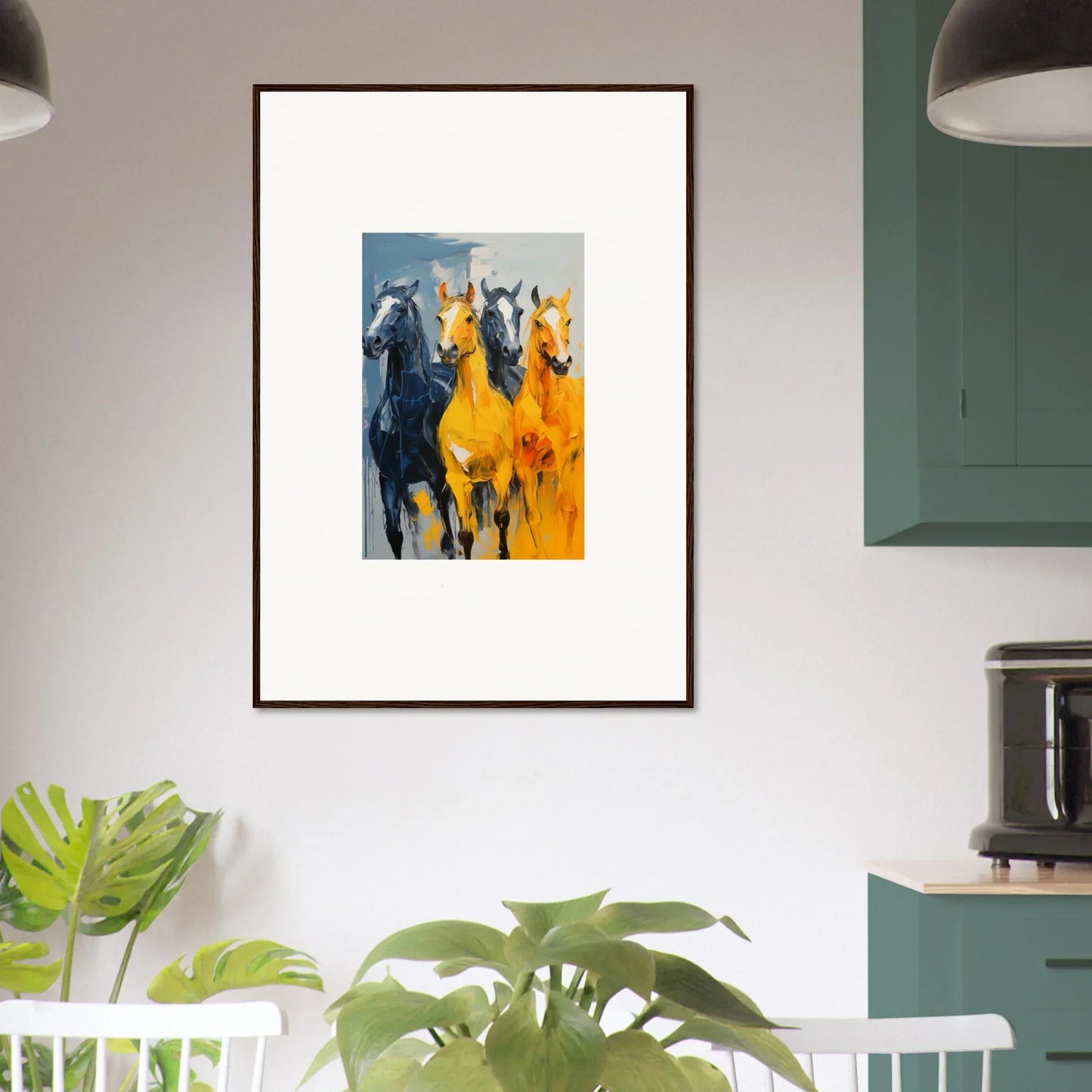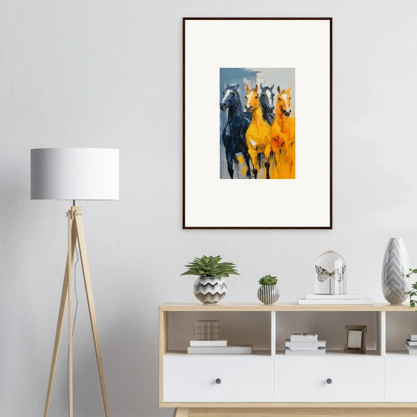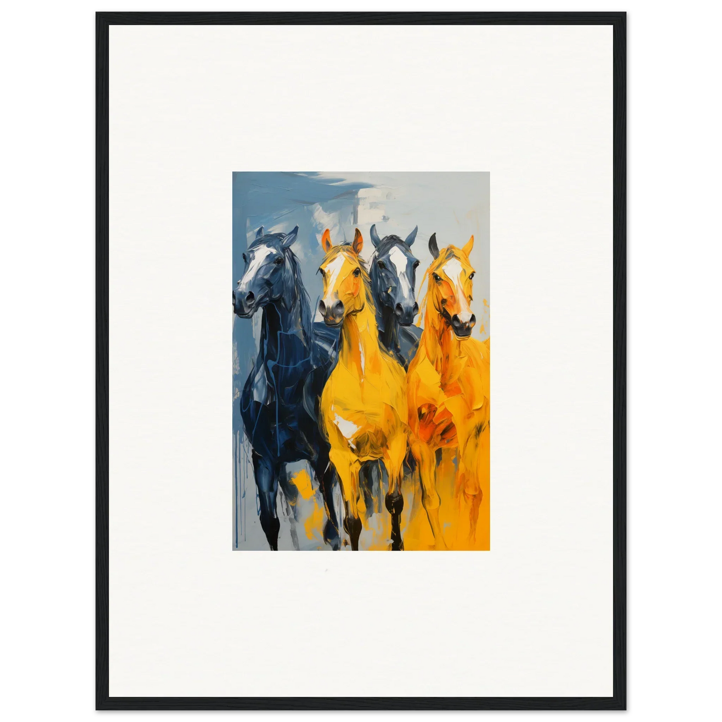 Imagine a moment where art and craftsmanship meet, creating a timeless piece that transforms your living space into a gallery of elegance. Our Premium Framed Wall Art featuring "Twilight Hued Mares" is designed to do just that. Featuring the latest AI-generated imagery, this masterpiece captures the essence of modern creativity and classic sophistication.