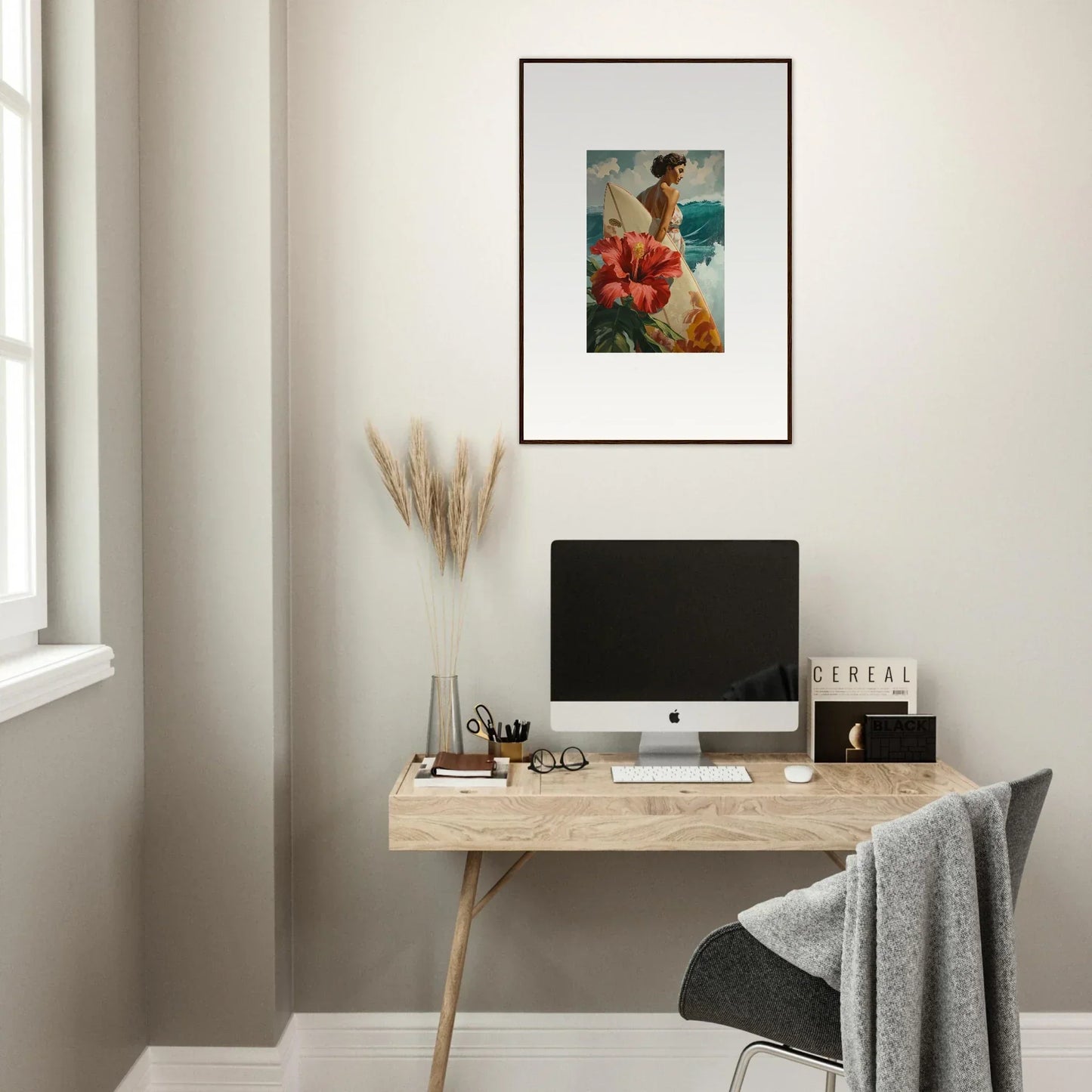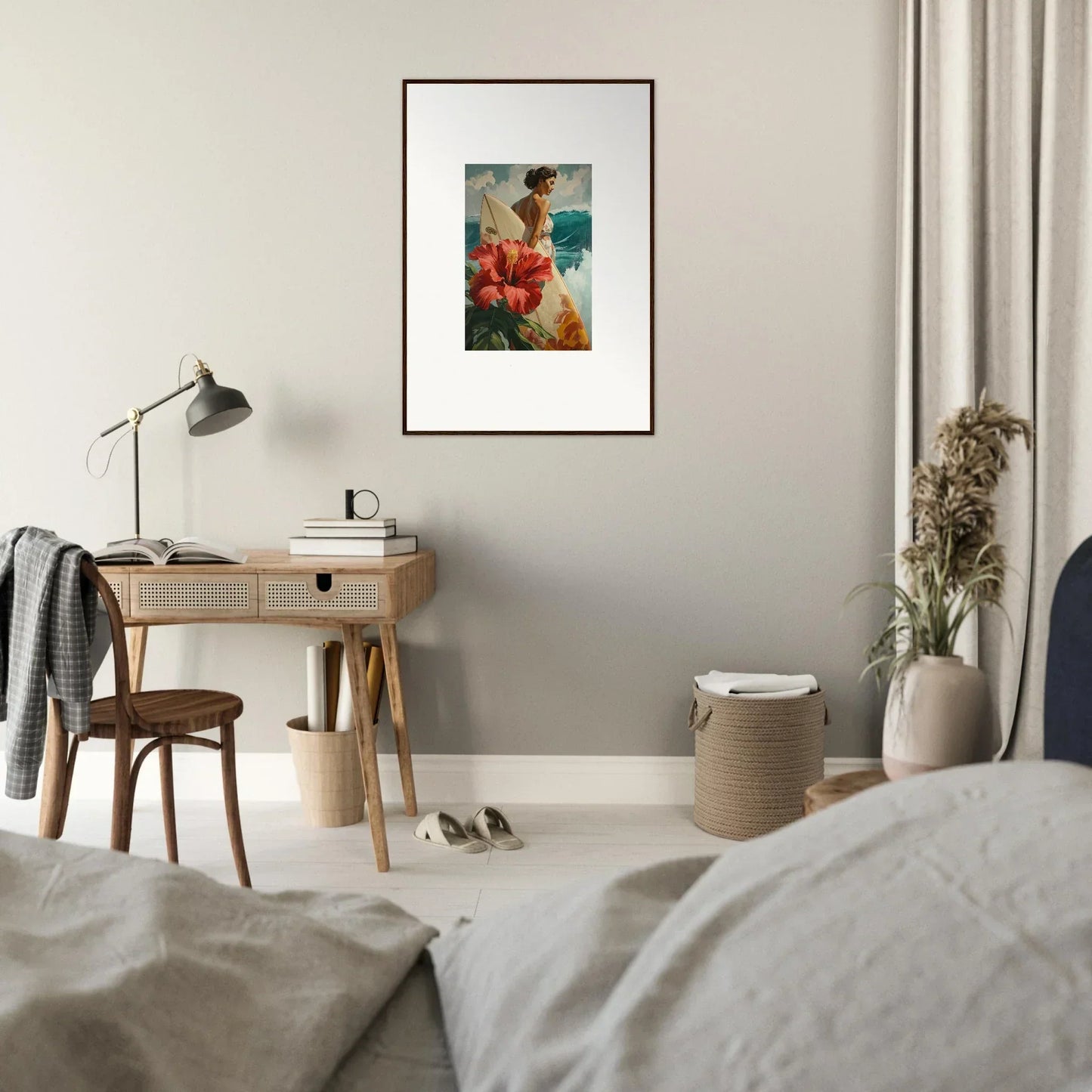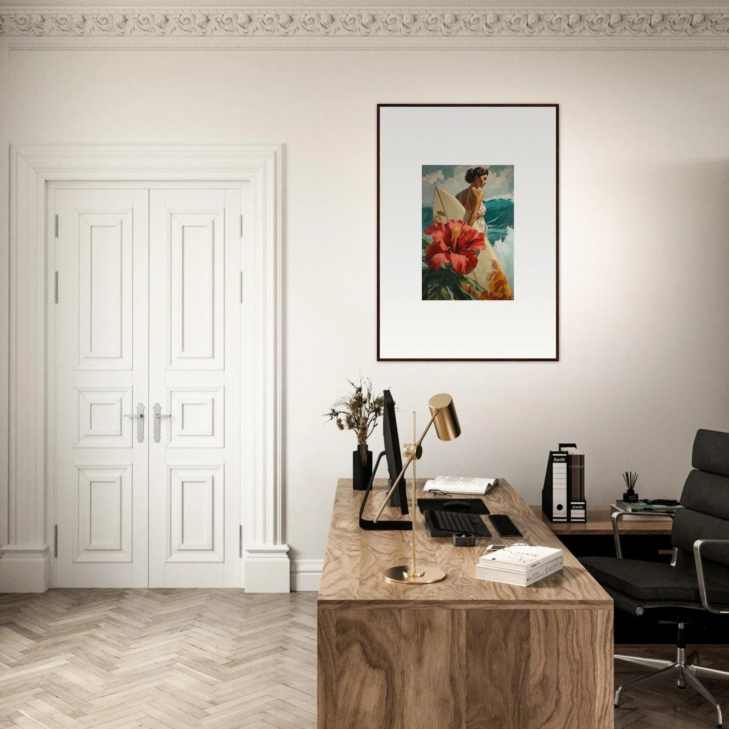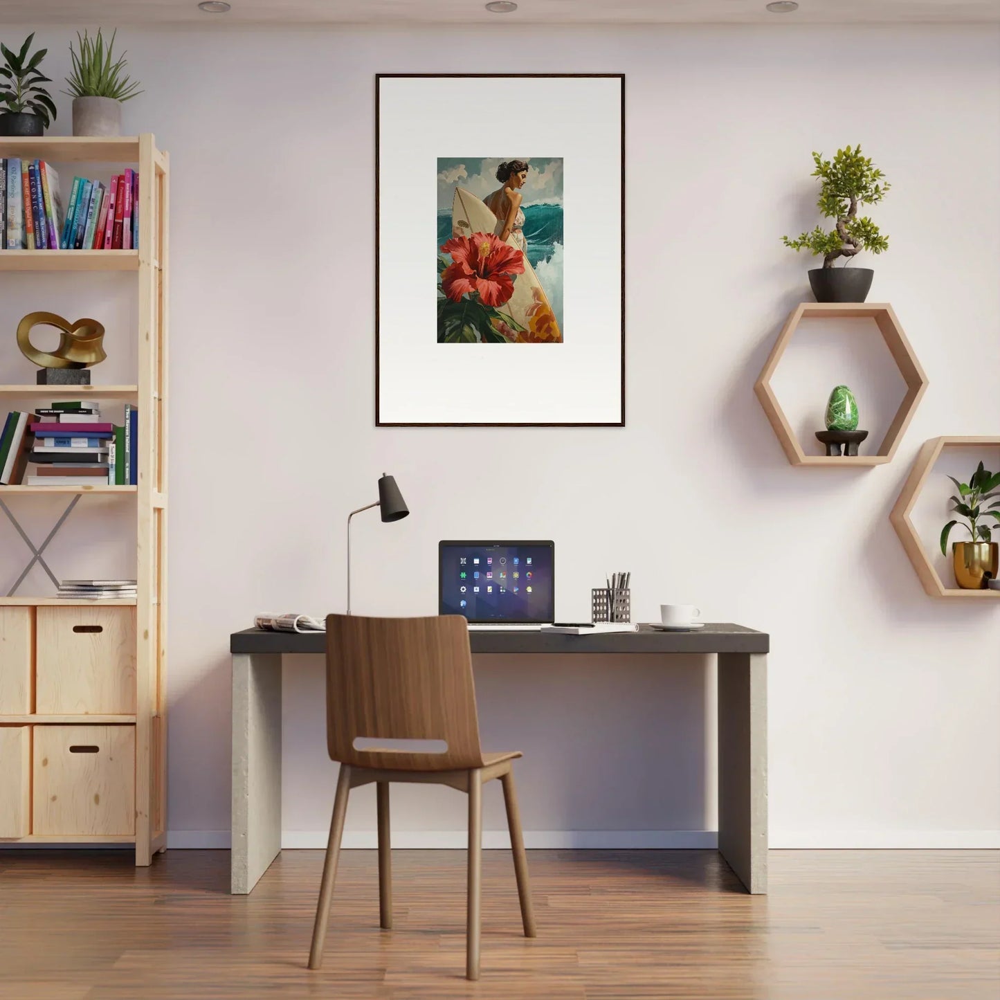 Ideal for rooms such as your home office or living room, this Premium Framed Wall Art fits perfectly within a contemporary art style. With complementary natural colors and a touch of red, it brings a creative and inspiring mood to your space. The artwork embodies themes of adventure and exploration, making it a perfect addition for those who seek to infuse their environment with character and inspiration.