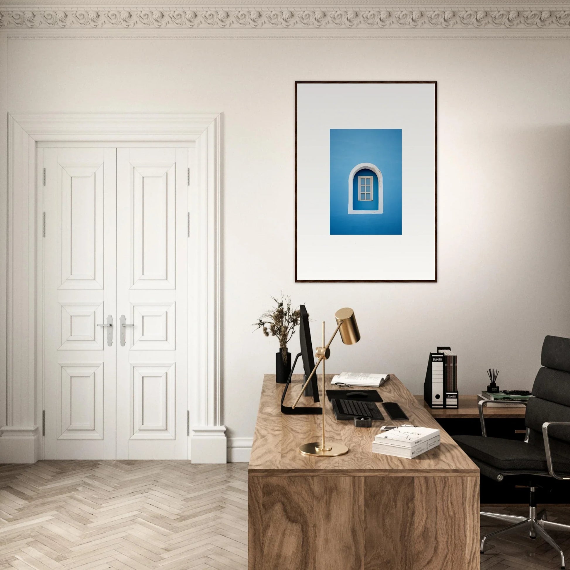 This artwork is a perfect addition to your living room or home office. The main color of blue invites a sense of serenity and peace, while the complementary white adds a fresh and clean look to your space. The minimalist style ensures it blends seamlessly with modern interiors, and the abstract yet architectural subject matter exudes a sense of creative inspiration.
