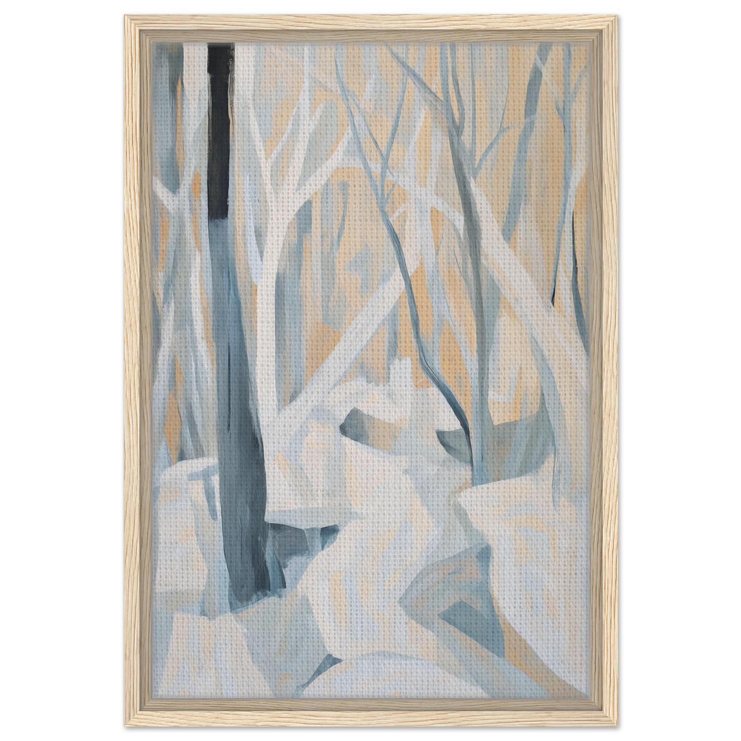 Step into a serene world where nature's winter calm envelops your senses. Winter Forest Rhapsody brings the quiet beauty of a stark, leafless forest blanketed in snow right into your home. Featuring a masterful blend of muted whites and warm beiges, this art piece captures the peaceful interaction between nature and the elements in colder months.