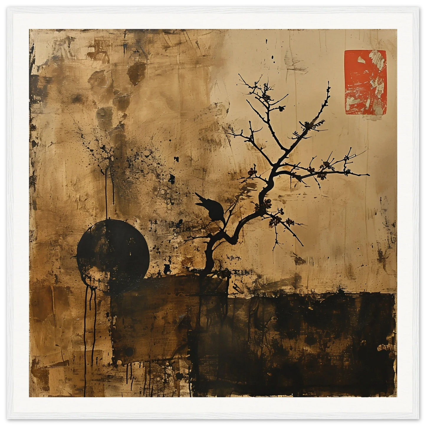 Transform your space with Zen Bird Serenade, a masterpiece where traditional East Asian influences meet contemporary art, brought to life through cutting-edge AI image generation technology. This art piece elegantly captures a moment of serene contemplation with a bird poised against an ethereal backdrop.