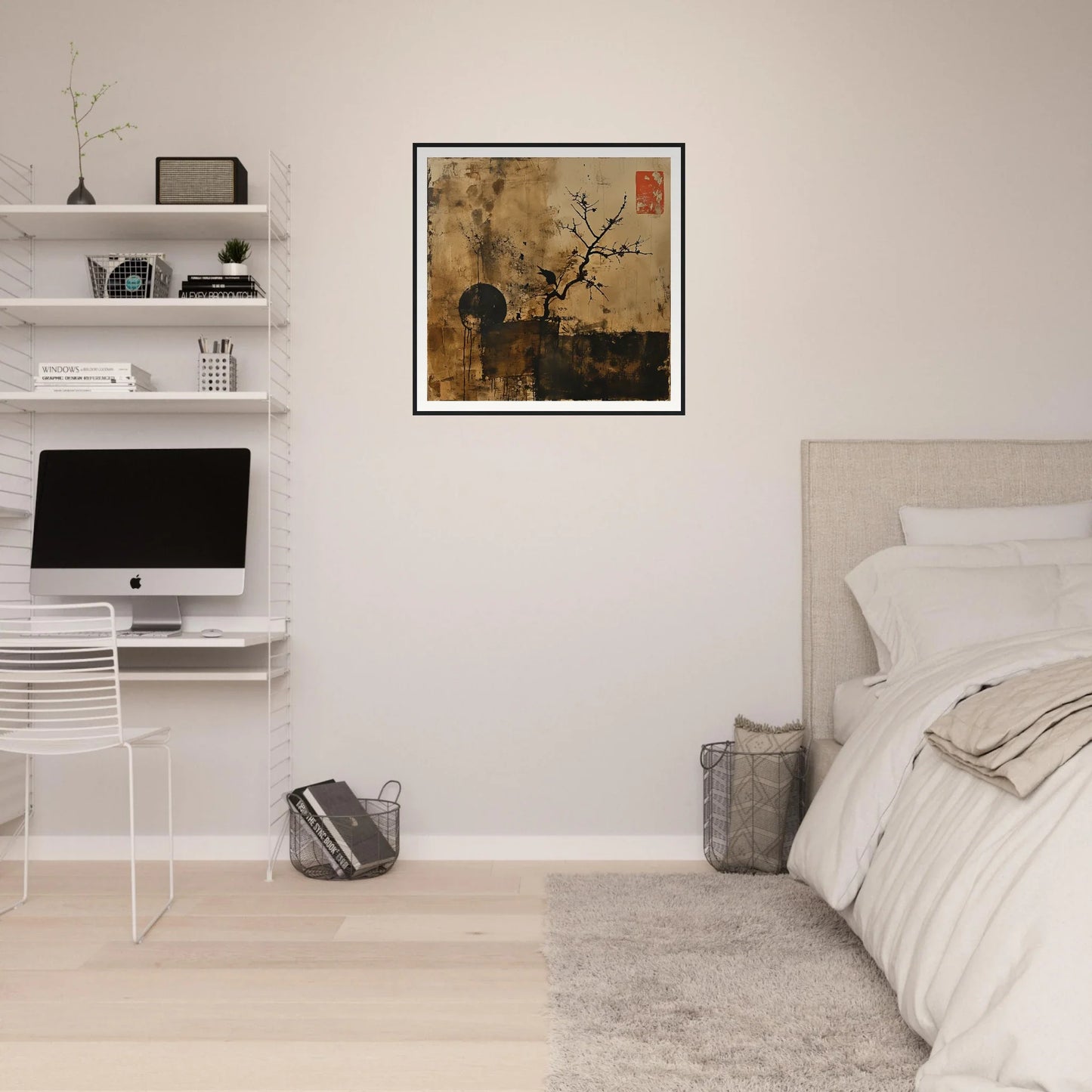 Our framed artwork fits sympathetically into tranquil spaces such as bedrooms or meditative areas, enhancing serene palettes like earthy tones or ethereal whites and sepias. Let this framed art reflect your equanimity and penchant for finely crafted expressions.